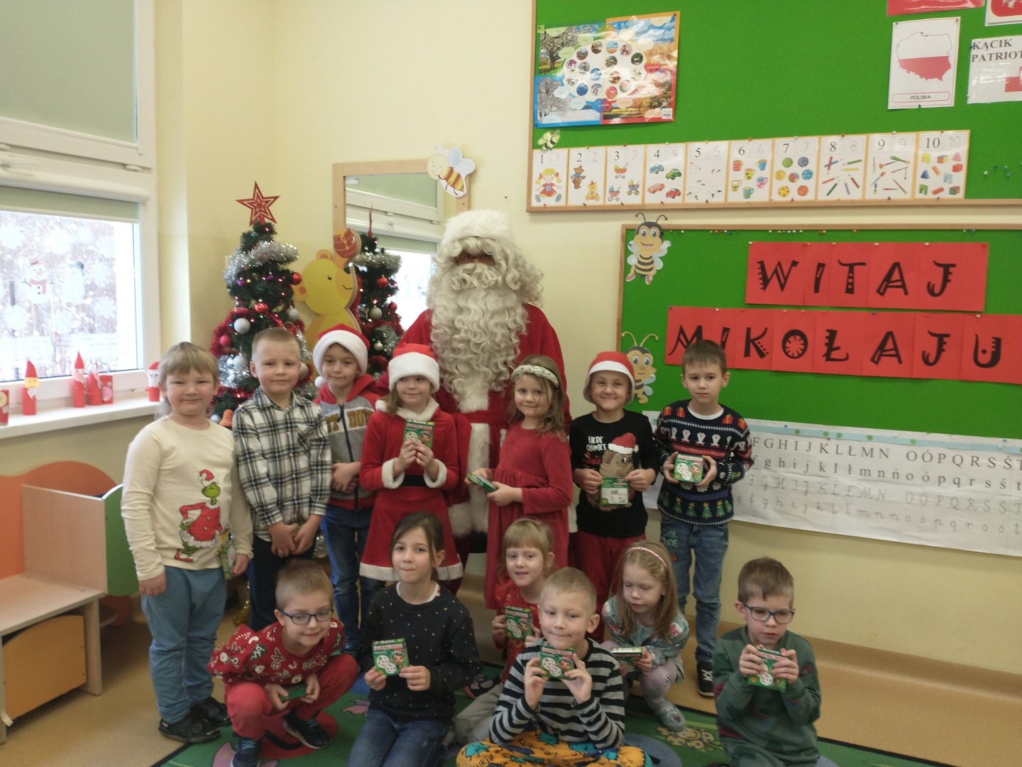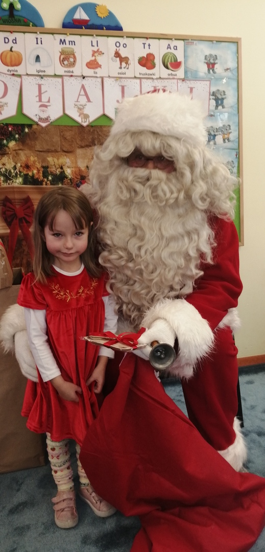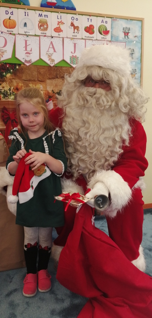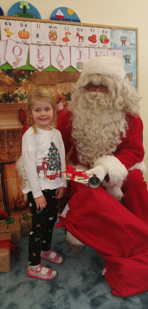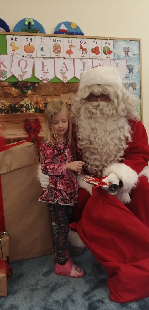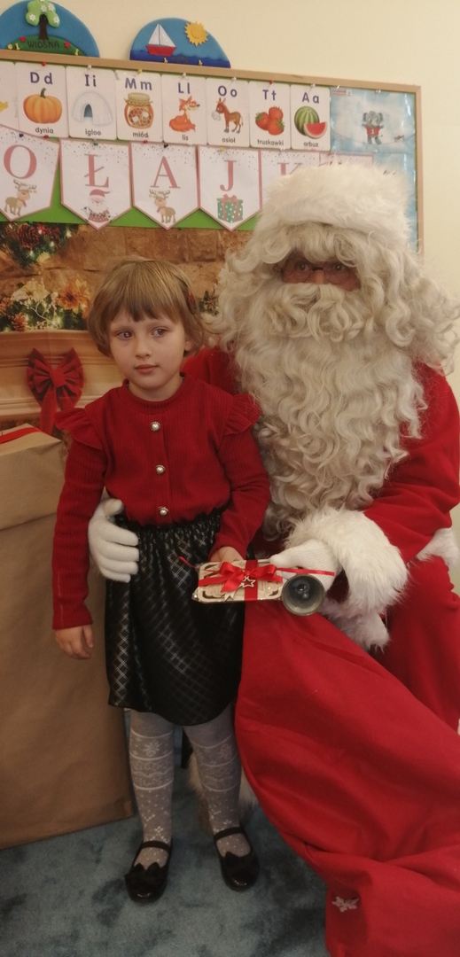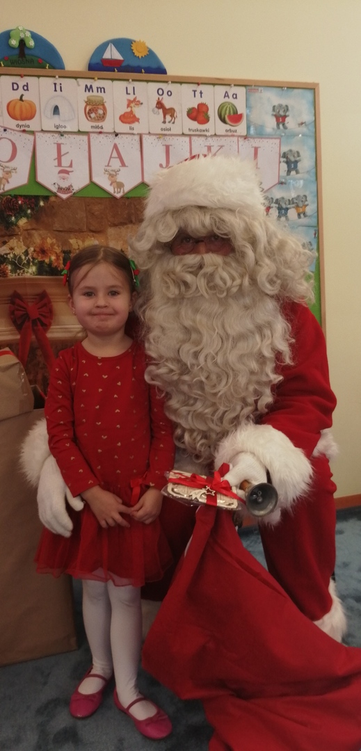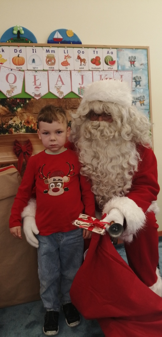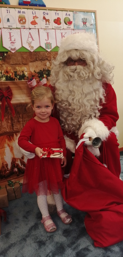 Natomiast dzieci z grupy ,,Misie” napisały list do Mikołaja z prośbą o wymarzone zabawki. Zostały też wykonane zdjęcia przy świątecznej ściance (które wręczą rodzicom na święta), a podczas wizyty Mikołaja wyrecytowały wierszyk i otrzymały drobne upominki.