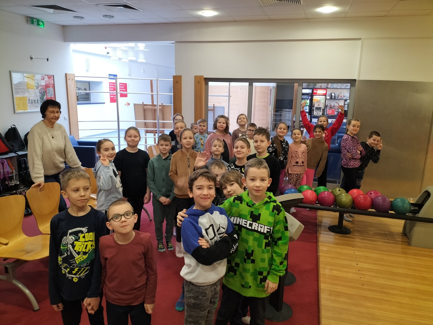 Na początku uczniowie grali w kręgle. Okazało się, że wszyscy radzili sobie bardzo dobrze.