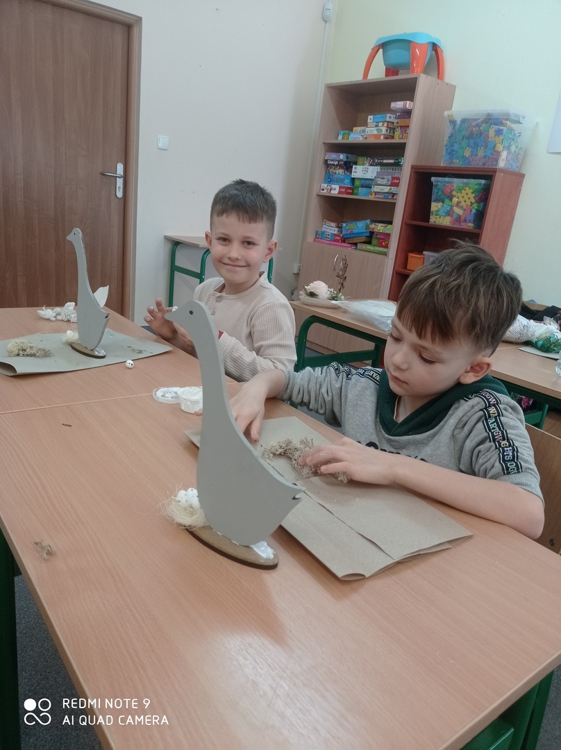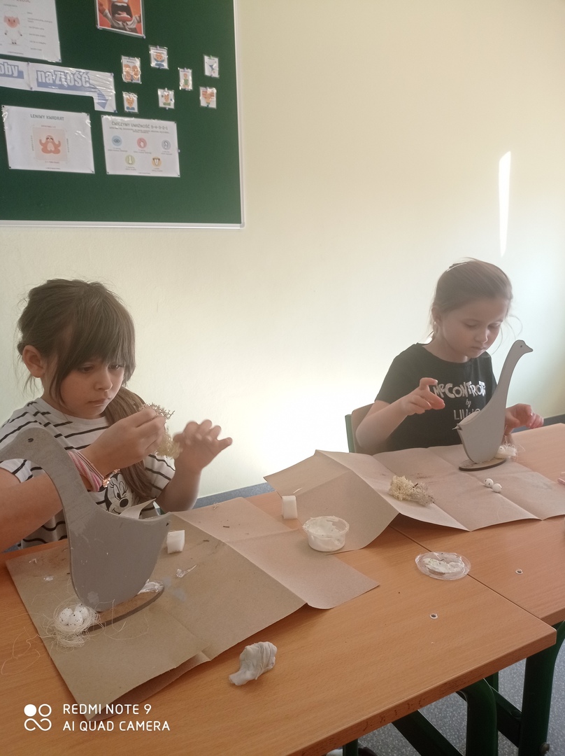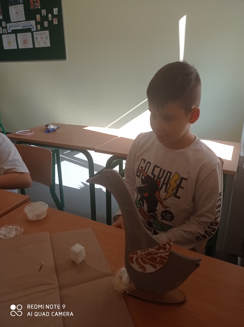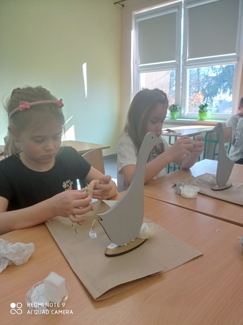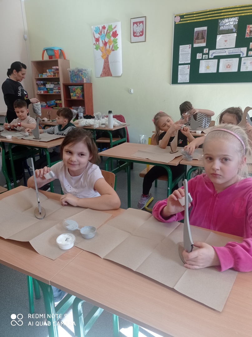Dnia 8 marca 2024 roku, w związku ze zbliżającymi się Świętami Wielkanocnymi, uczniowie klasy Ib uczestniczyli w warsztatach plastycznych o tematyce wielkanocnej. W trakcie zajęć twórczych dzieci wykonały wielkanocne gąski. Podczas pracy można było dostrzec niezwykłe zaangażowanie pierwszaków.