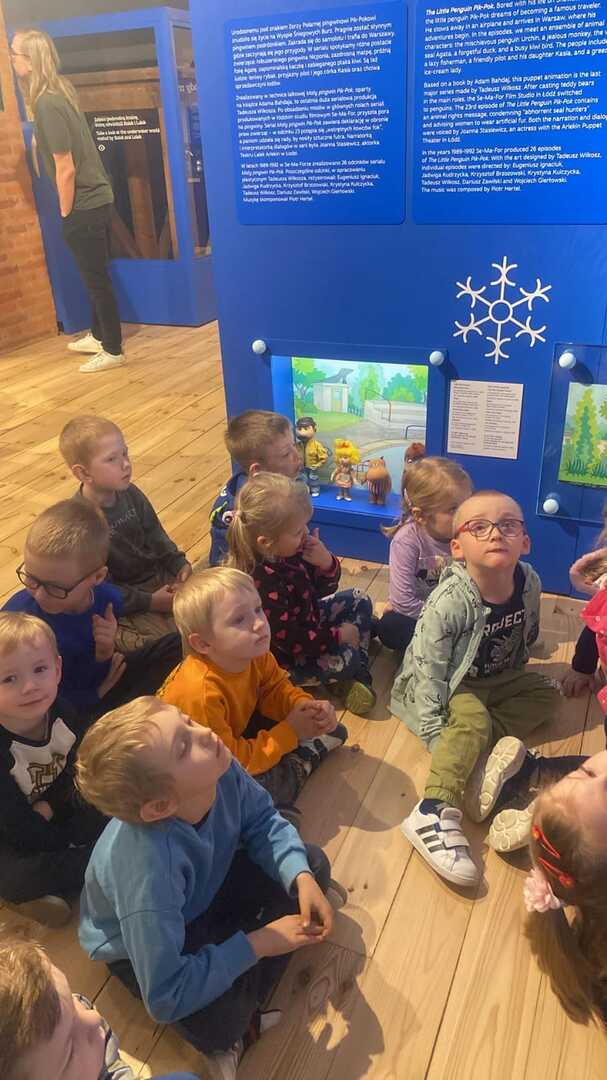 11 kwietnia przedszkolaki były na wycieczce w Muzeum Kinematografii w Łodzi. Na dzieci czekały warsztaty oraz zwiedzanie wystawy „Pałac pełen bajek”. Zachwycone maluchy miały możliwość zobaczyć między innymi krainę pingwina Pik Poka; pokój Misia Uszatka; świat ryjówki Florki, jak również wejść do budy Reksia. Podczas warsztatów przedszkolaki uczestniczyły w grupowych zadaniach oraz rozwiązywały specjalnie dla nich przygotowane zagadki.