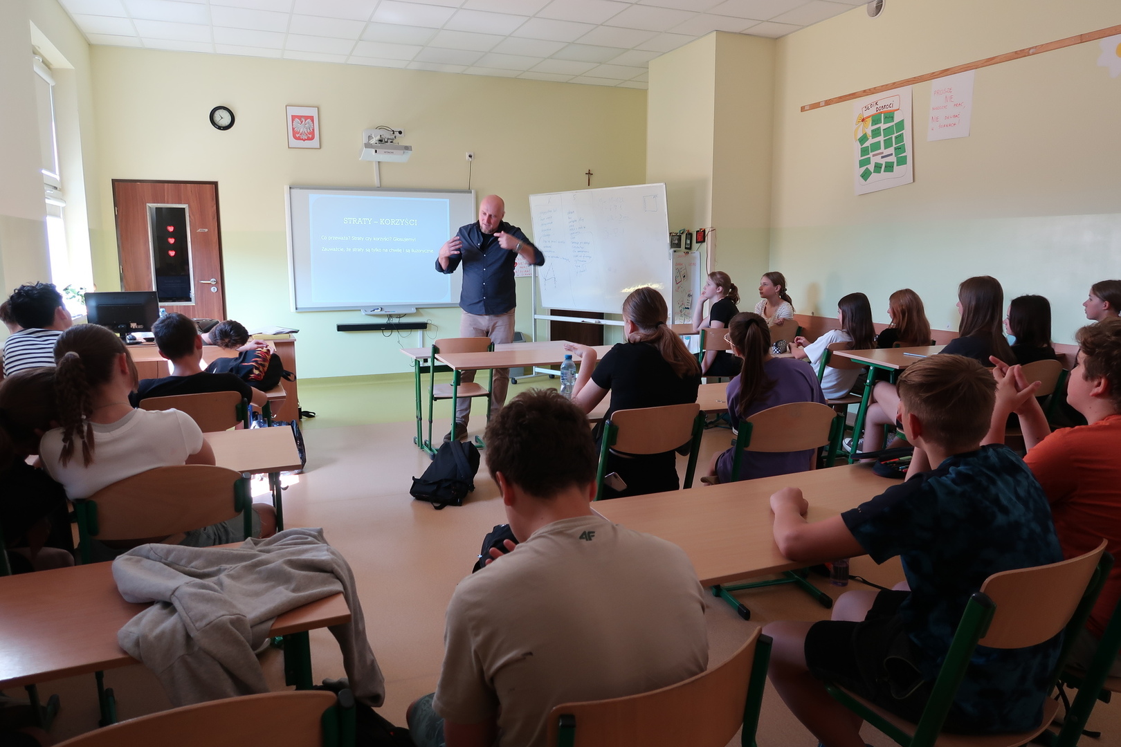 21 maja uczniowie klasy piątej i szóstej uczestniczyli w warsztatach profilaktycznych pt. ,,Debata” sfinansowanych z środków Gminy Stryków.