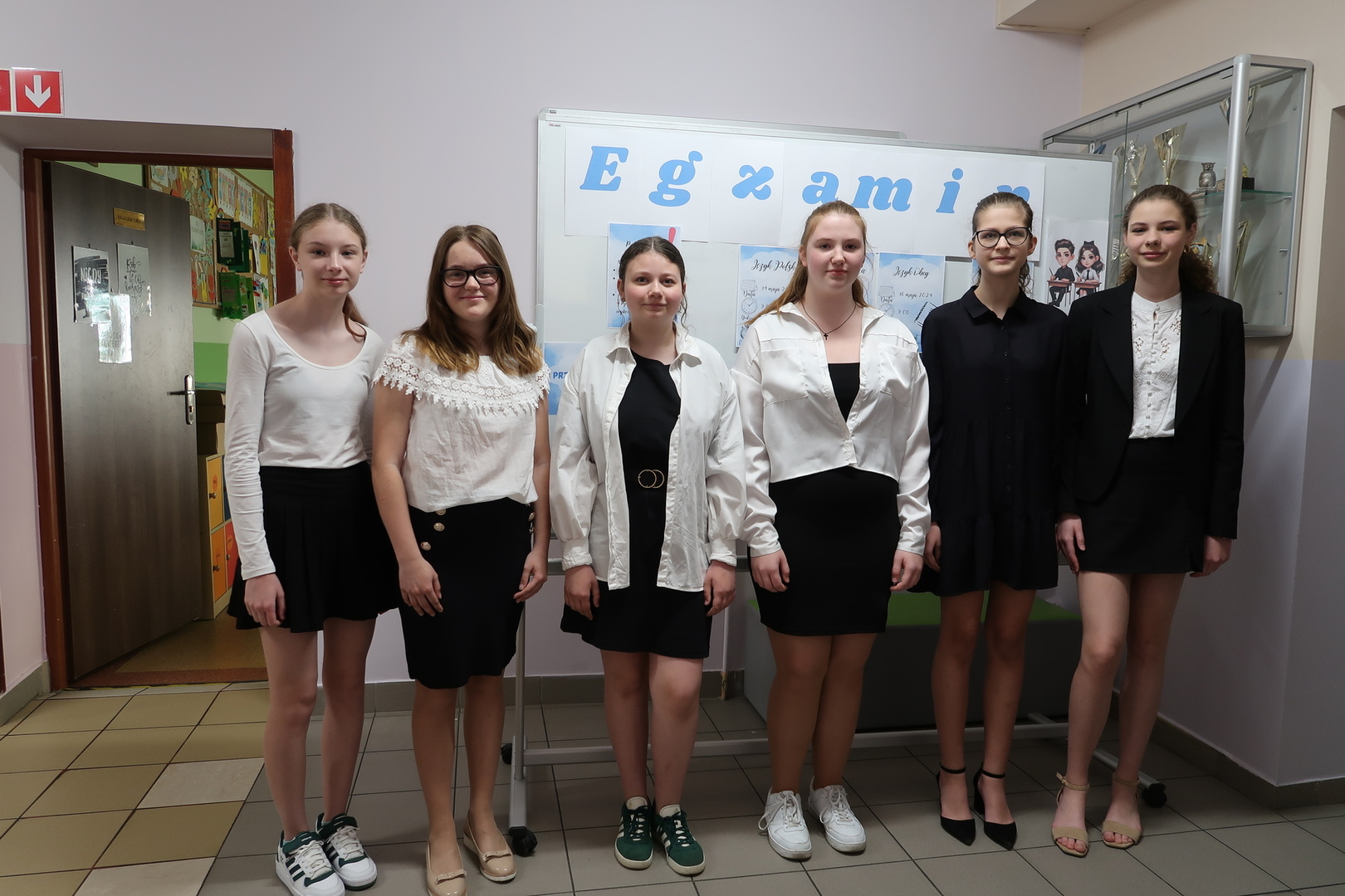 W dniach 14-16 maja br. szesnaścioro uczniów klasy ósmej przystąpiło do egzaminu kończącego szkołę podstawową. W kolejnych dniach prezentowali swoją wiedzę i umiejętności z języka polskiego, matematyki oraz języka obcego (angielskiego i niemieckiego). Wszystkim towarzyszyło trochę stresu i niepewność, czy uda się napisać egzamin na dobrym poziomie.