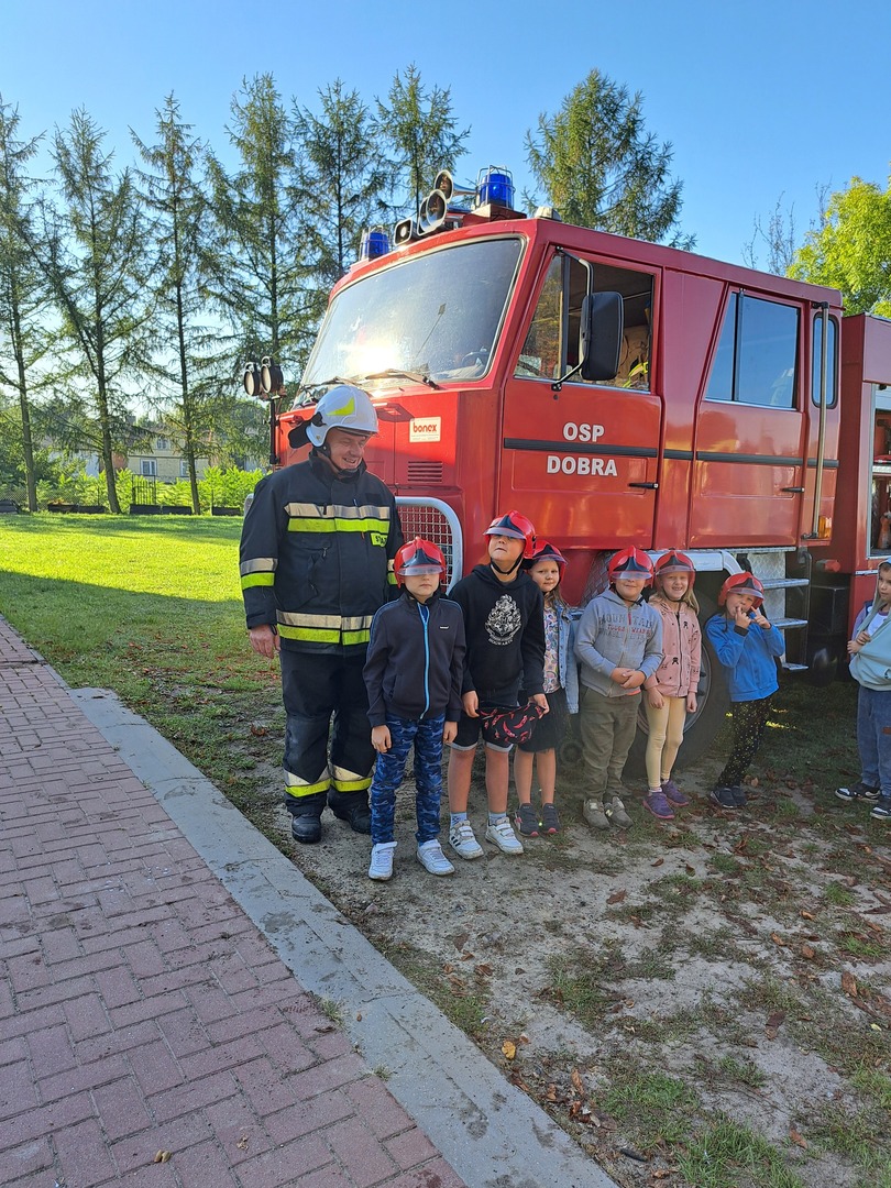 20 września uczniowie z klas 1 A i 1 B odwiedzili Ochotniczą Straż Pożarną. Naczelnik - Pan Darek Burtka - opowiedział dzieciom, jak wygląda praca na służbie. Z dwiema strażaczkami zaprezentował akcję ratowniczą, czym zachwycił uczniów.