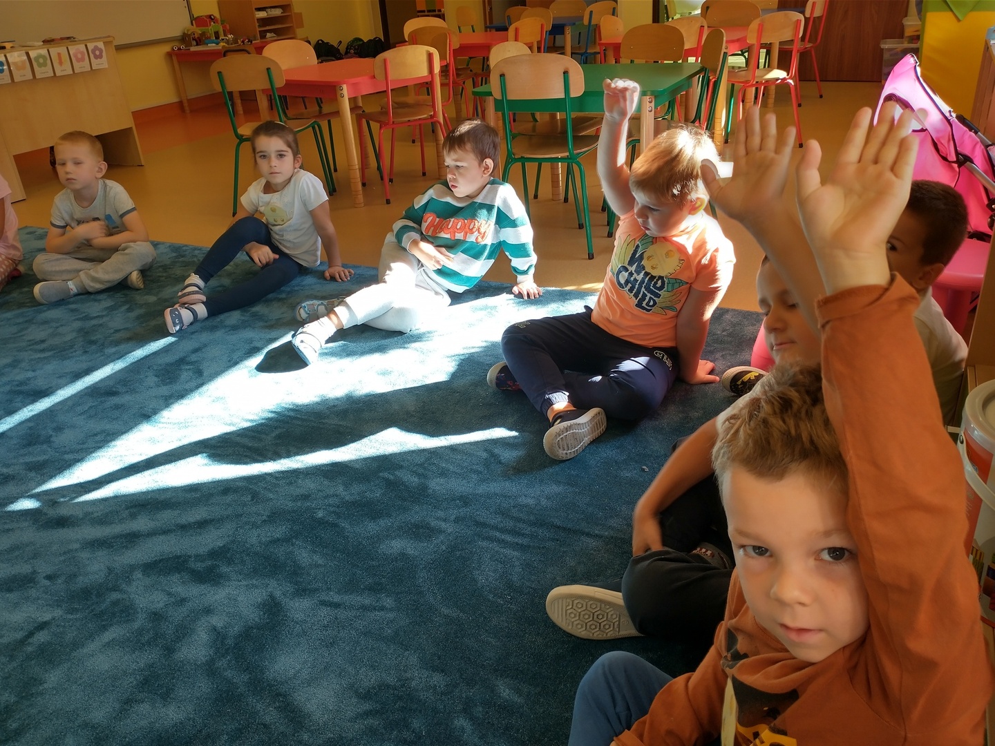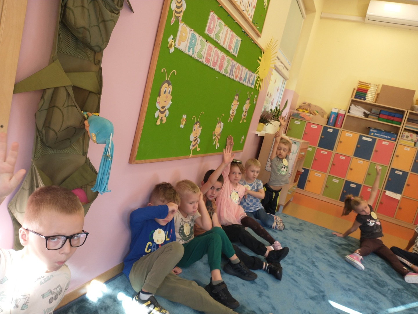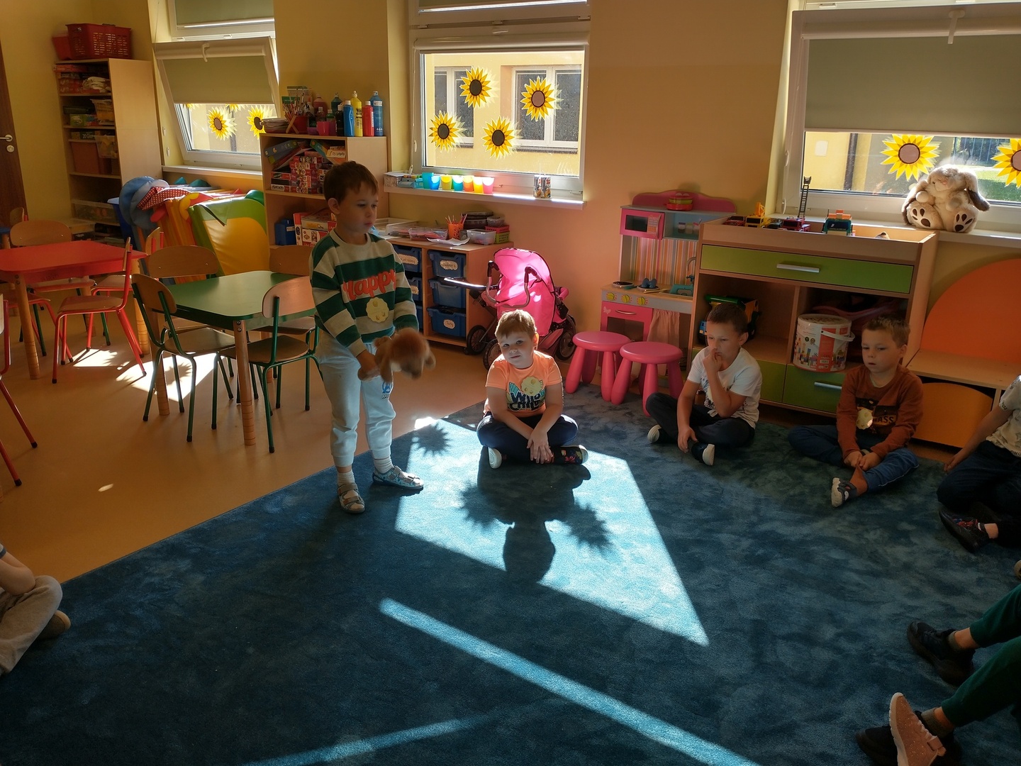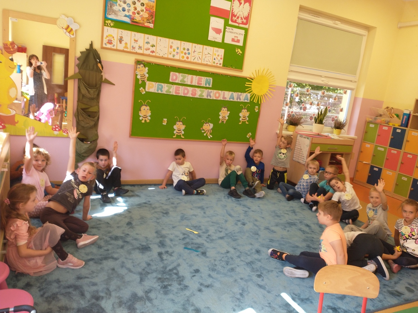 W przedszkolnej grupie ,,Pszczółki” 20 września przebiegał pod hasłem wspólnej zabawy. Na przywitanie dzieci otrzymały odznakę super przedszkolaka. Każdy miał okazję dokonać autoprezentacji (podać swoje imię, ulubioną zabawę i potrawę). Następnie dzieci wspólnie szukały sposobów na nudę, aby pomóc Krzysiowi – bohaterowi wiersza. Zostało zaprezentowanych wiele ciekawych pomysłów.