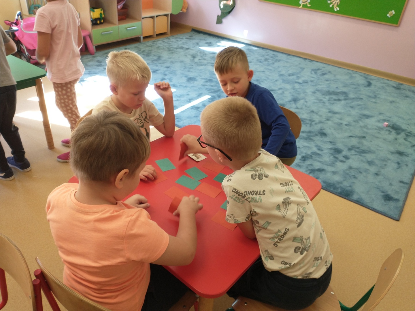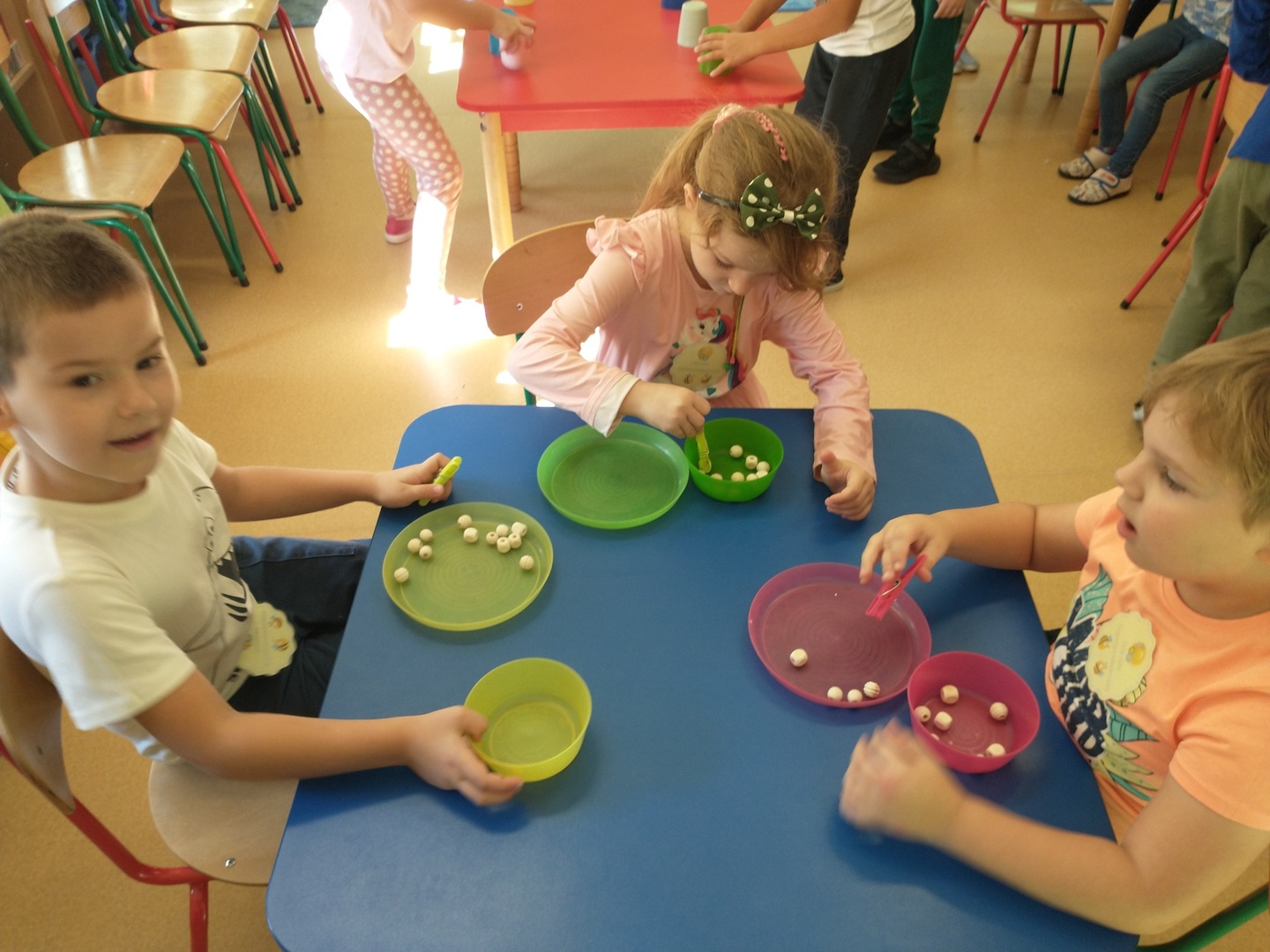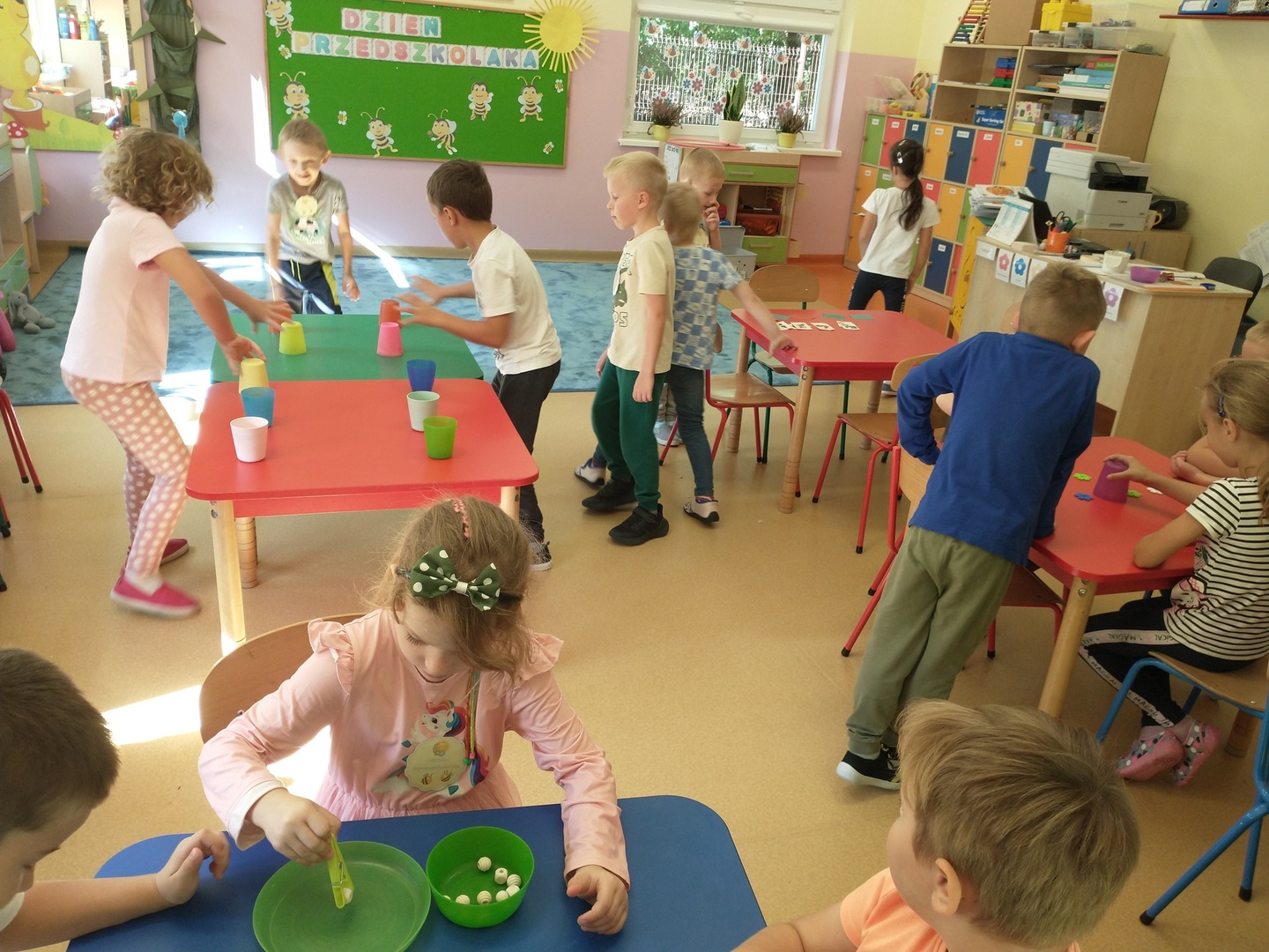Na przedszkolaków czekały stacje zadaniowe rozwijające spostrzegawczość, pamięć, małą motorykę, zdolność szybkiego reagowania. Dzieci wspaniale się bawiły, wykonując przygotowane zadania.