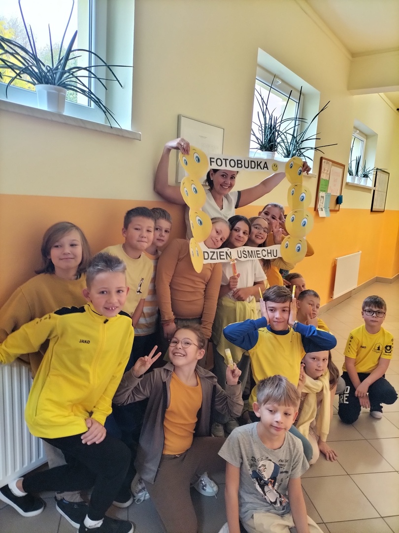 7 października w naszej szkole obchodziliśmy Dzień Uśmiechu. Z tej okazji dzieci ubrały się na żółto. Na korytarzu była również foto budka i uczniowie mogli robić sobie zdjęcia.