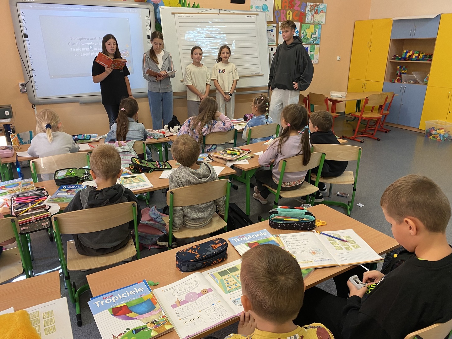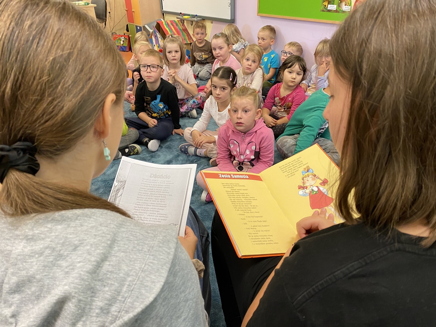 29 września obchodziliśmy Ogólnopolski Dzień Głośnego Czytania. Z tej okazji Samorząd Uczniowski we współpracy z biblioteką szkolną zorganizował spotkania czytelnicze dla uczniów klas 1-3 oraz dzieci z oddziałów przedszkolnych.