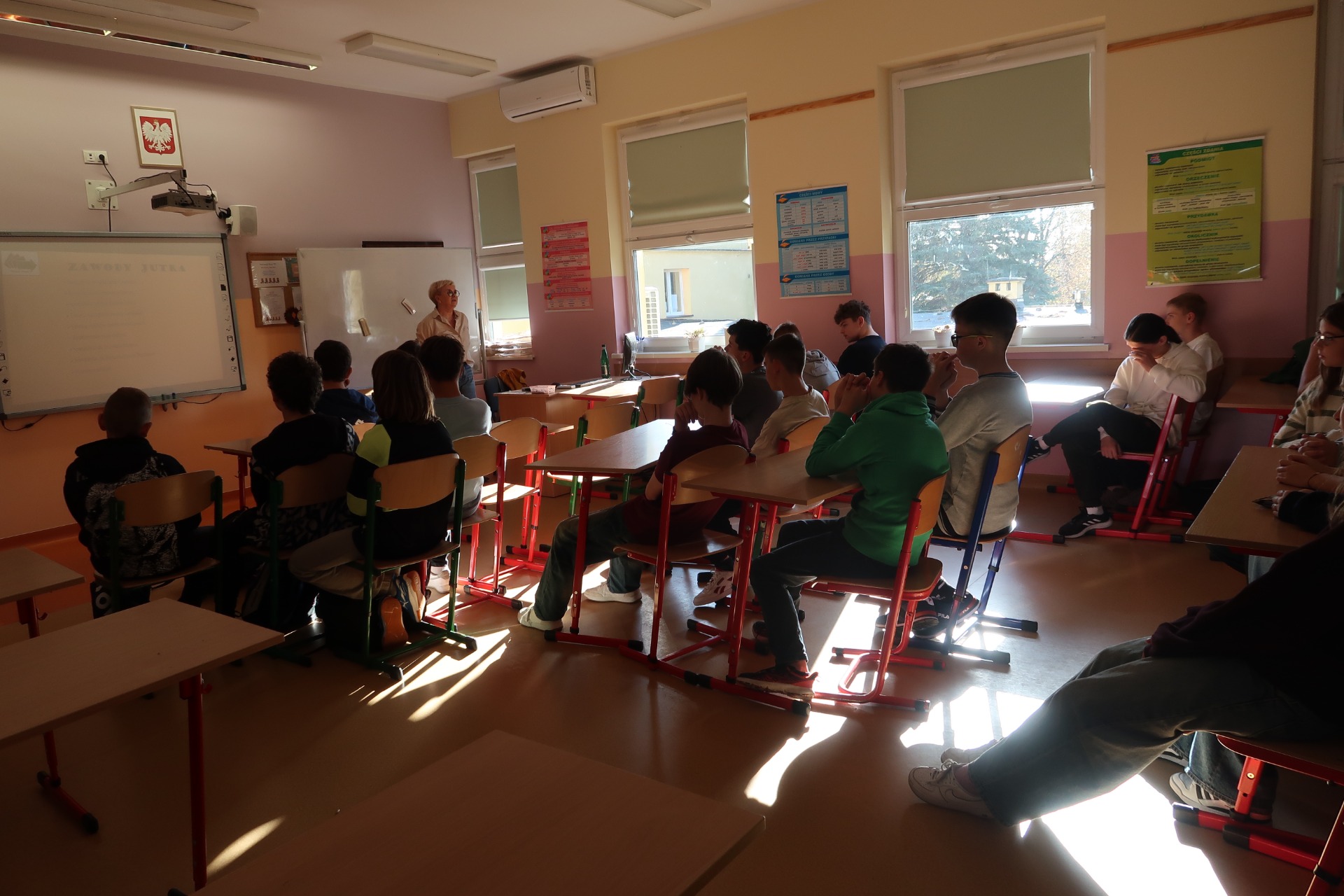 W dniu 28.10.2024 w naszej szkole odbyło się spotkanie z doradcą zawodowym z Powiatowego Urzędu Pracy w Zgierzu. W spotkaniu uczestniczyli uczniowie klas siódmej i ósmej. Zajęcia dotyczyły zasad rejestracji w Urzędzie Pracy, współpracy bezrobotnego z UP oraz sposobów szukania pracy dodatkowej. Podczas prelekcji uczniowie dowiedzieli się również, jakie są zawody przyszłości.