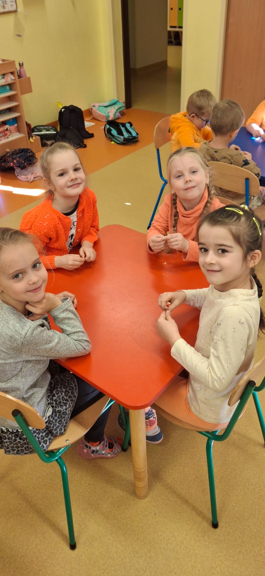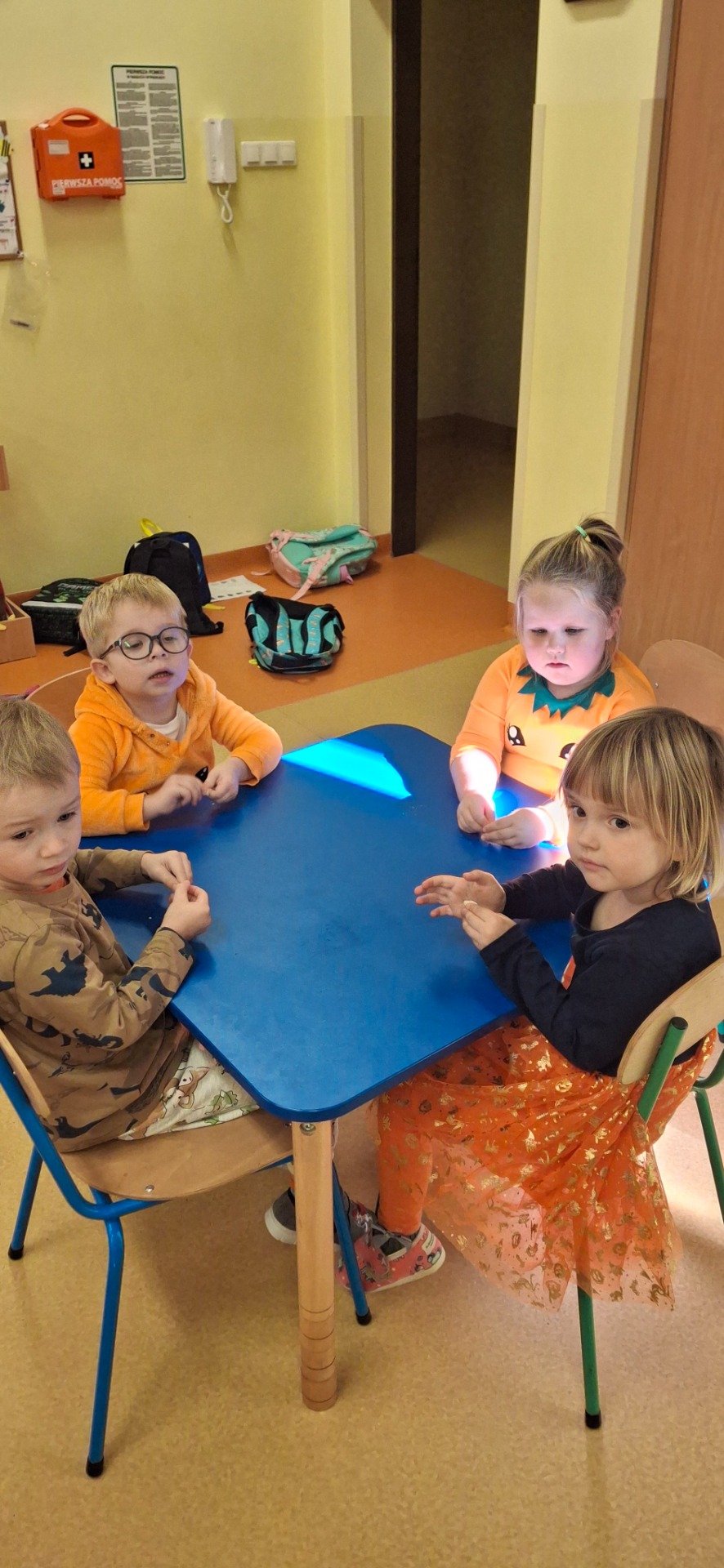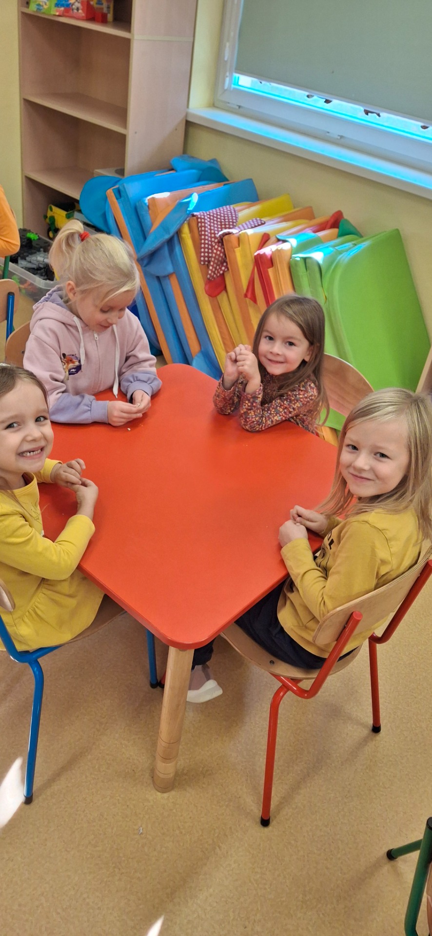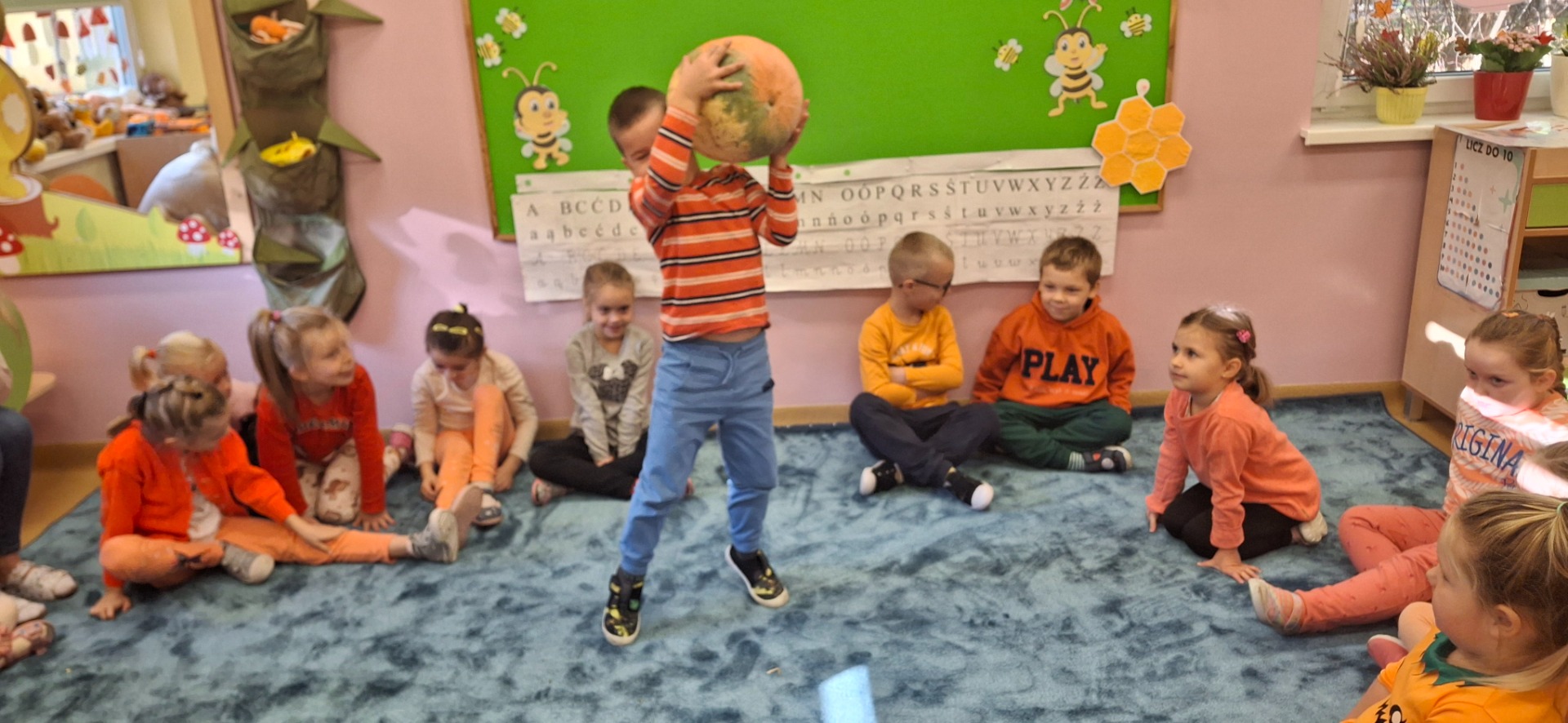 Przedszkolaki z grupy ,,Misie” i ,,Pszczółki” tego dnia przyszły ubrane w kolorze pomarańczowym. Niektóre z dzieci przebrały się za dynie, co było wspaniałym wstępem do rozmów, czy dynia to owoc, czy warzywo. Dzieci otrzymały różne odmiany dyń i porównywały je pod względem wielkości, koloru i kształtu, następnie z zawiązanymi oczami układały je od najmniejszej do największej, co było nie lada wyzwaniem. Nie zabrakło też kart pracy, w których dopasowywały cienie do dyń, łączyły warzywa od najmniejszego do największego, kolorowały dynie wg wielkości.
