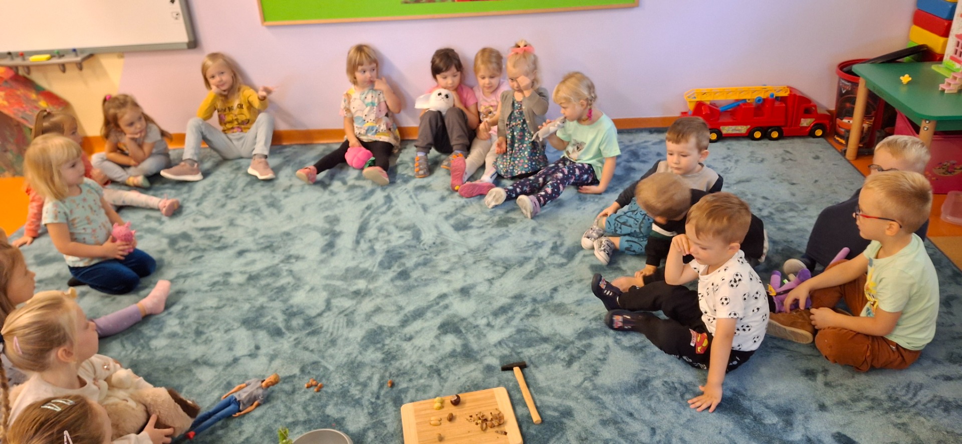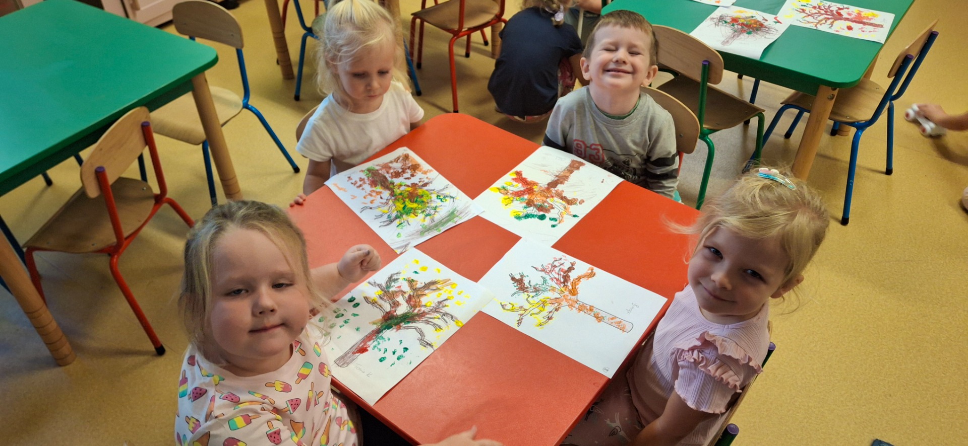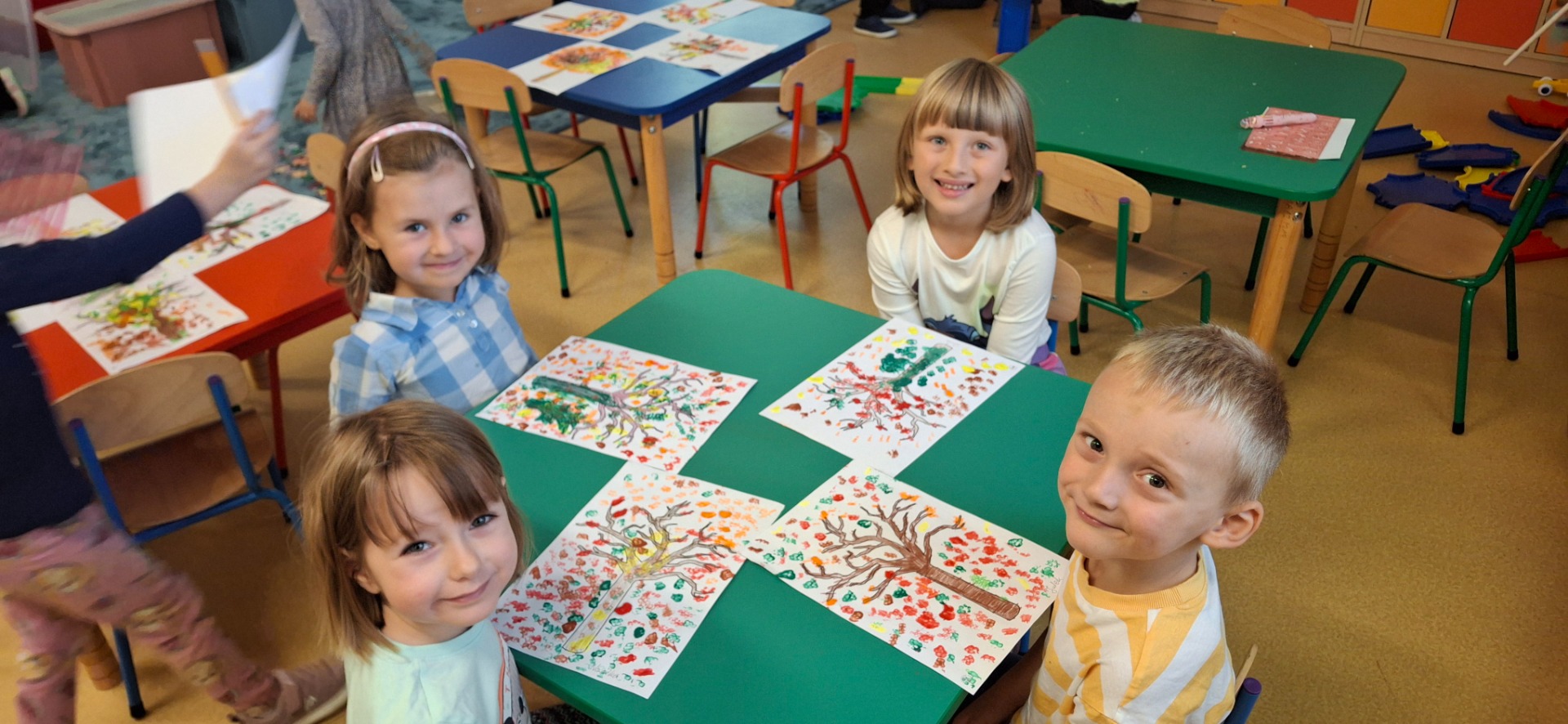 · Dzień Spadającego Liścia - czyli Pierwszy Dzień Jesieni - tego dnia przedszkolaki sprawdzały, co zmienia się w przyrodzie. Wybrały się na spacer, opisywały, jak wyglądają drzewa, nazywały kolory, zbierały liście z których wykonały bukiety, a także sprawdzały, co kryje się w środku żołędzia, kasztana i orzecha laskowego. Dzieci porównywały wygląd oraz twardość łupiny darów jesieni, a także wykonały pracę plastyczną.