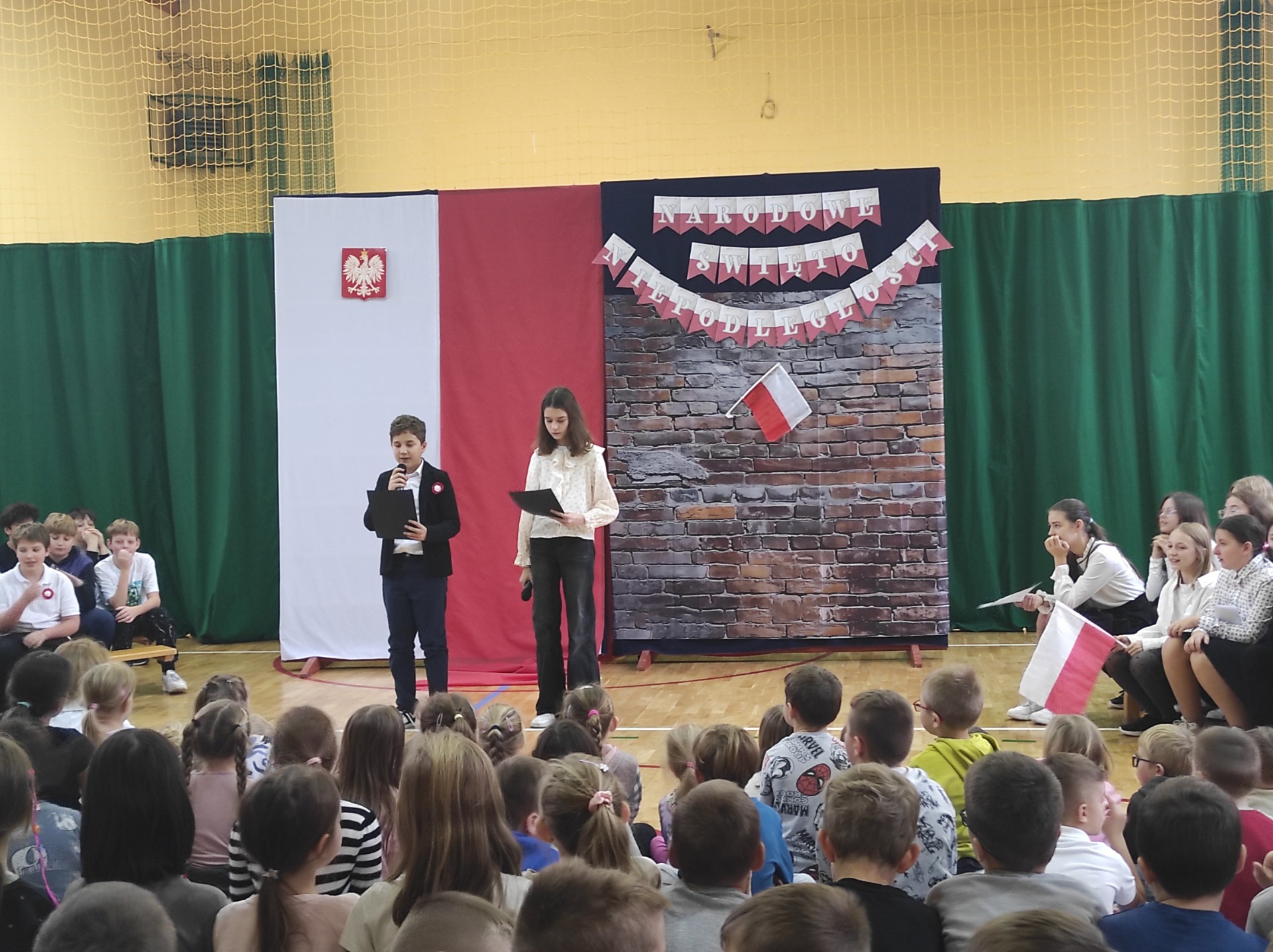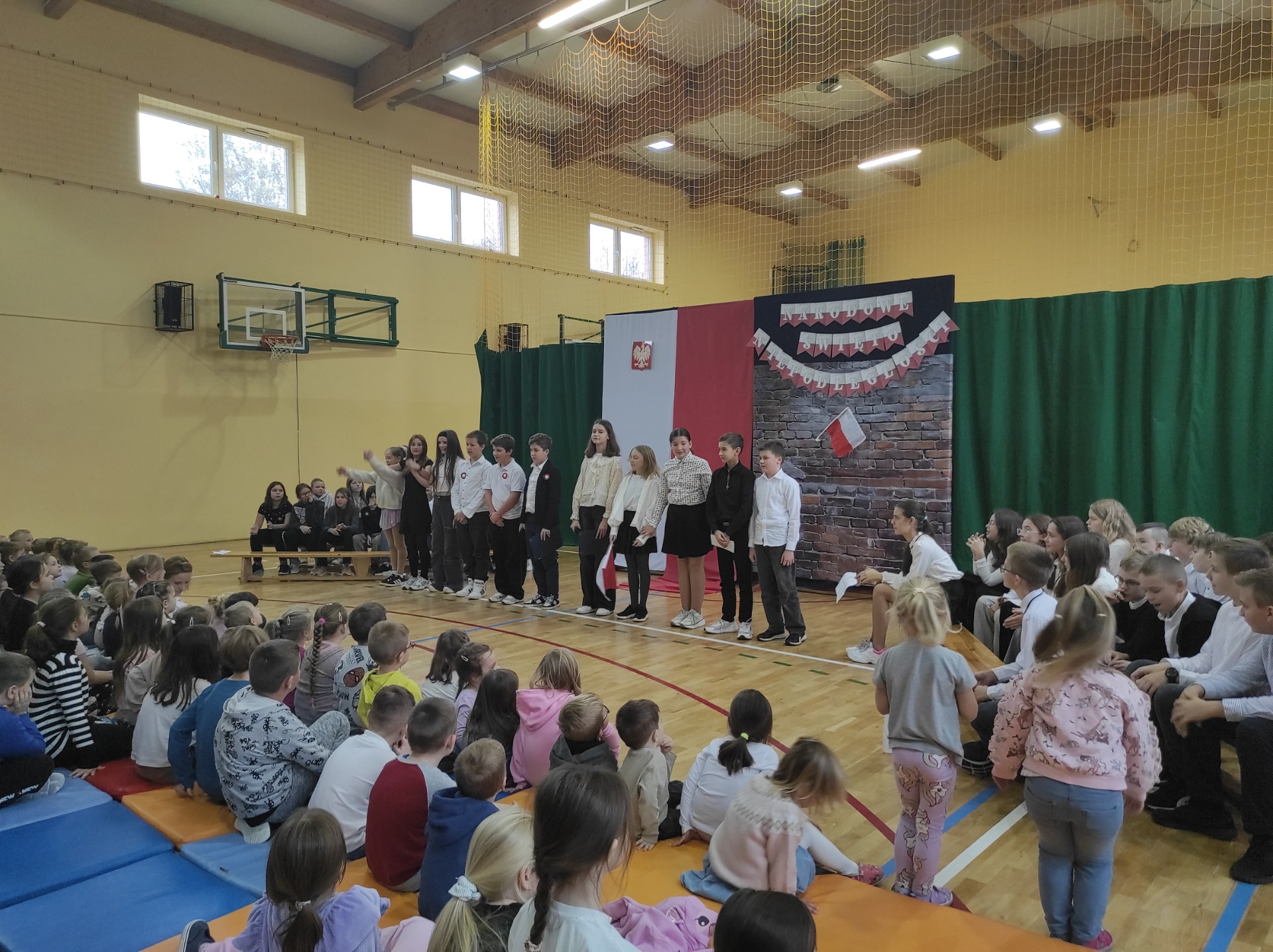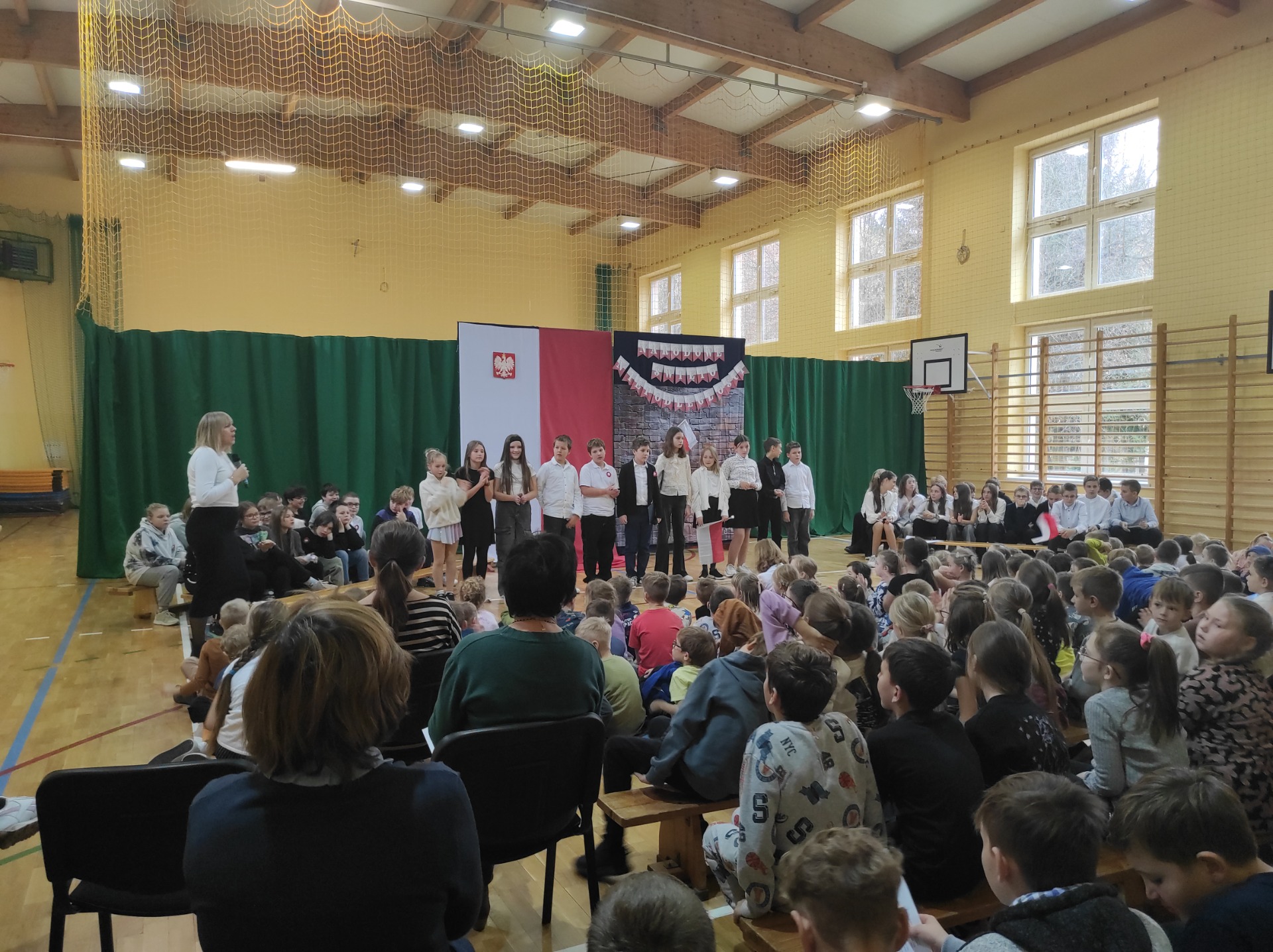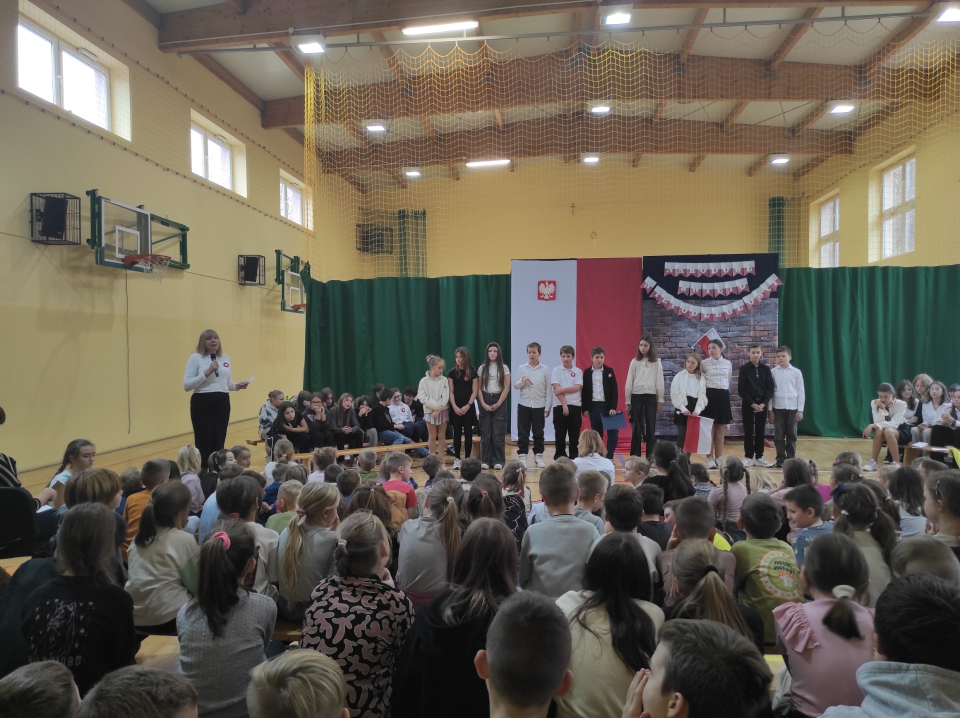 13 listopada w naszej szkole uczciliśmy Narodowe Święto Niepodległości. W roku 1918, po 123 latach, Polska odzyskała wolność. To niezwykłe wydarzenie przypomnieli nam w ciekawym i przejmującym przedstawieniu uczniowie klasy 5 i 6 wraz z wychowawczyniami, panią A. Norek i panią K. Gapińską. Wspólnie odśpiewaliśmy również pieśni legionowe. Cieszy nas fakt, że nasi uczniowie znają teksty pieśni patriotycznych i potrafią zaprezentować je w uroczysty sposób