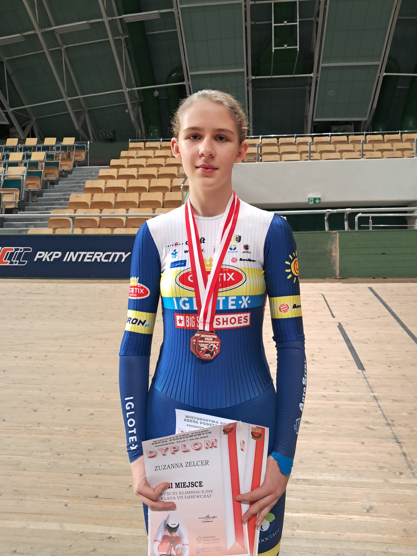 W dniach 30 listopada – 1grudnia na pruszkowskim torze kolarskim odbyły się Mistrzostwa Polski Szkół Podstawowych. Naszą szkołę reprezentowała uczennica klasy VII- Zuzanna Zelcer. Podczas dwóch dni zmagań wywalczyła dwa medale - srebrny w konkurencji wyścig eliminacyjny oraz brązowy w wyścigu punktowym.