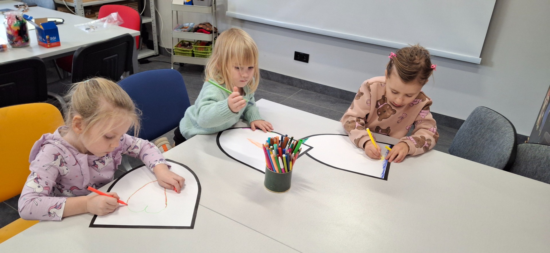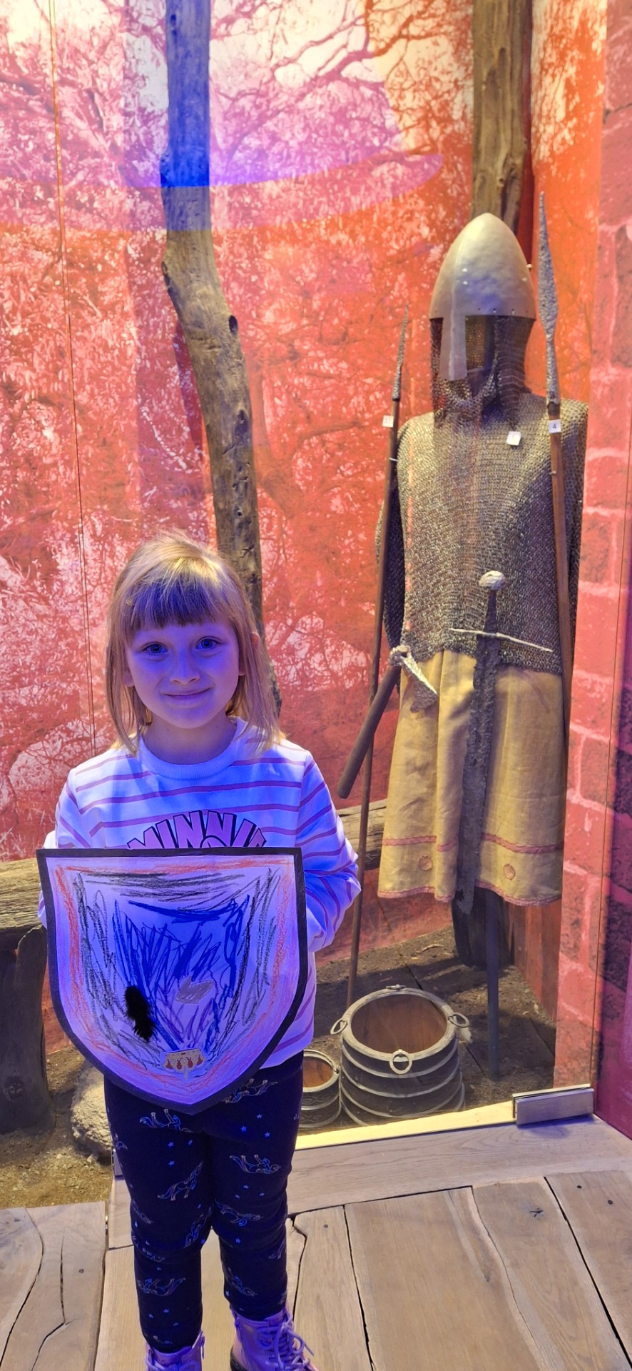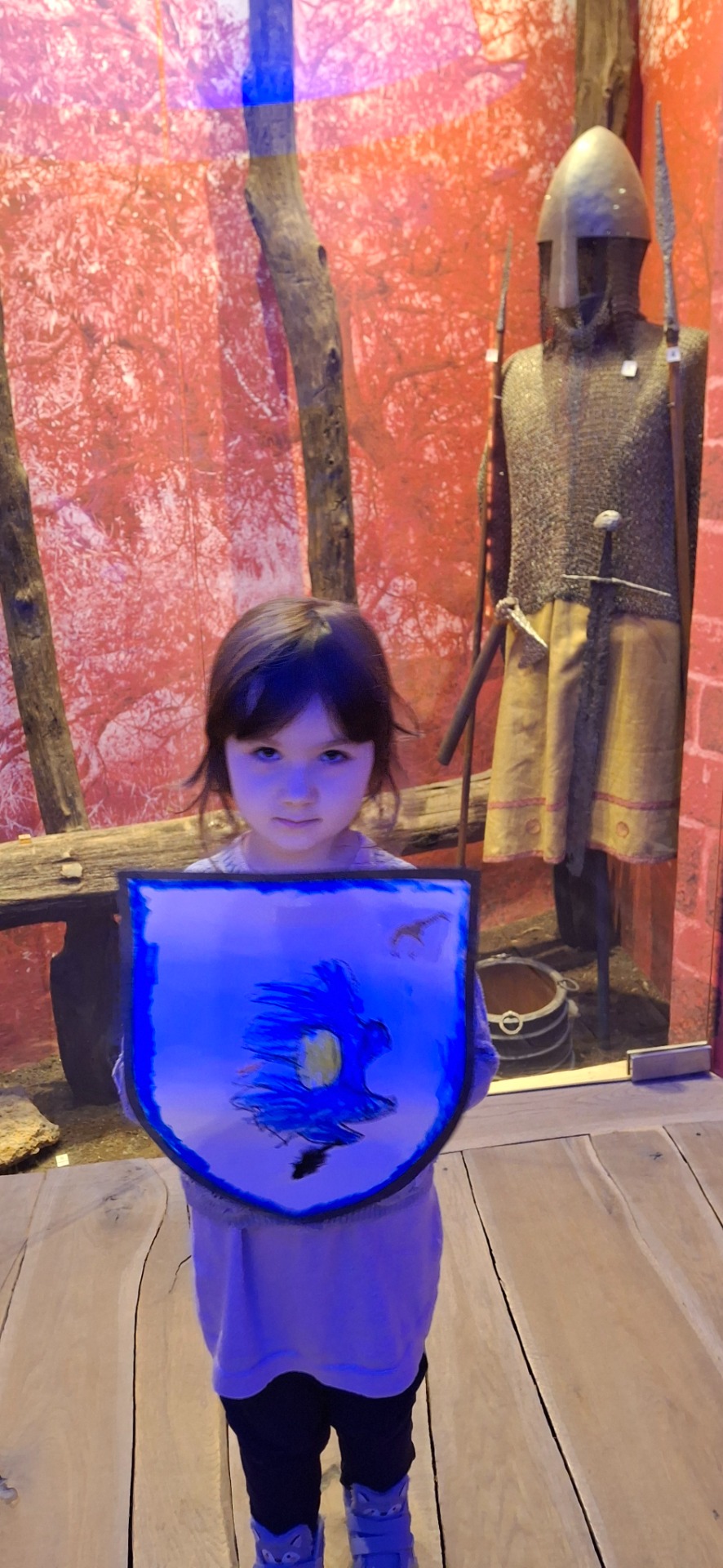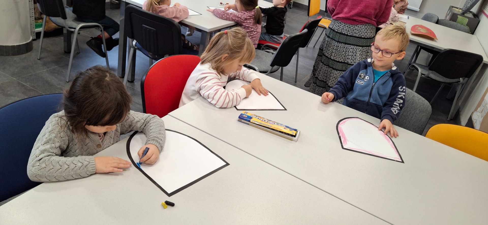Przedszkolaki z młodszej grupy wzięły udział w zajęciach pt. „W czasach rycerzy”. Podczas wizyty w muzeum dzieci zobaczyły zabytki z czasów średniowiecza. Dowiedziały się, co oznacza być prawdziwym rycerzem i jak wyglądało życie tej grupy społecznej w czasach średniowiecza. Korzystając z przygotowanych szablonów, przedszkolaki tworzyły tarcze, dekorując je według własnego pomysłu.