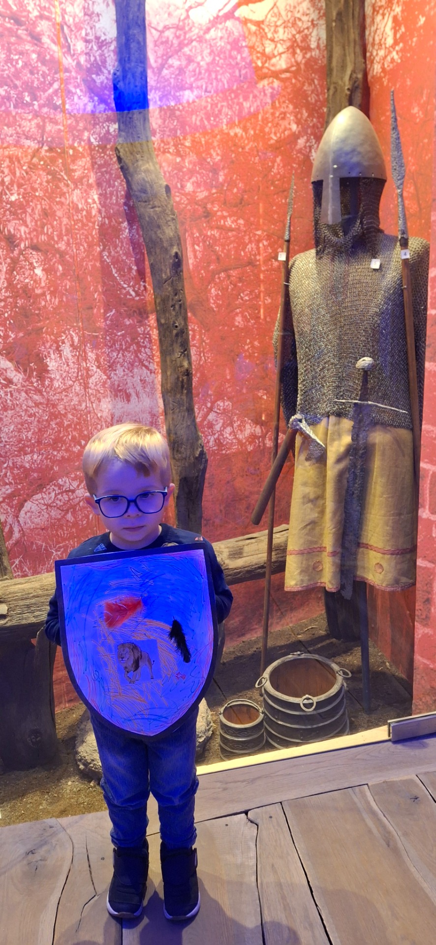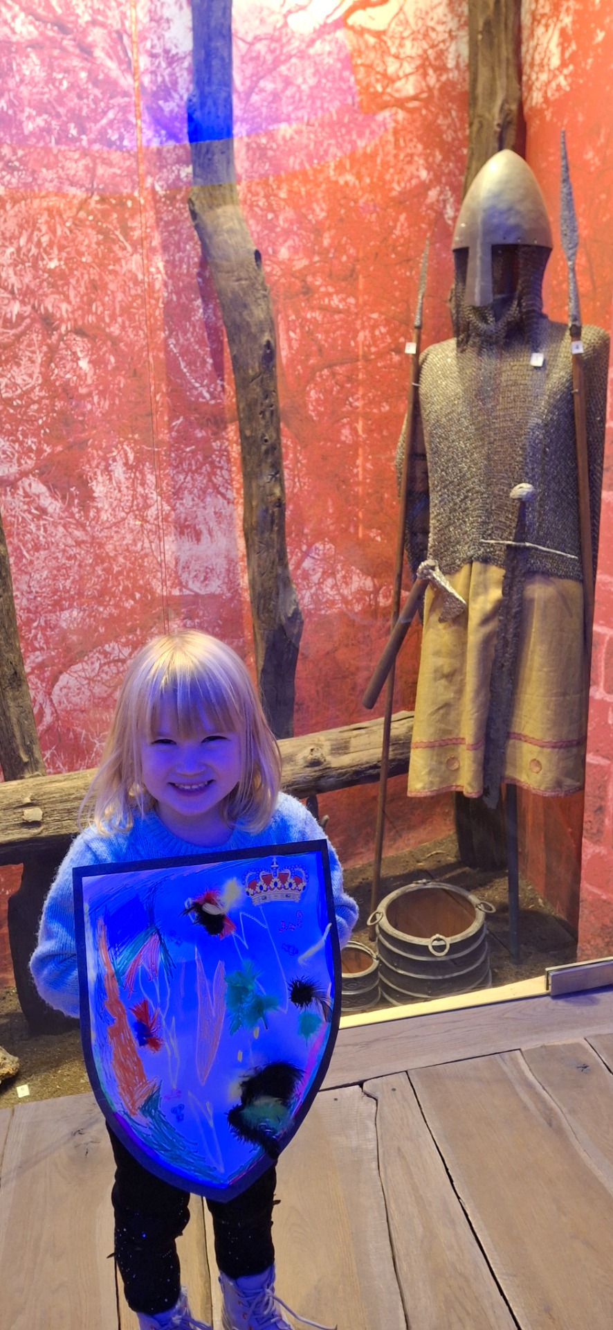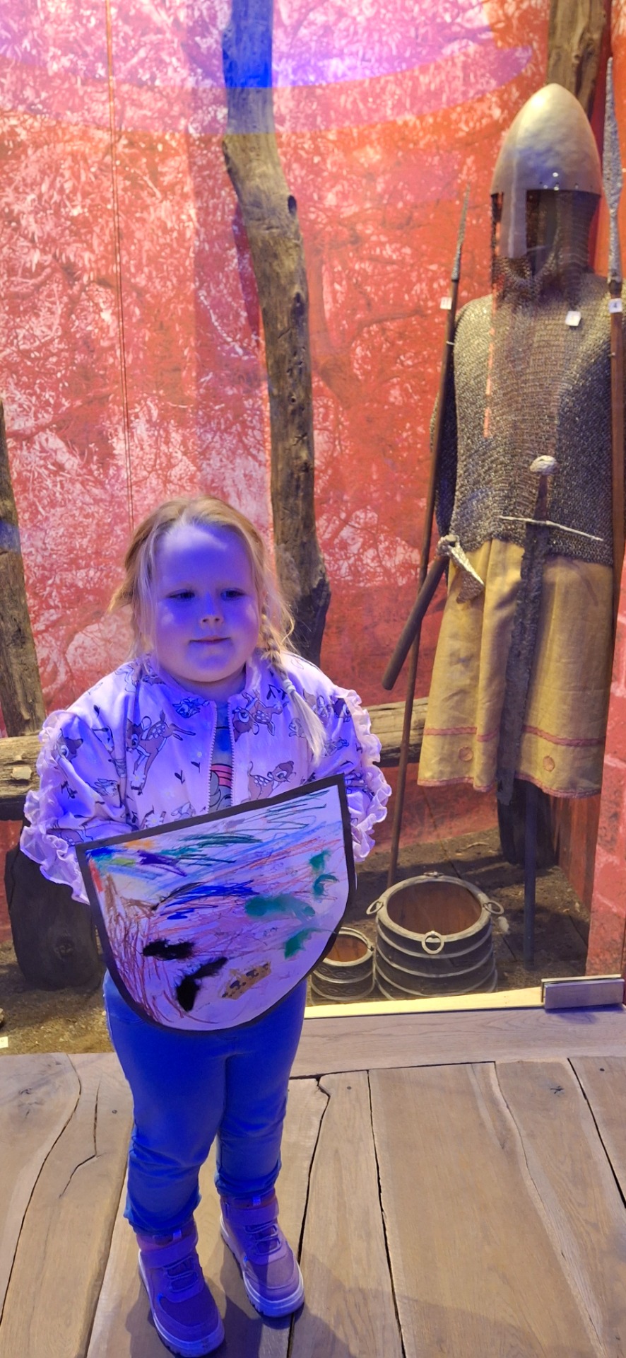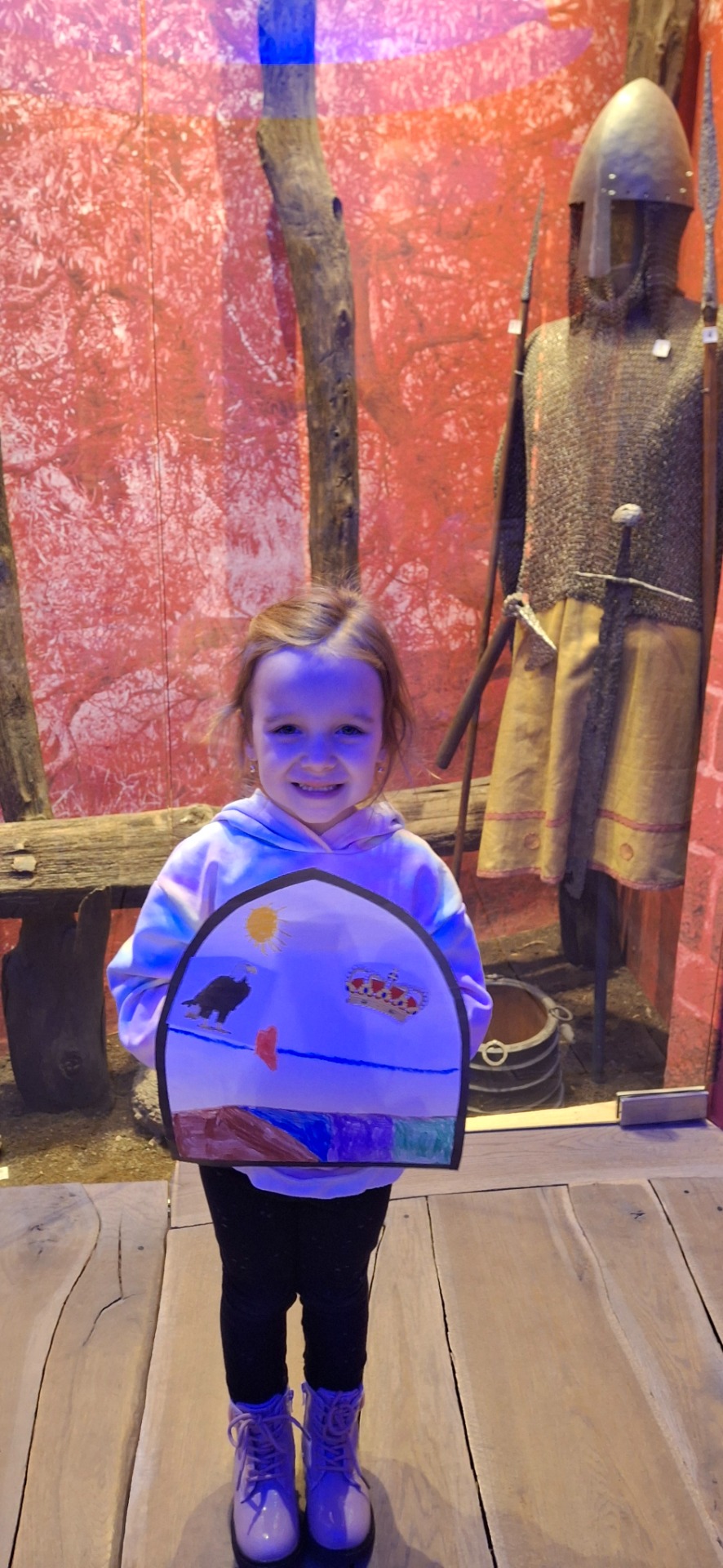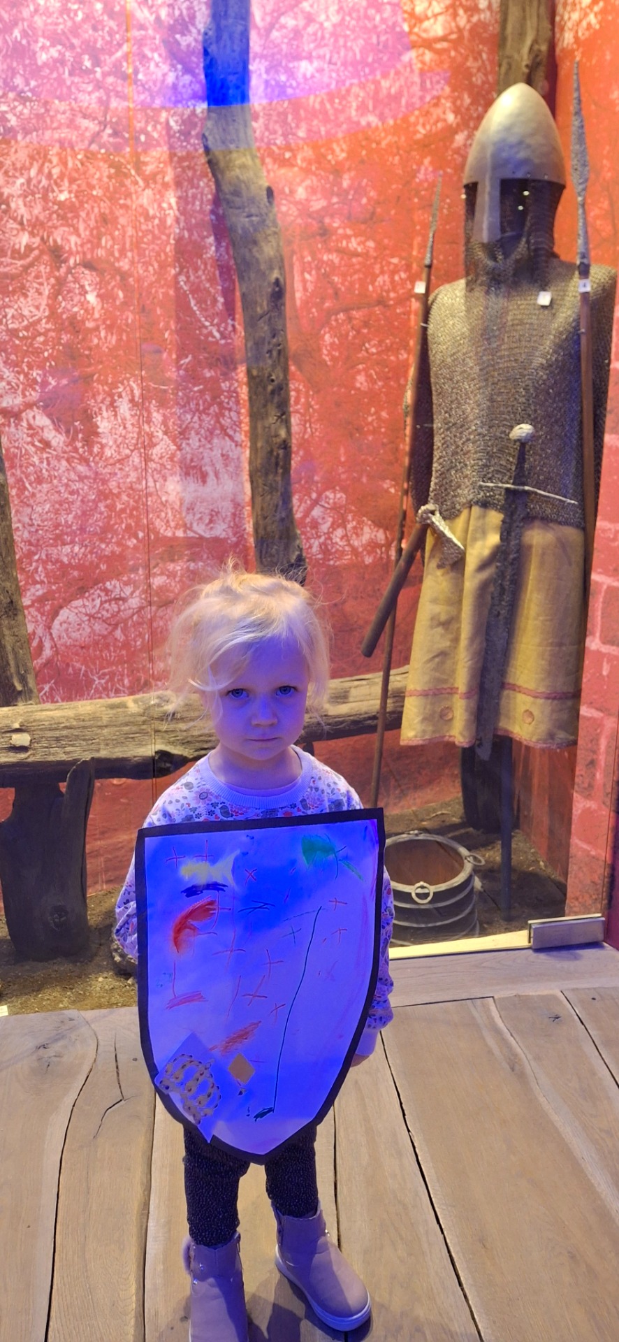 Przedszkolaki z młodszej grupy wzięły udział w zajęciach pt. „W czasach rycerzy”. Podczas wizyty w muzeum dzieci zobaczyły zabytki z czasów średniowiecza. Dowiedziały się, co oznacza być prawdziwym rycerzem i jak wyglądało życie tej grupy społecznej w czasach średniowiecza. Korzystając z przygotowanych szablonów, przedszkolaki tworzyły tarcze, dekorując je według własnego pomysłu.