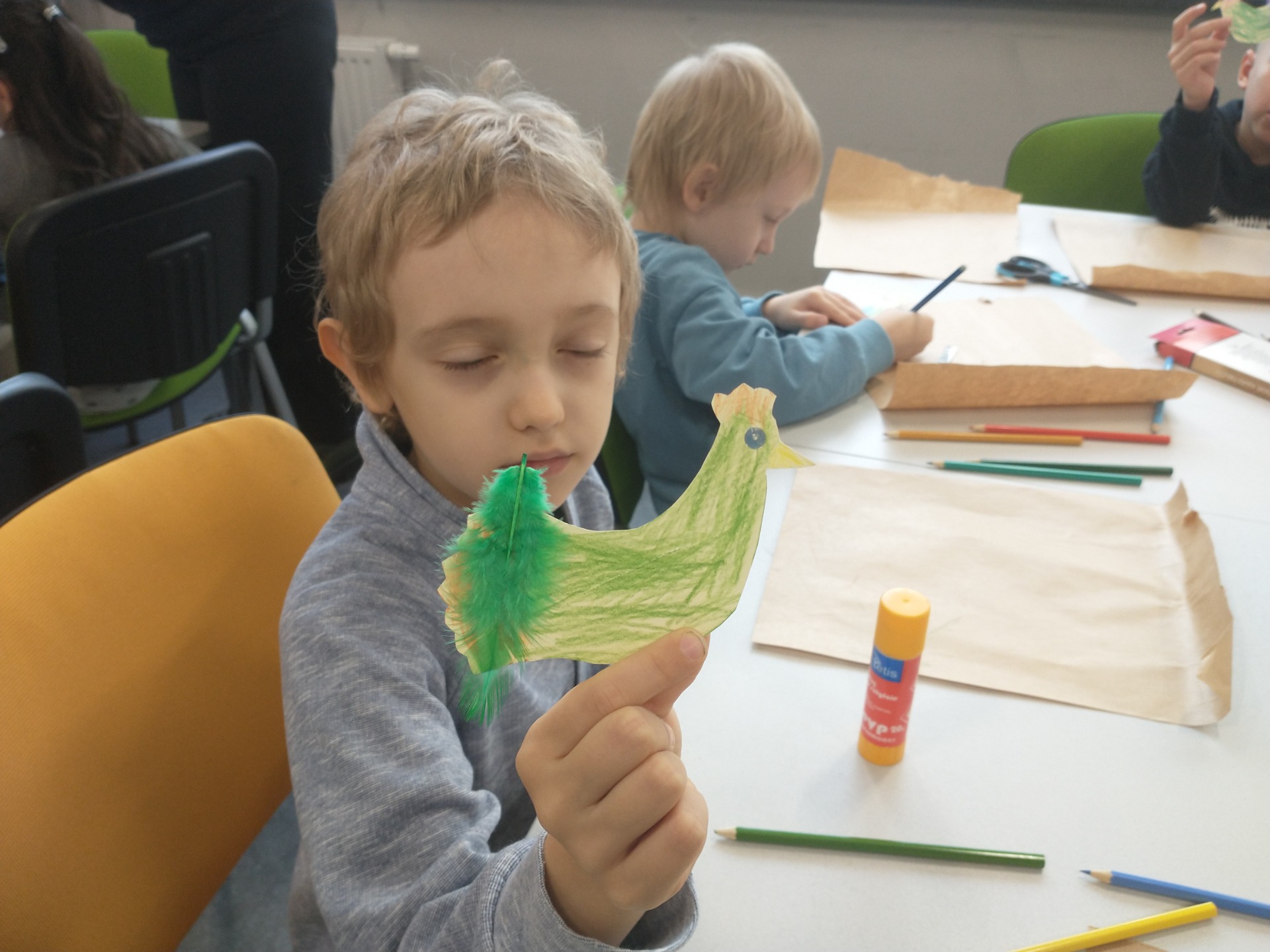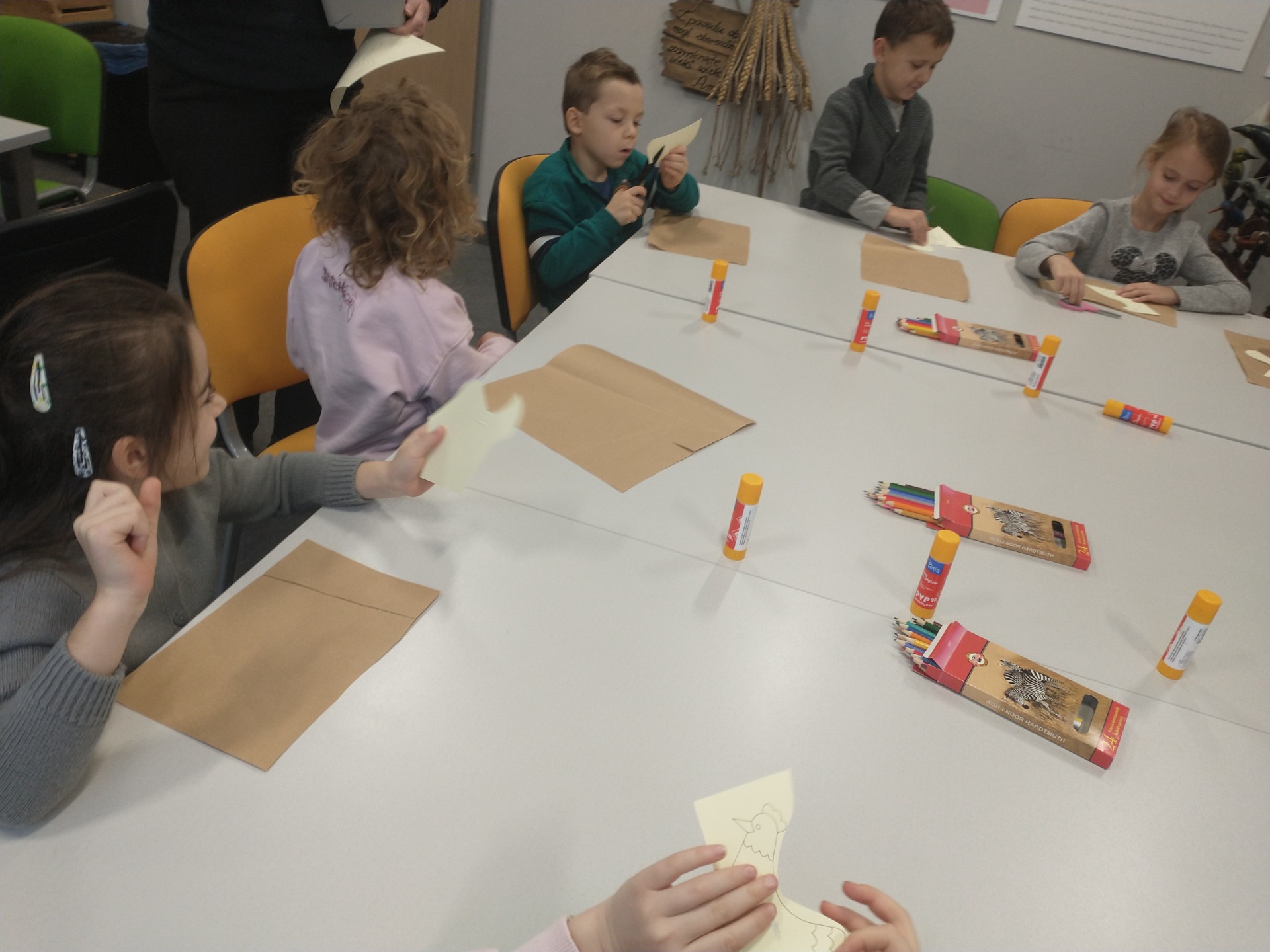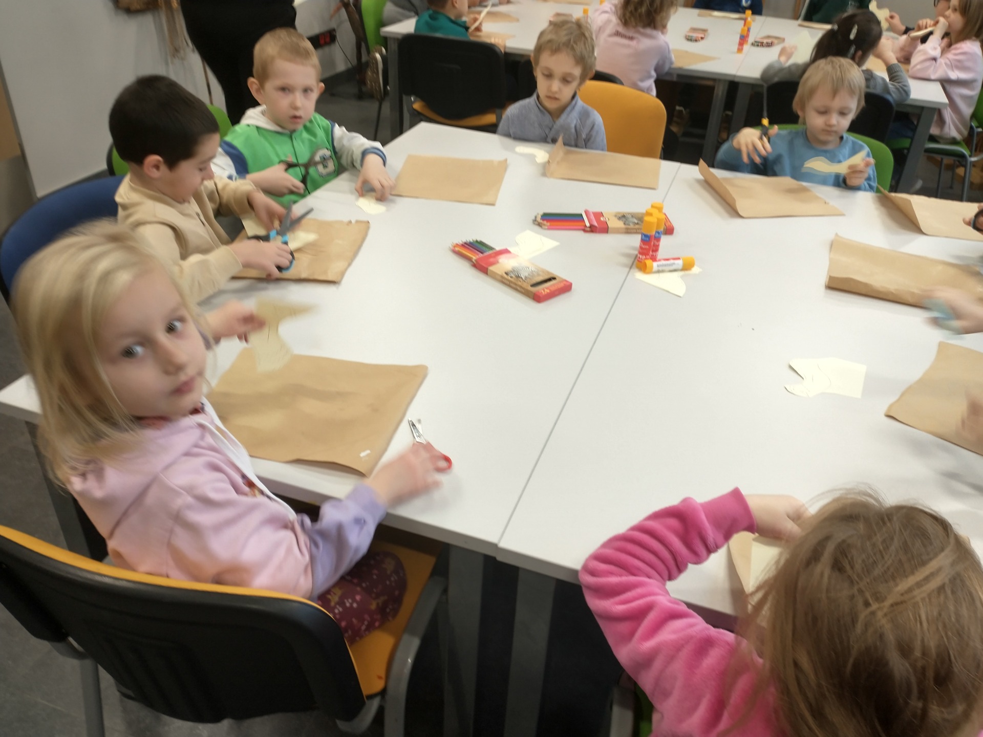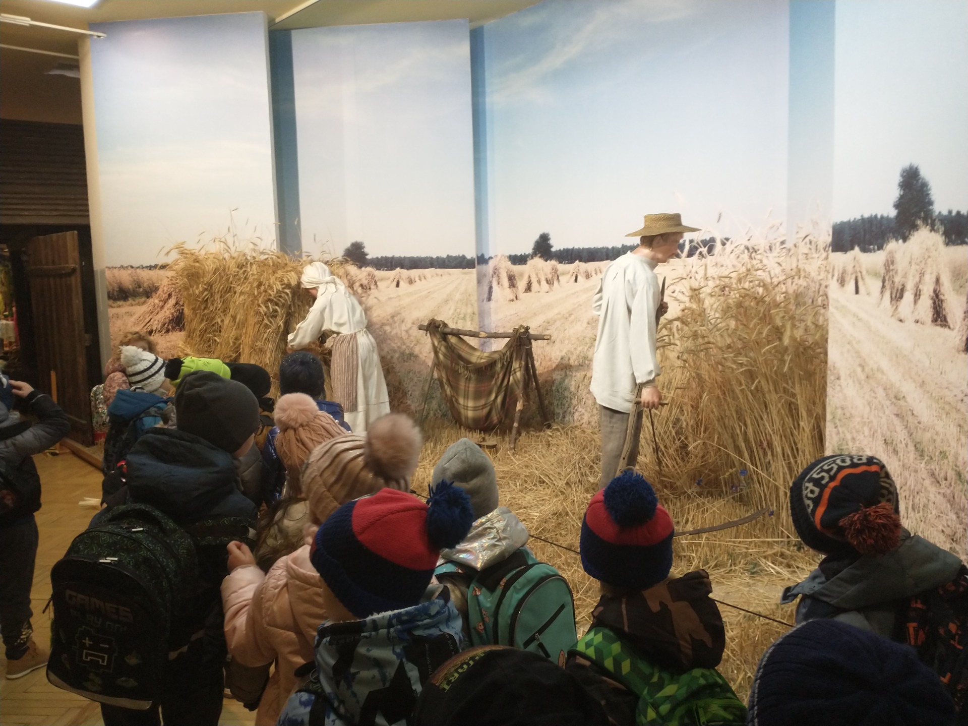 Starsze dzieci uczestniczyły w warsztatach pt. „Dawne zabawy i zabawki”. Dzieci obejrzały fragment wystawy etnograficznej, gdzie zobaczyły, jak wyglądało życie na wsi 100 lat temu i jaką rolę pełniły zabawy, a jaką obowiązki w codziennym życiu dzieci. Przedszkolaki miały okazję wziąć do rąk dawne, drewniane zabawki jarmarczne i poczuć ich magię.