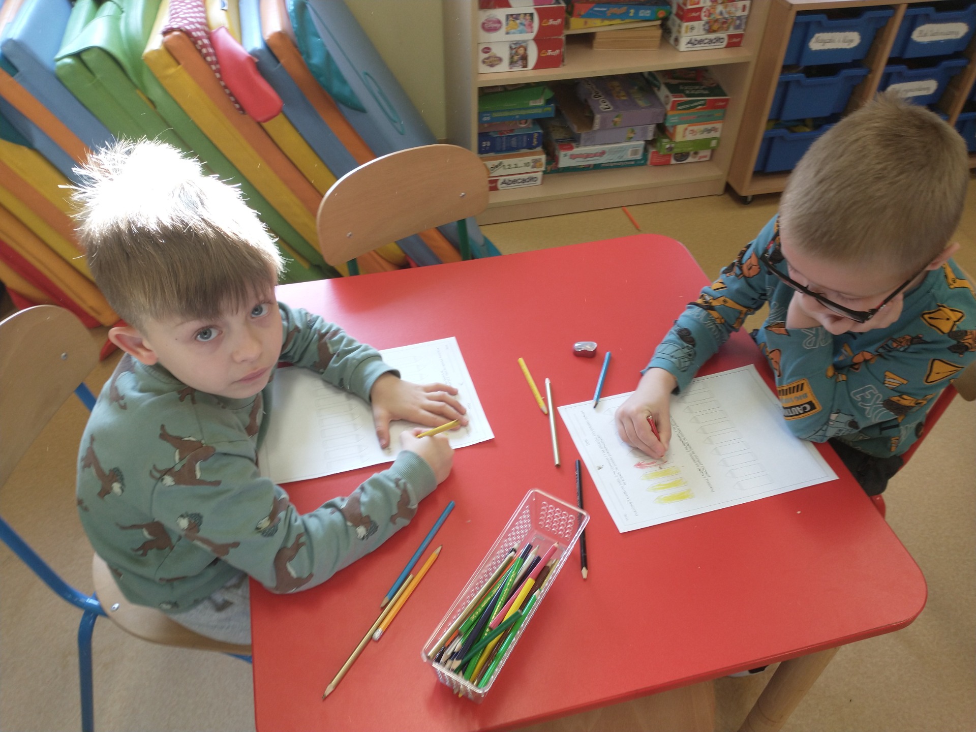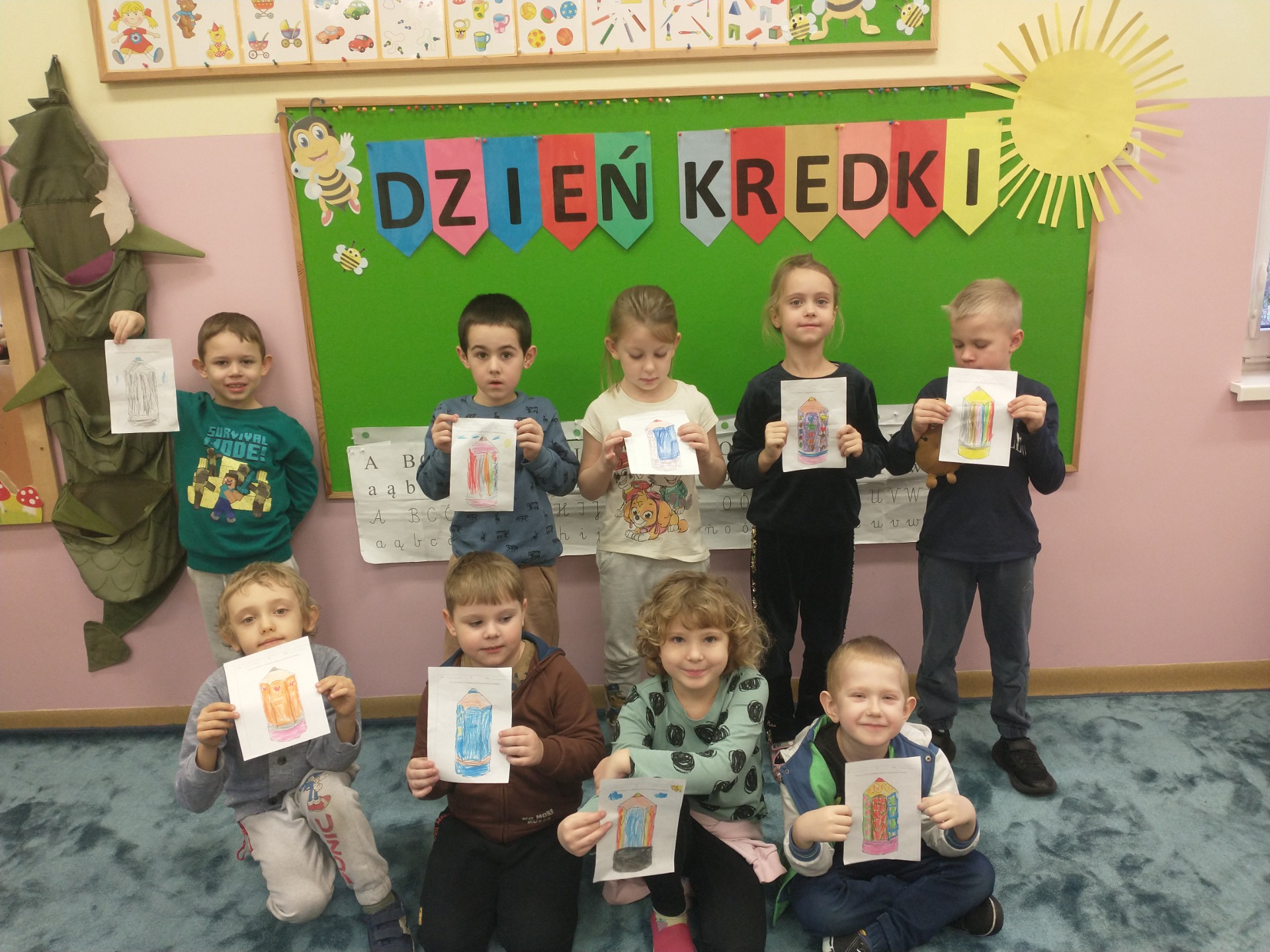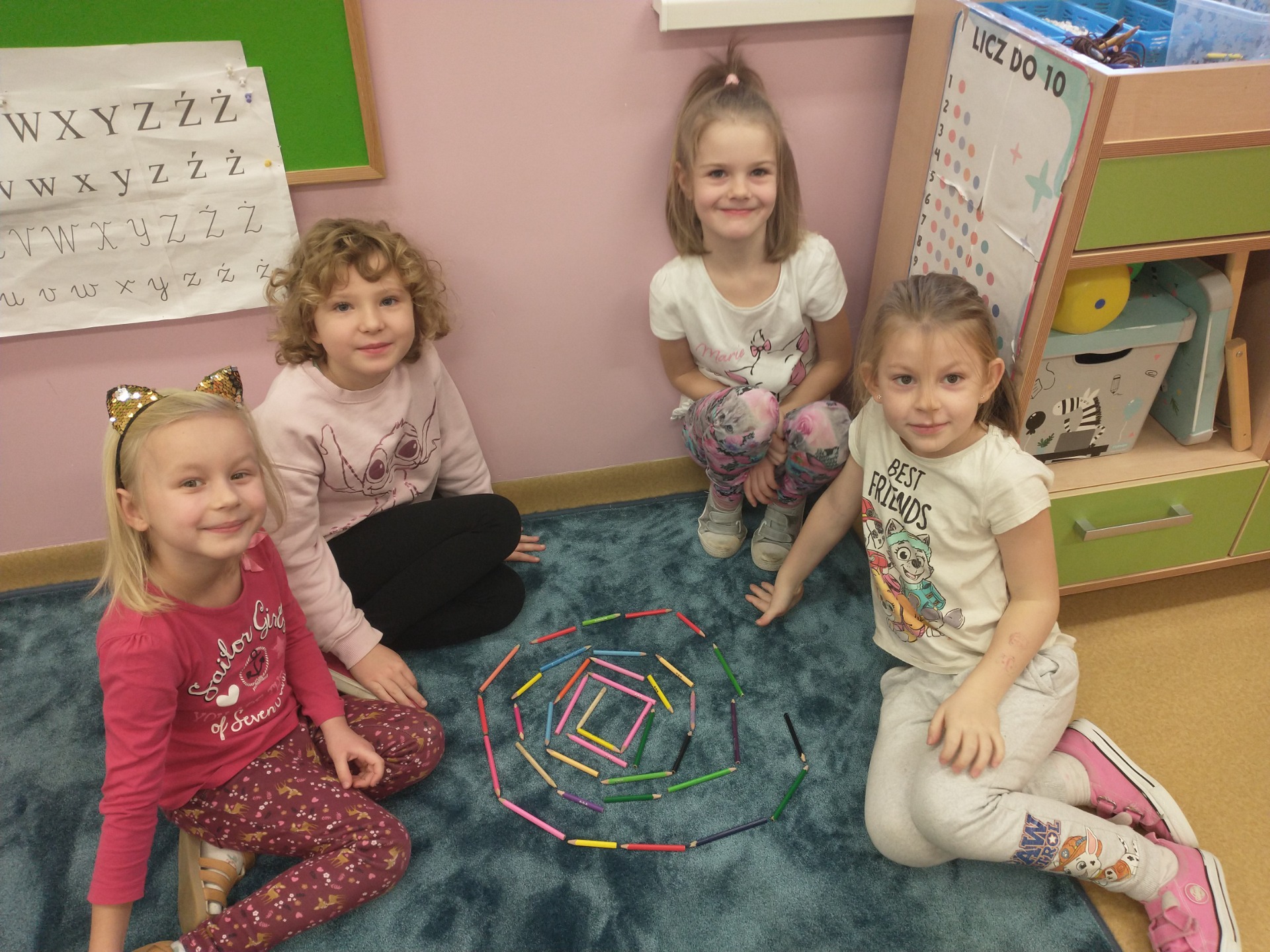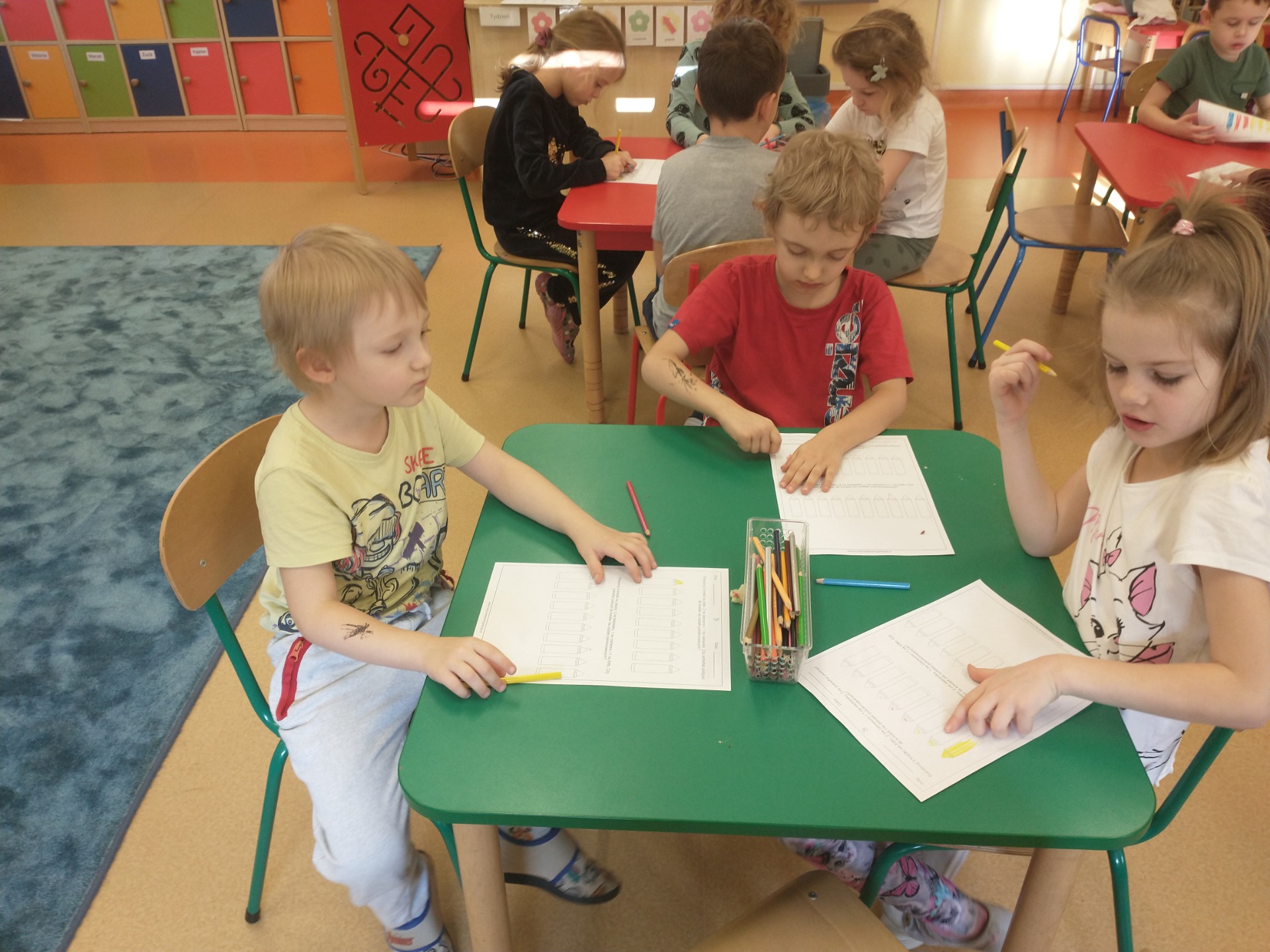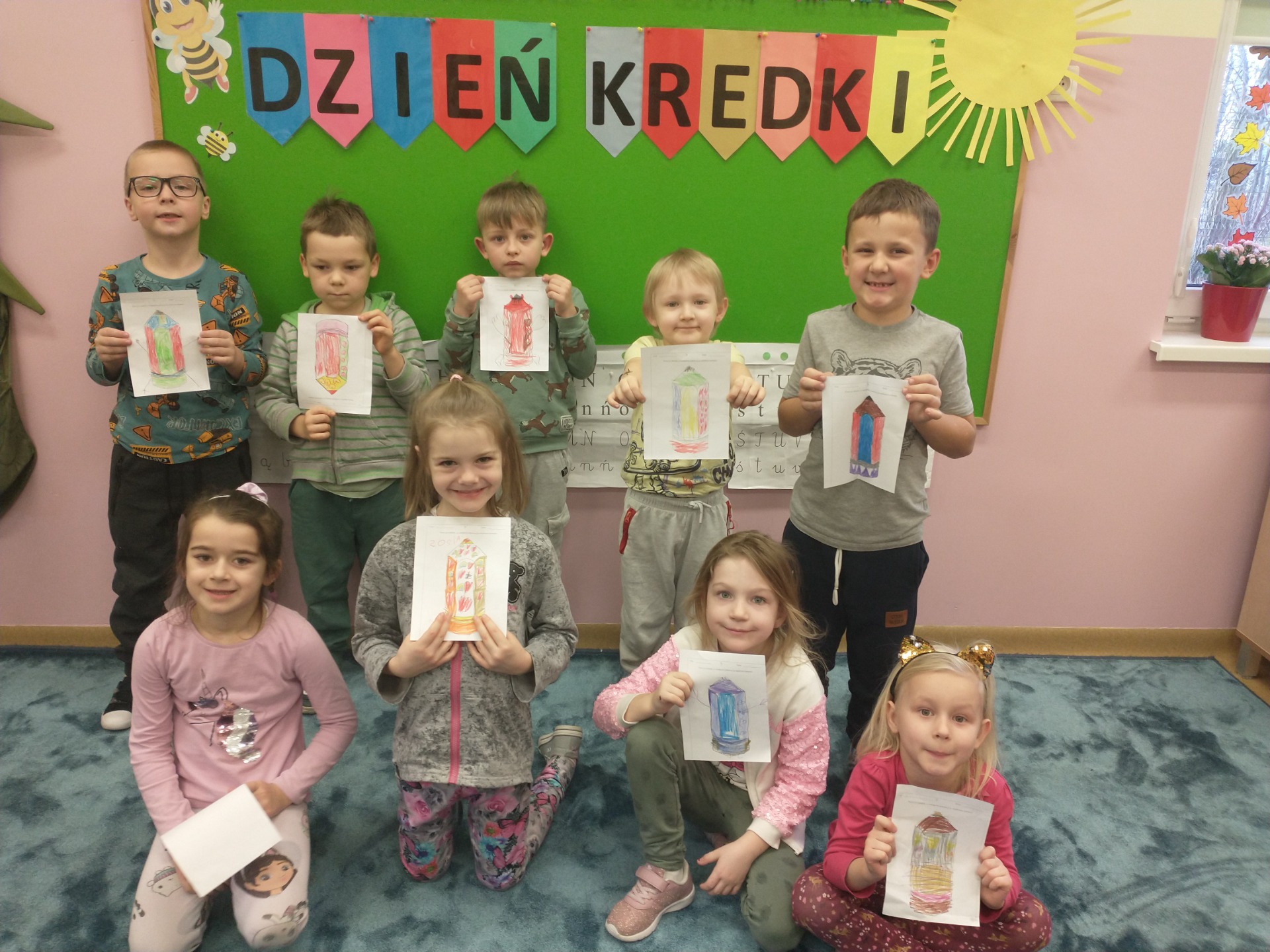 Wycieczka do Muzeum Archeologicznego i Etnograficznego w Łodzi na warsztaty pt. „Dawne zabawy i zabawki” była inspiracją do przeprowadzenia następnego dnia zajęć, których motywem przewodnim było wykorzystanie kredek do różnych zabaw. Dzieci współpracowały przy tworzeniu kredkowych obrazków, motaniu sznurka oraz układaniu kredek według wielkości. Nie zabrakło również zadań matematycznych i plastycznych.