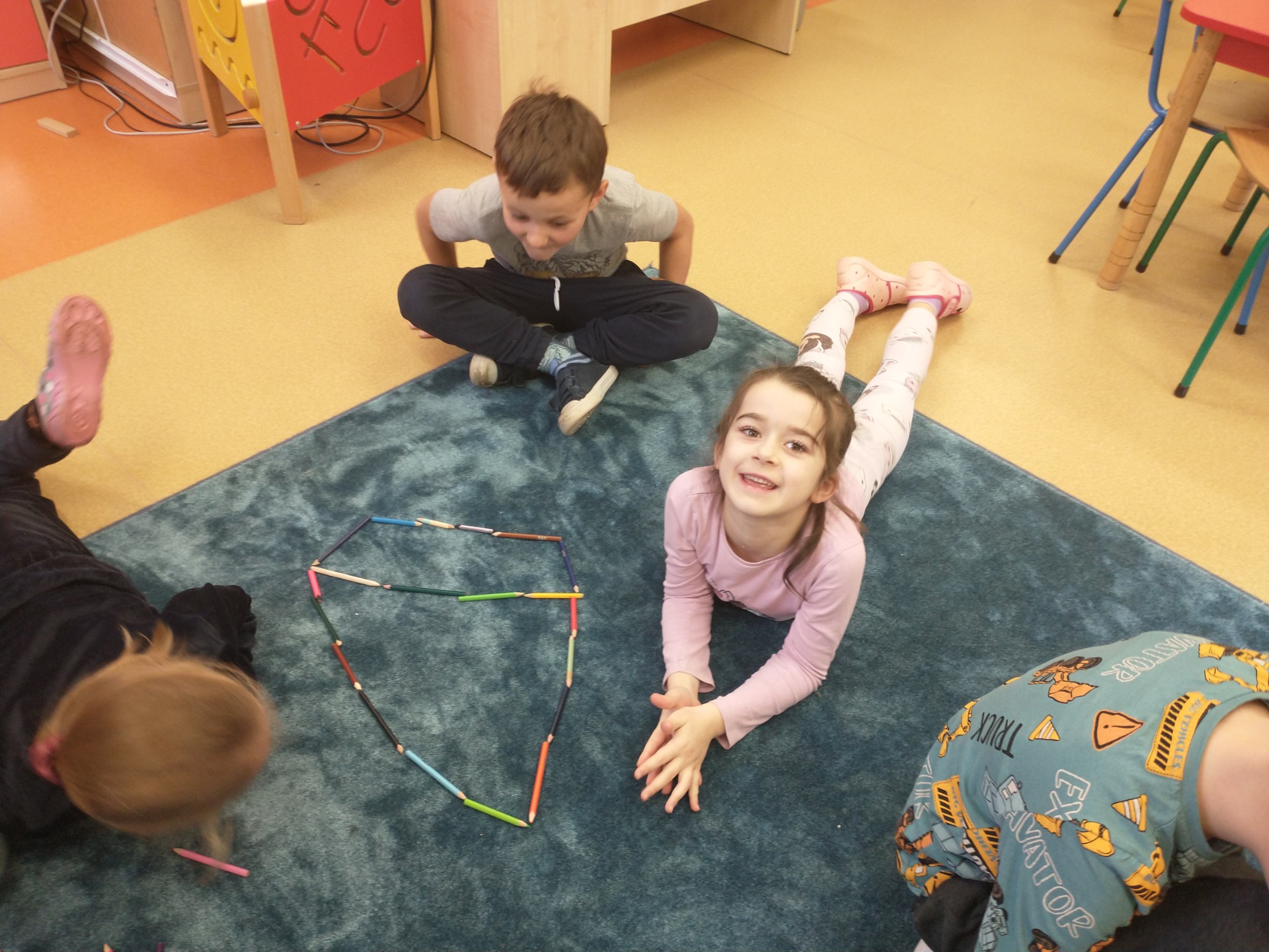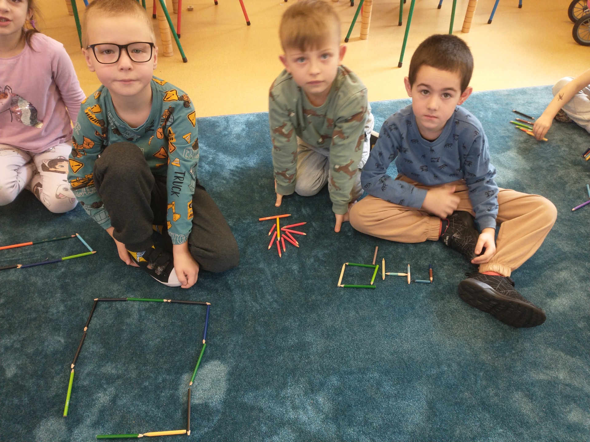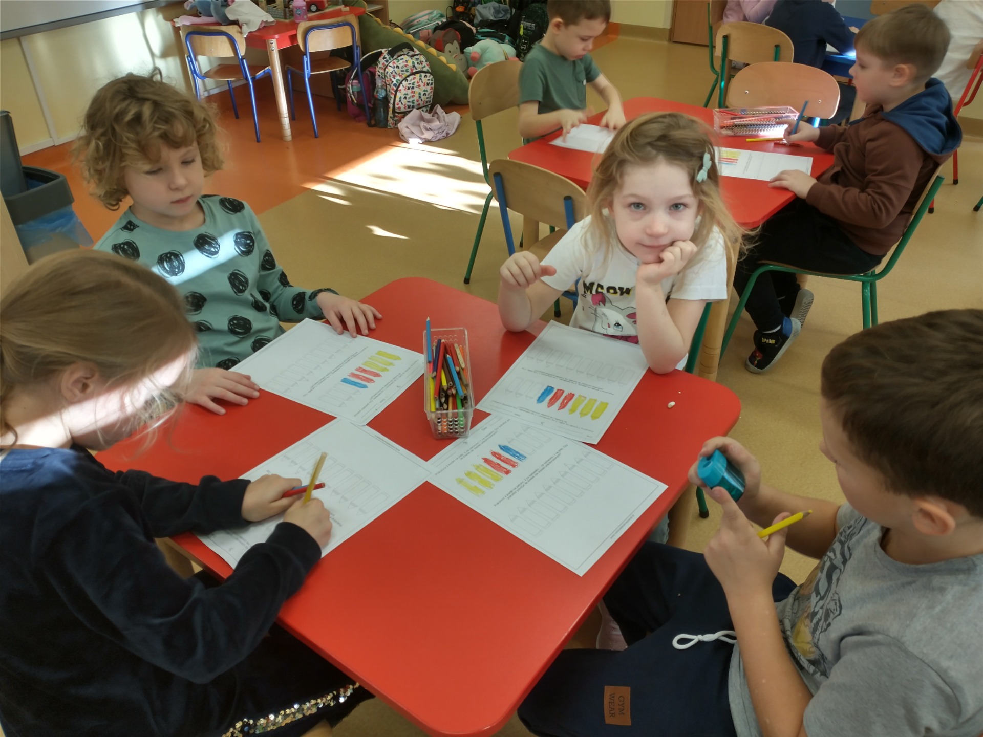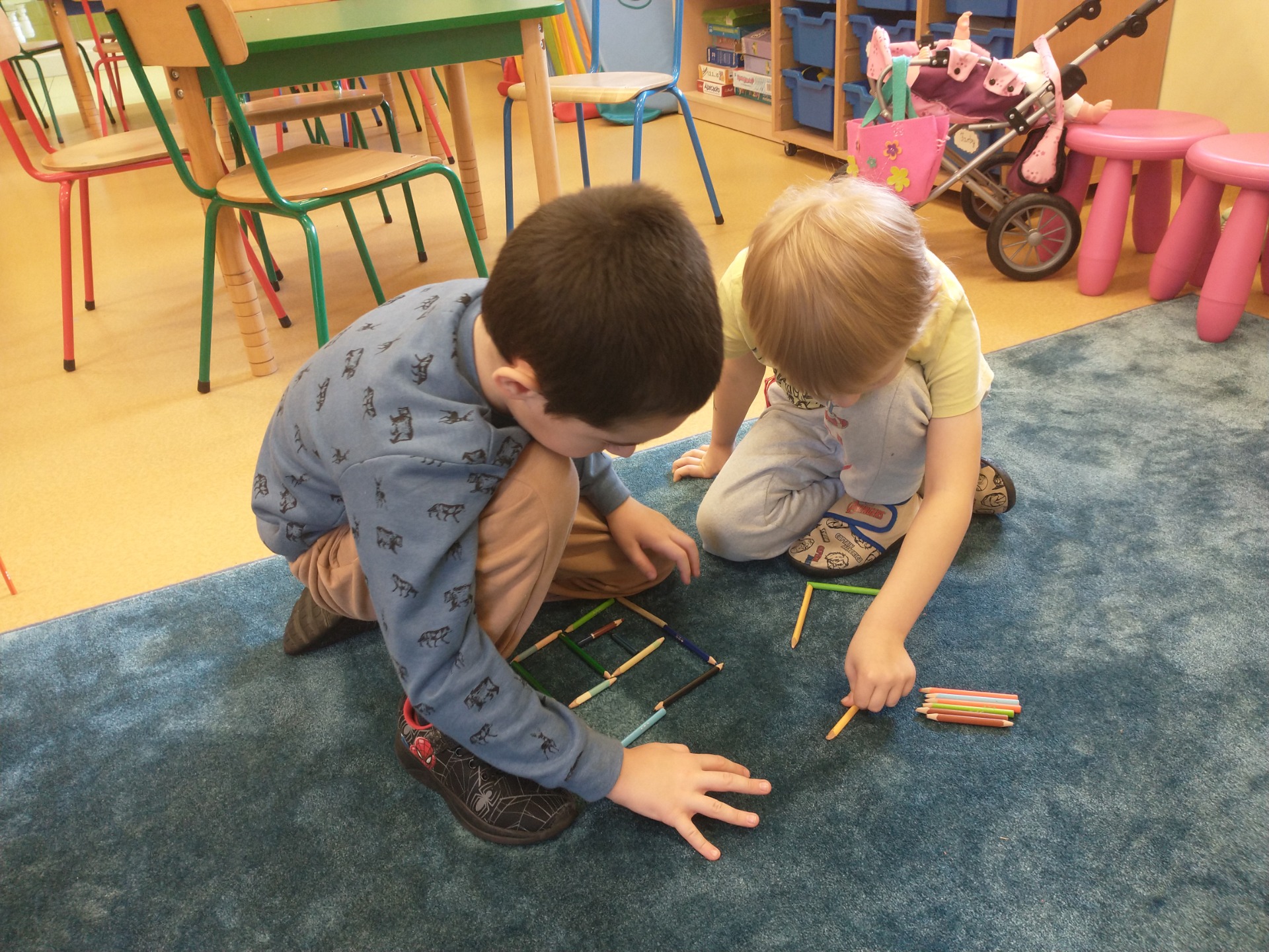 Wycieczka do Muzeum Archeologicznego i Etnograficznego w Łodzi na warsztaty pt. „Dawne zabawy i zabawki” była inspiracją do przeprowadzenia następnego dnia zajęć, których motywem przewodnim było wykorzystanie kredek do różnych zabaw. Dzieci współpracowały przy tworzeniu kredkowych obrazków, motaniu sznurka oraz układaniu kredek według wielkości. Nie zabrakło również zadań matematycznych i plastycznych.
