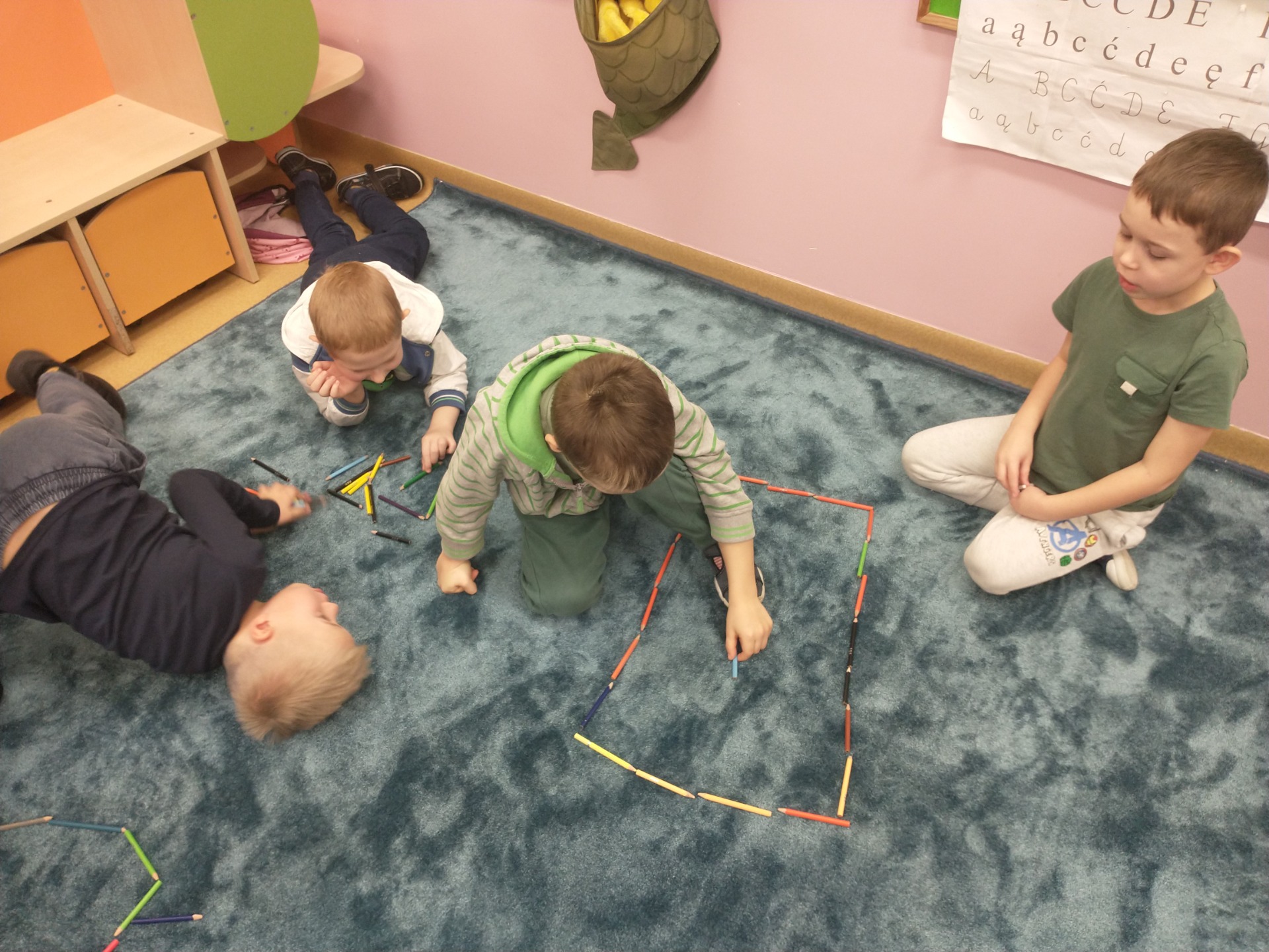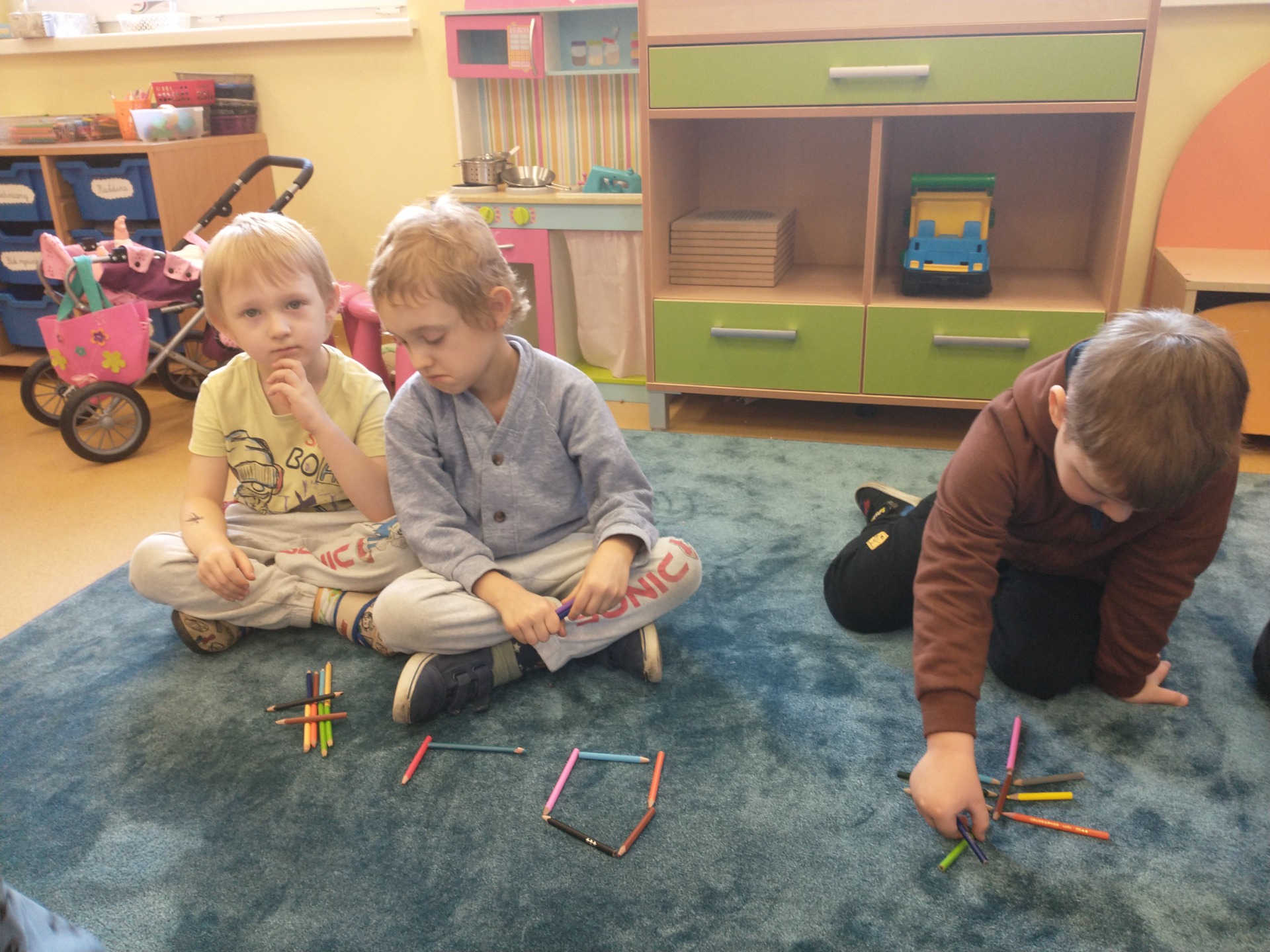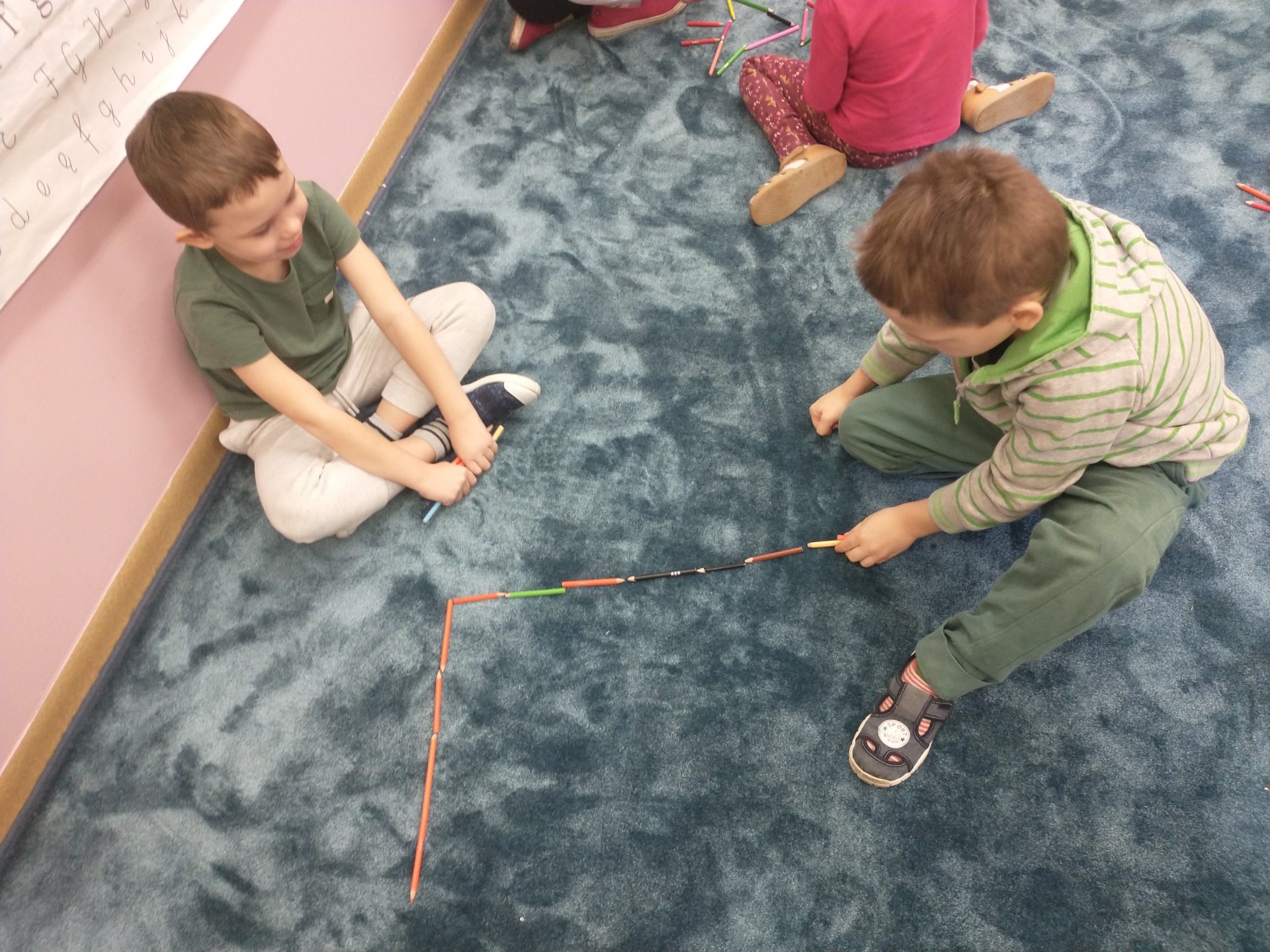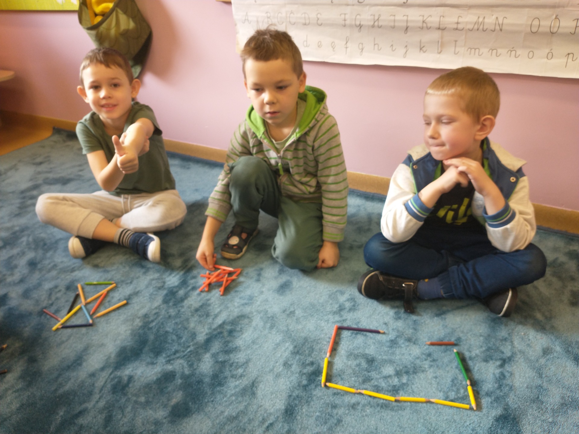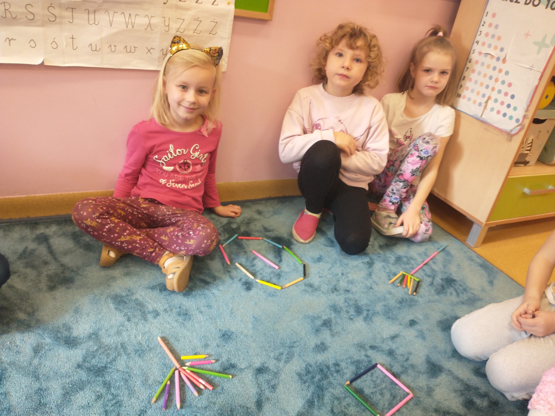 Wycieczka do Muzeum Archeologicznego i Etnograficznego w Łodzi na warsztaty pt. „Dawne zabawy i zabawki” była inspiracją do przeprowadzenia następnego dnia zajęć, których motywem przewodnim było wykorzystanie kredek do różnych zabaw. Dzieci współpracowały przy tworzeniu kredkowych obrazków, motaniu sznurka oraz układaniu kredek według wielkości. Nie zabrakło również zadań matematycznych i plastycznych.