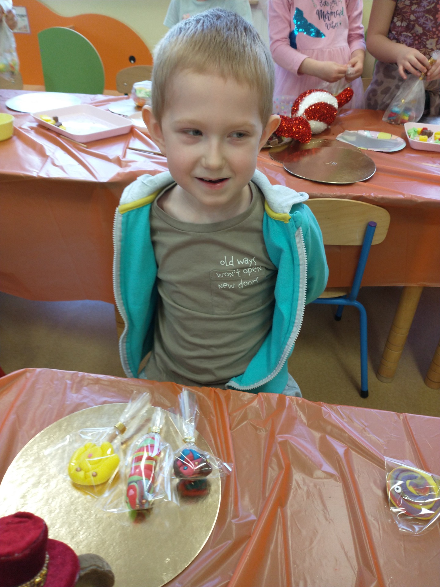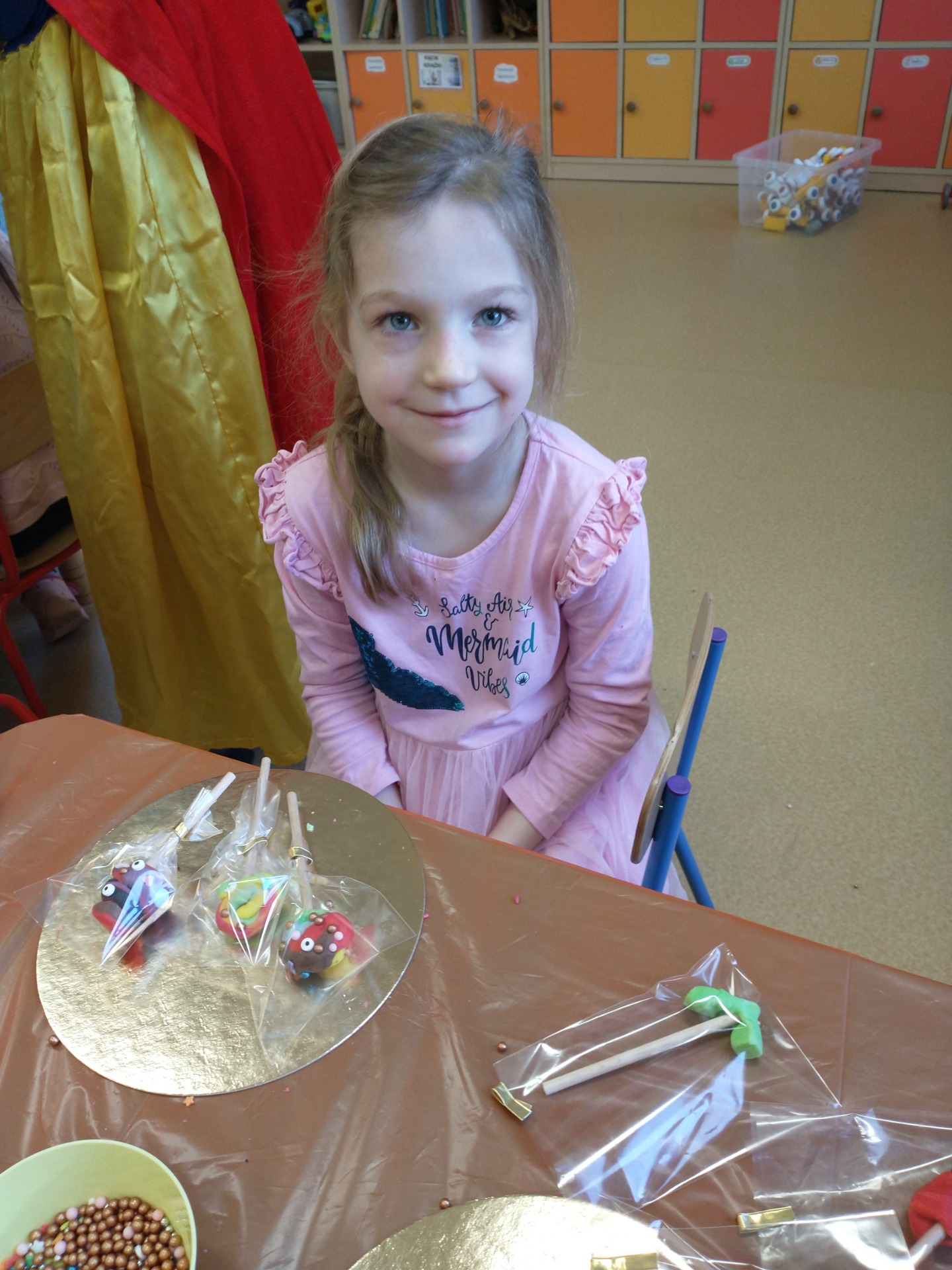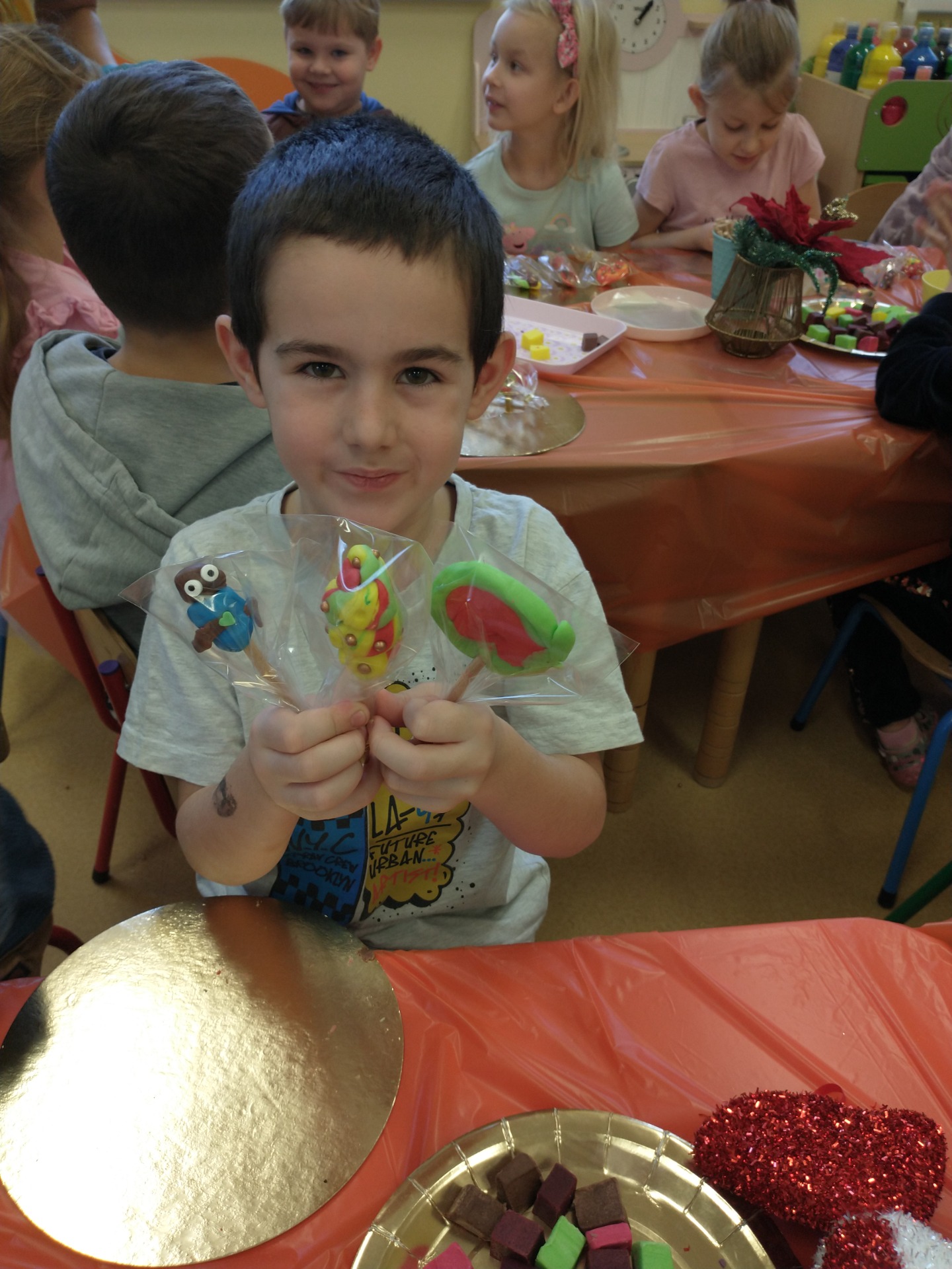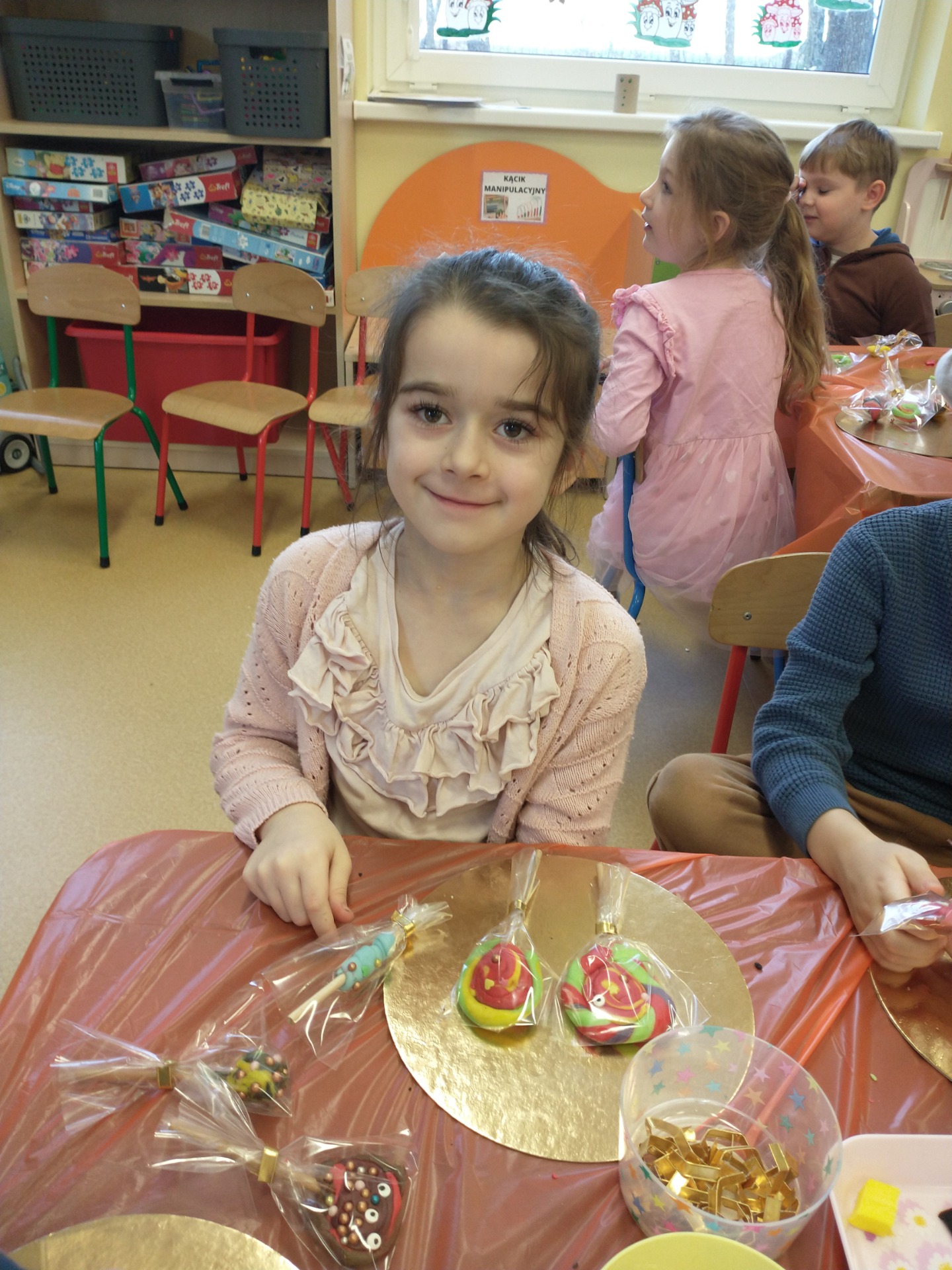 W poniedziałek - 2 grudnia - dzieci uczestniczyły w warsztatach „Lizaki z masy cukrowej”. Wykonywanie kolorowych słodkości sprawiło wiele radości.