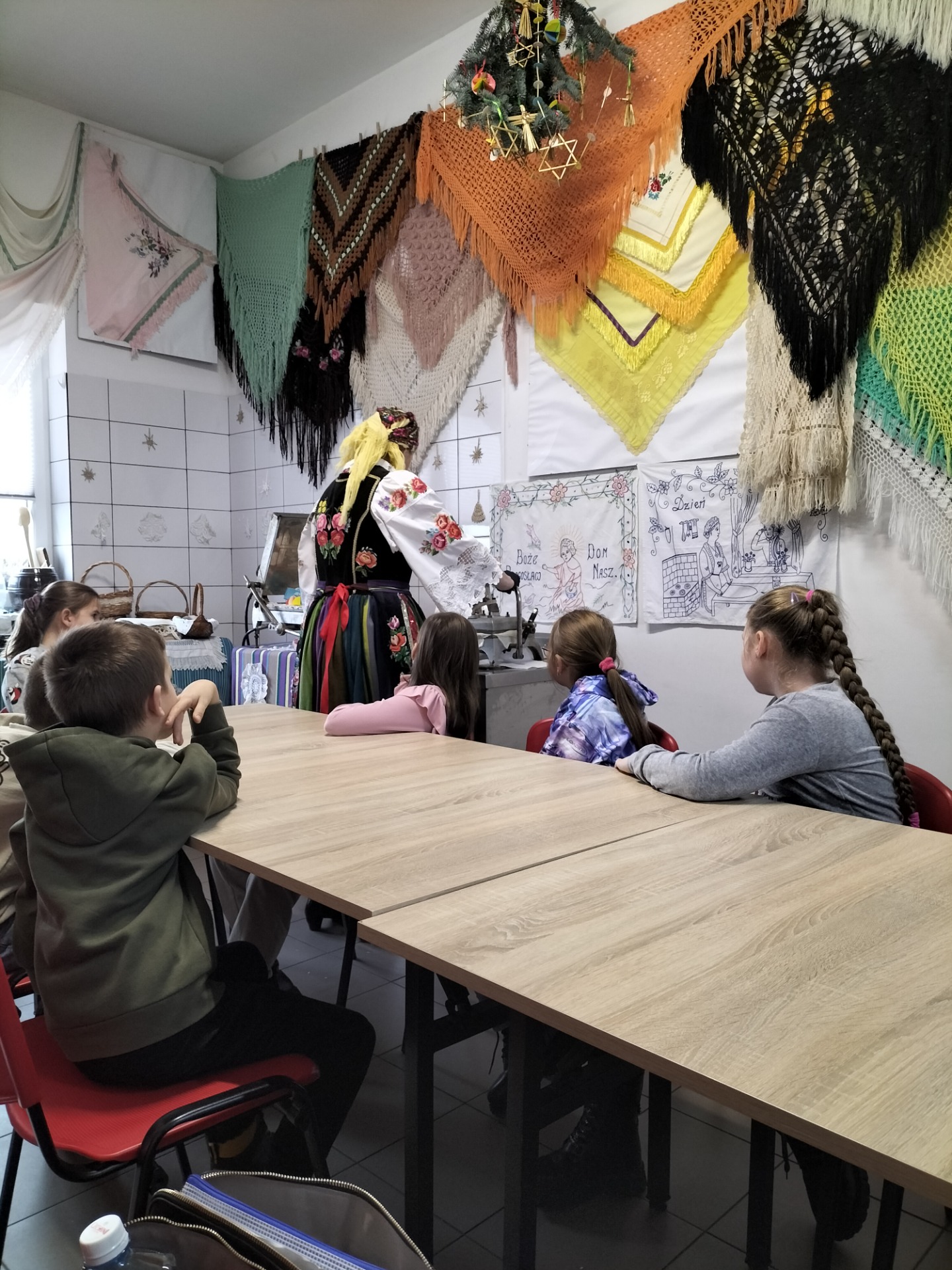 Właściciele przywitali nas w strojach łowickich i zaprosili do środka. Opowiadali o zwyczajach i tradycjach bożonarodzeniowych kultywowanych na ziemi łowickiej,
