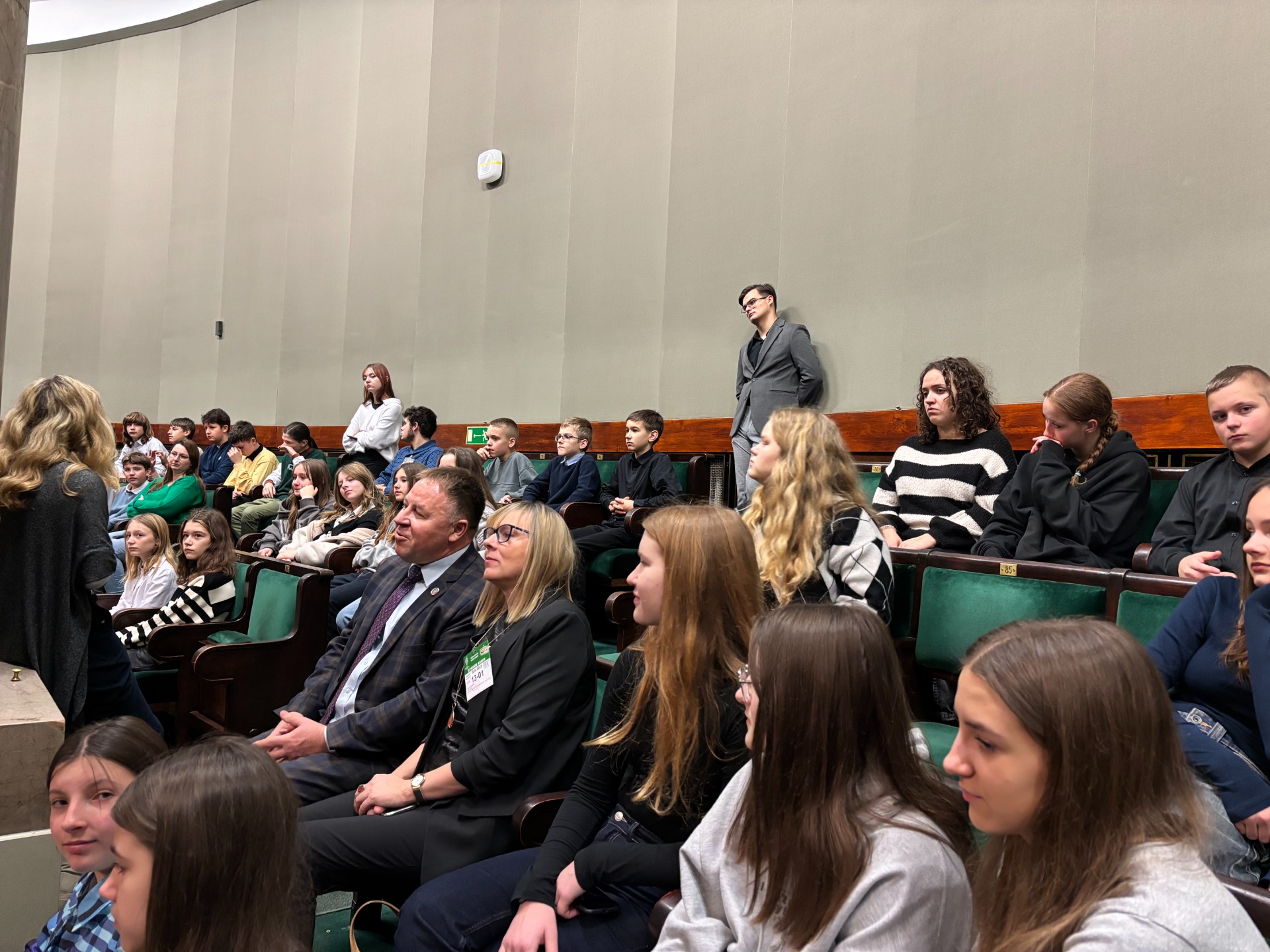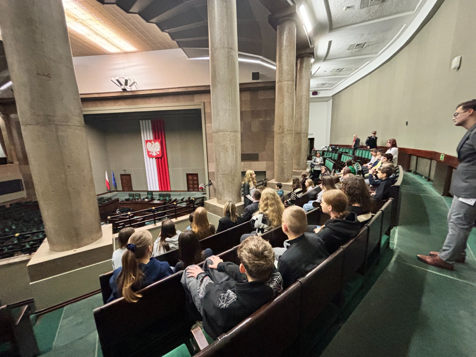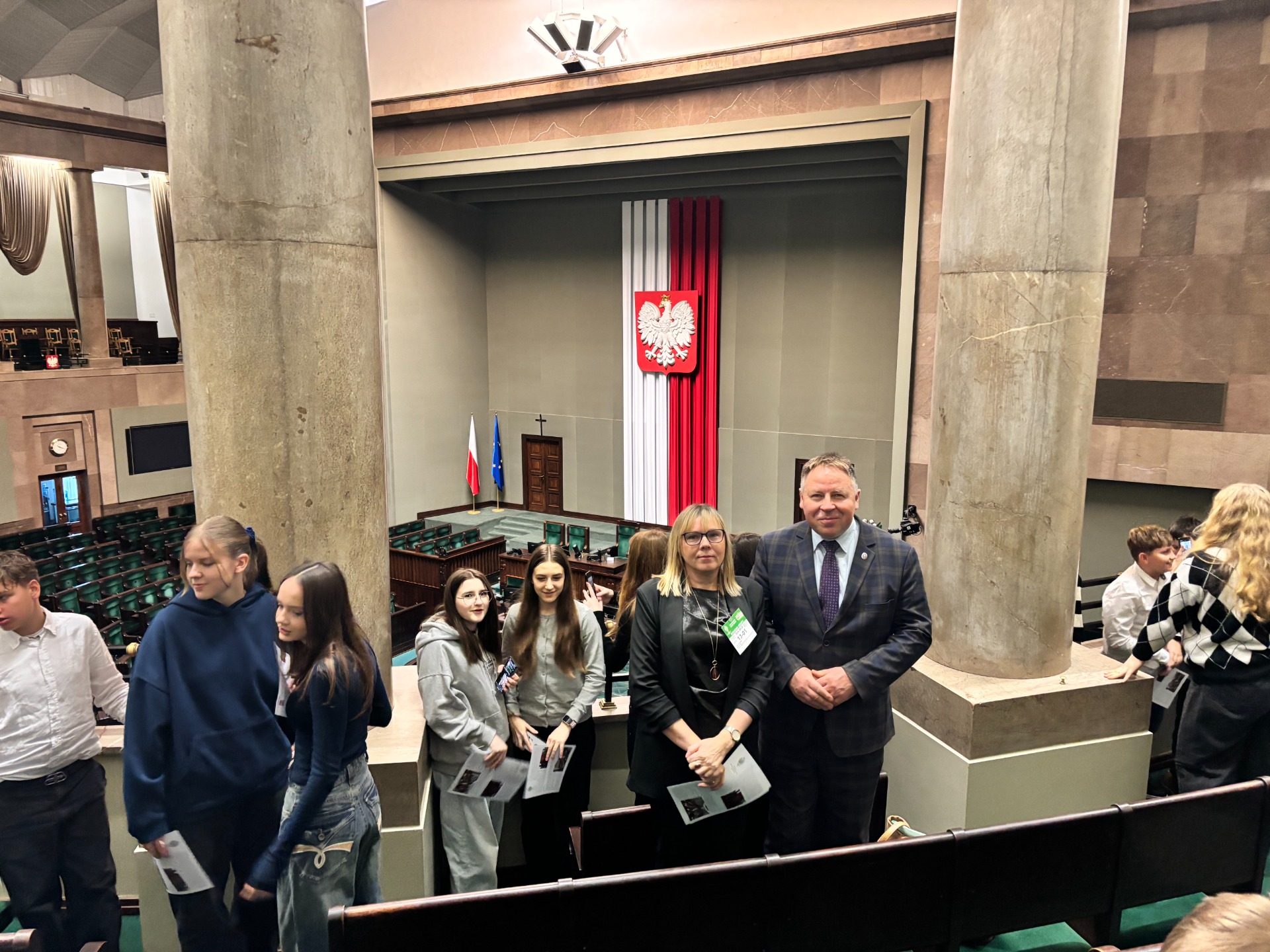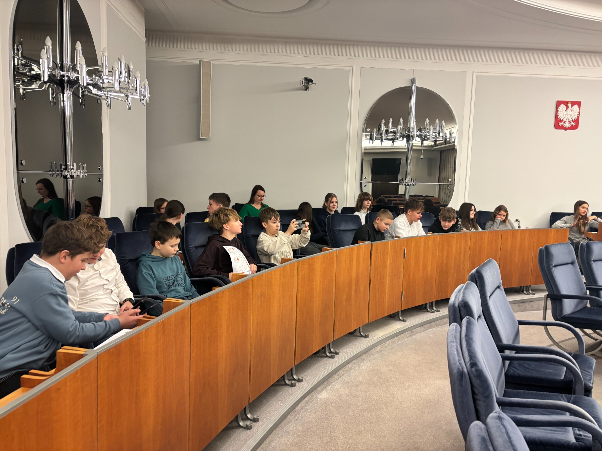 Po procedurach, związanych z zachowaniem zasad bezpieczeństwa, uczniowie wraz z Panem senatorem oraz przewodnikami odwiedzili pomieszczenia, w których pracują parlamentarzyści – przebywali na w salach plenarnych Sejmu i Senatu. Mieli także okazję zapoznać się z historią i kolejnymi etapami kształtowania się władzy parlamentarnej w Polsce oraz zadaniami osób pracujących w gmachu przy ul. Wiejskiej w Warszawie.