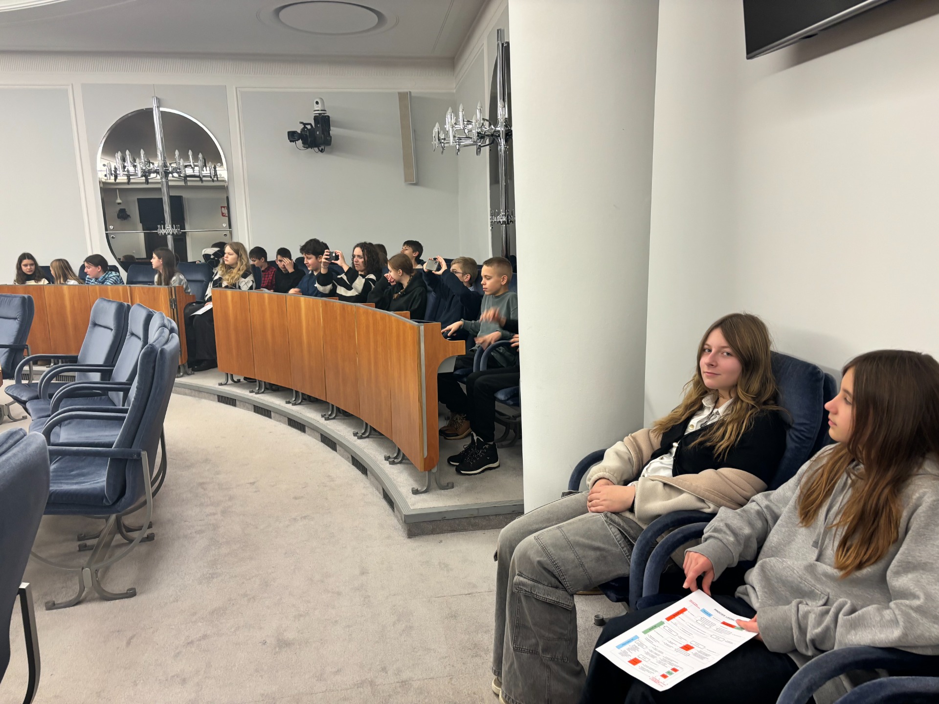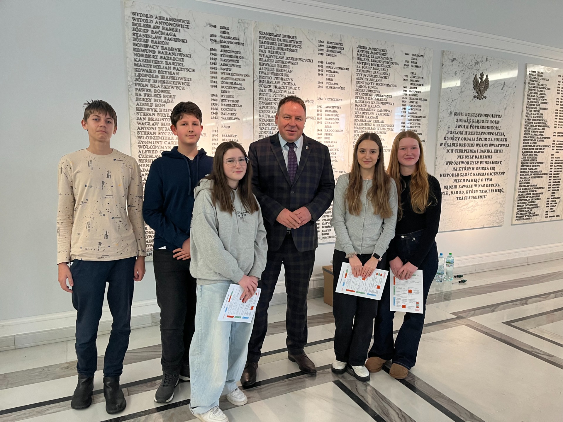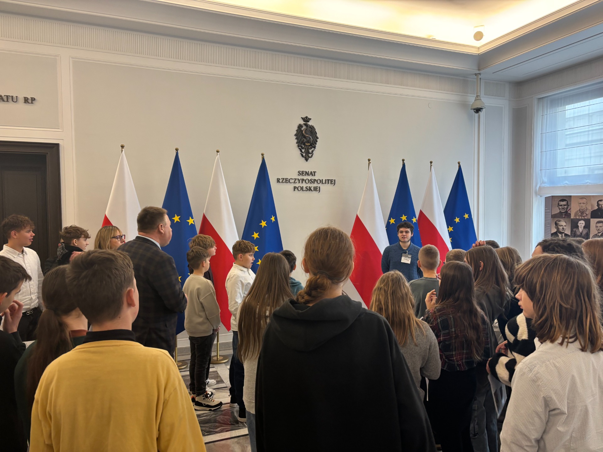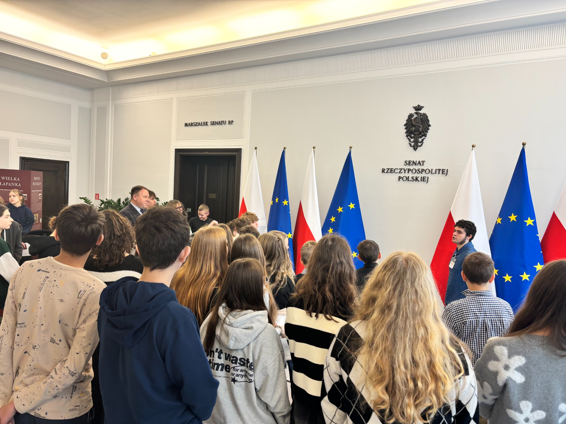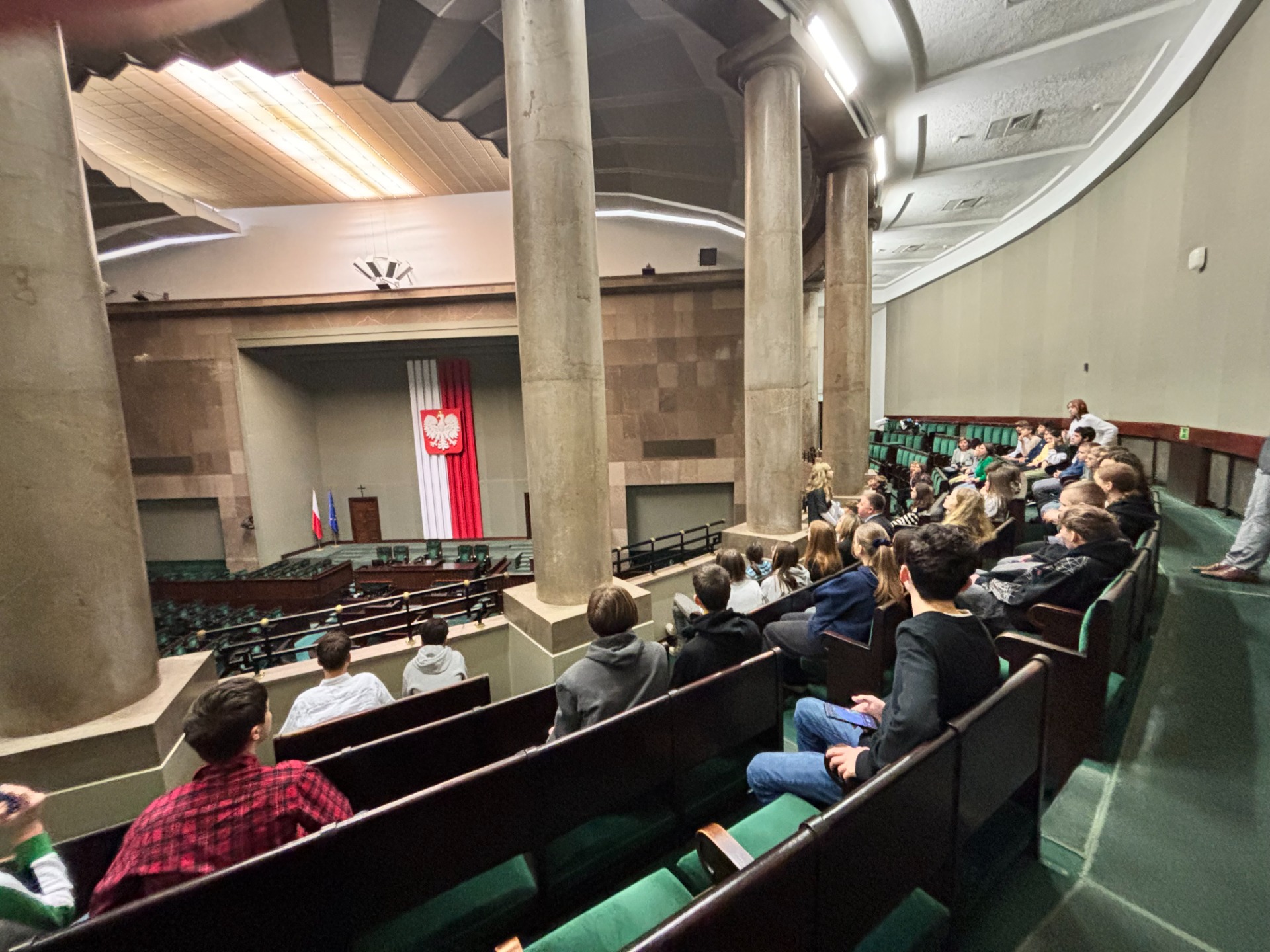 Po procedurach, związanych z zachowaniem zasad bezpieczeństwa, uczniowie wraz z Panem senatorem oraz przewodnikami odwiedzili pomieszczenia, w których pracują parlamentarzyści – przebywali na w salach plenarnych Sejmu i Senatu. Mieli także okazję zapoznać się z historią i kolejnymi etapami kształtowania się władzy parlamentarnej w Polsce oraz zadaniami osób pracujących w gmachu przy ul. Wiejskiej w Warszawie.