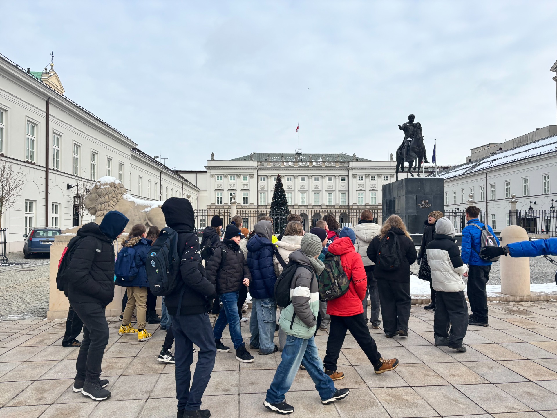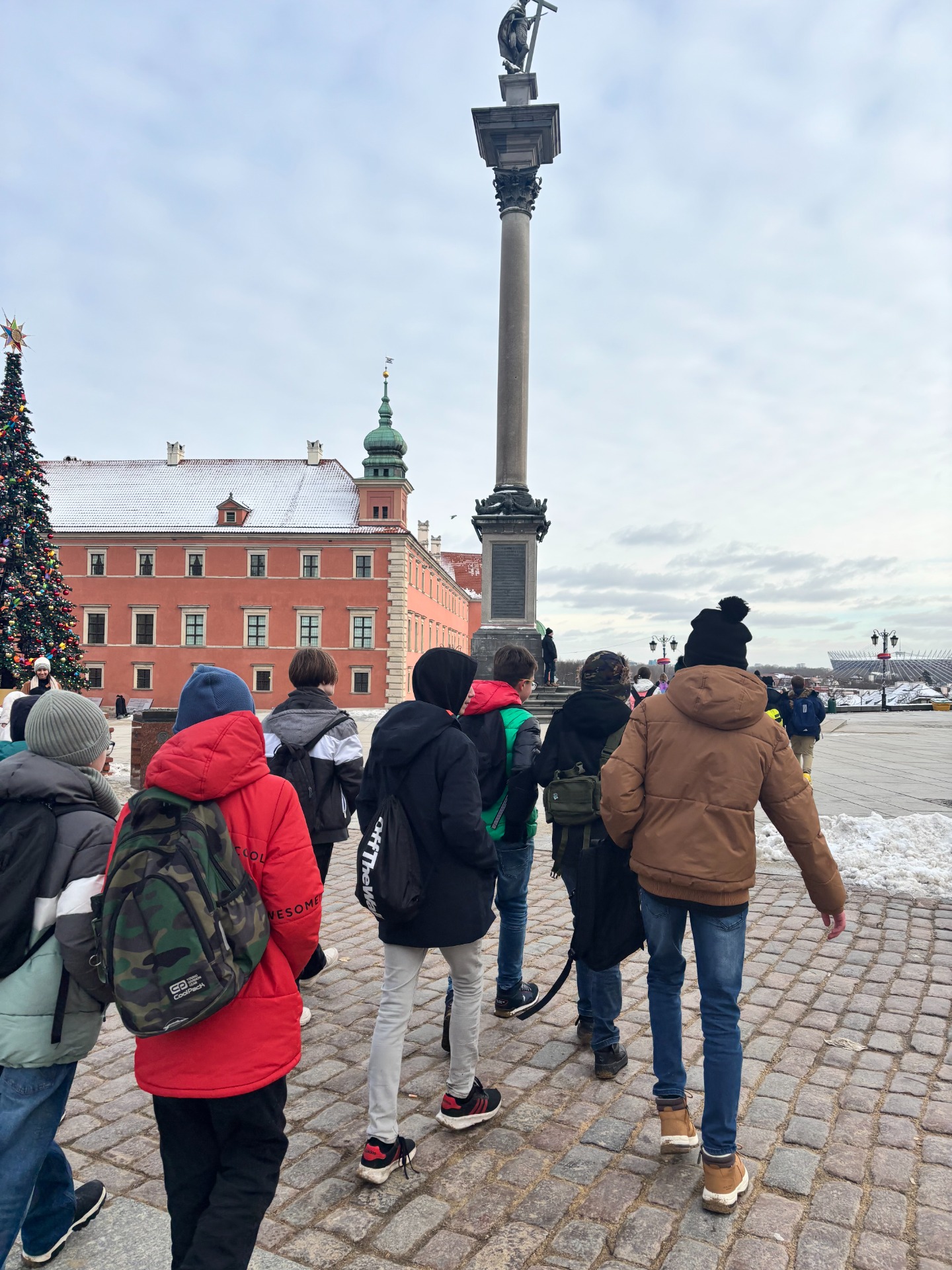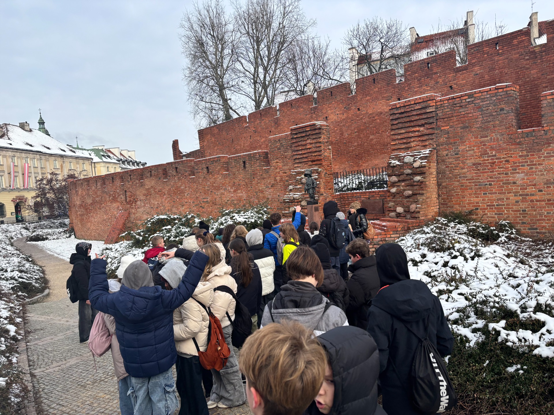 Następnie uczniowie udali się na Stare Miasto, aby podczas spaceru poznać historię stolicy, obejrzeć zabytki centrum miasta m.in. Zamek Królewski, zabytkowe kamienice, kolumnę Zygmunta III Wazy, Pałac Prezydencki.