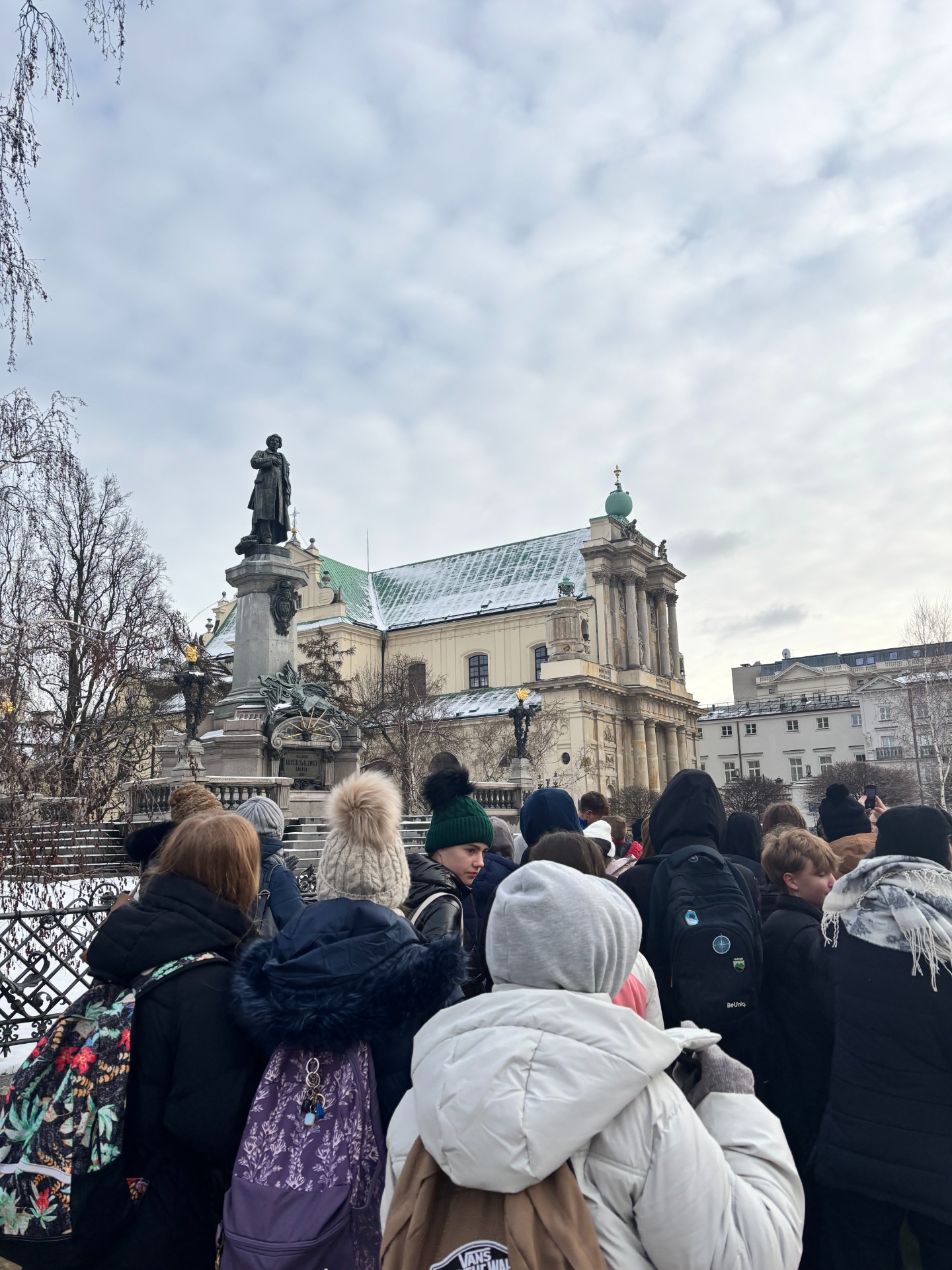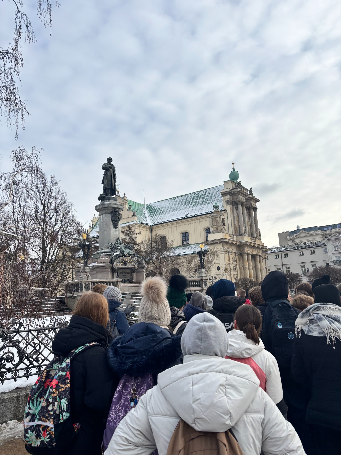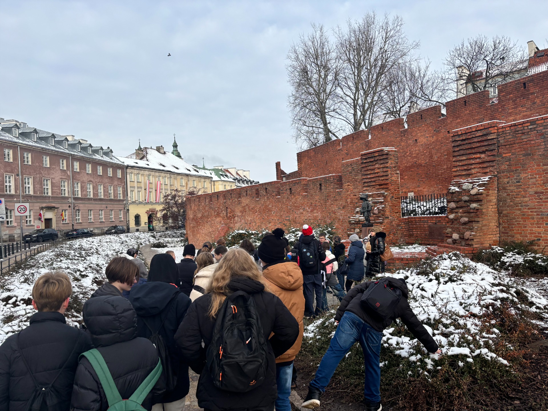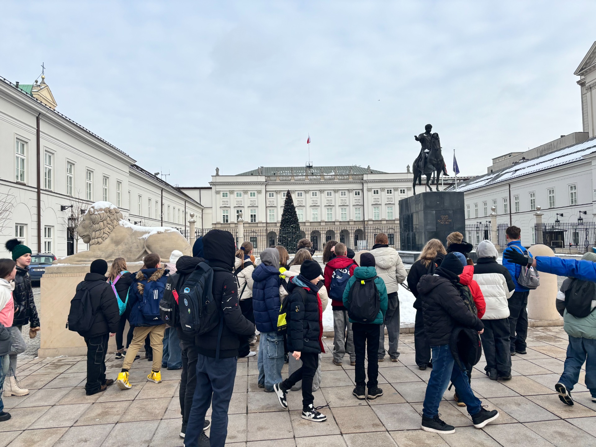 Następnie uczniowie udali się na Stare Miasto, aby podczas spaceru poznać historię stolicy, obejrzeć zabytki centrum miasta m.in. Zamek Królewski, zabytkowe kamienice, kolumnę Zygmunta III Wazy, Pałac Prezydencki.
