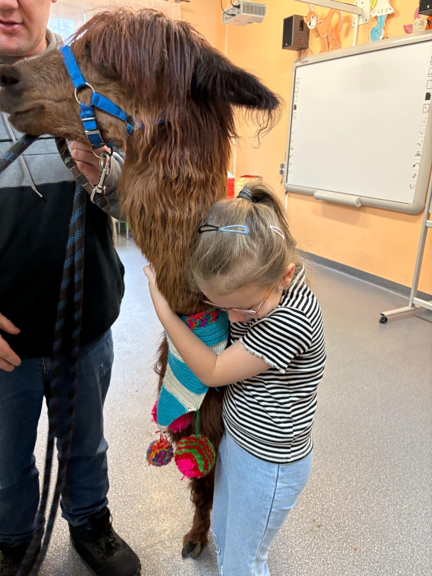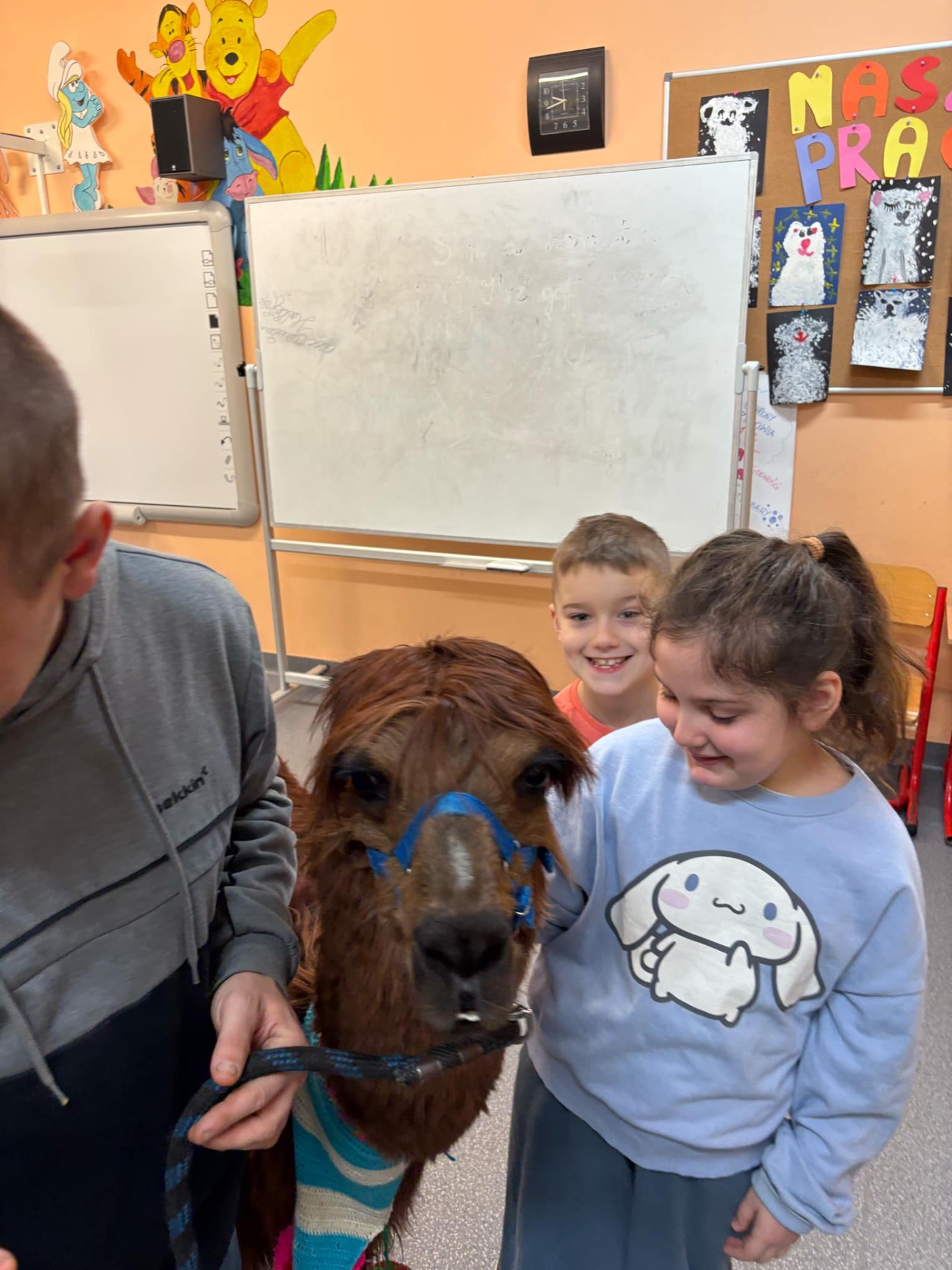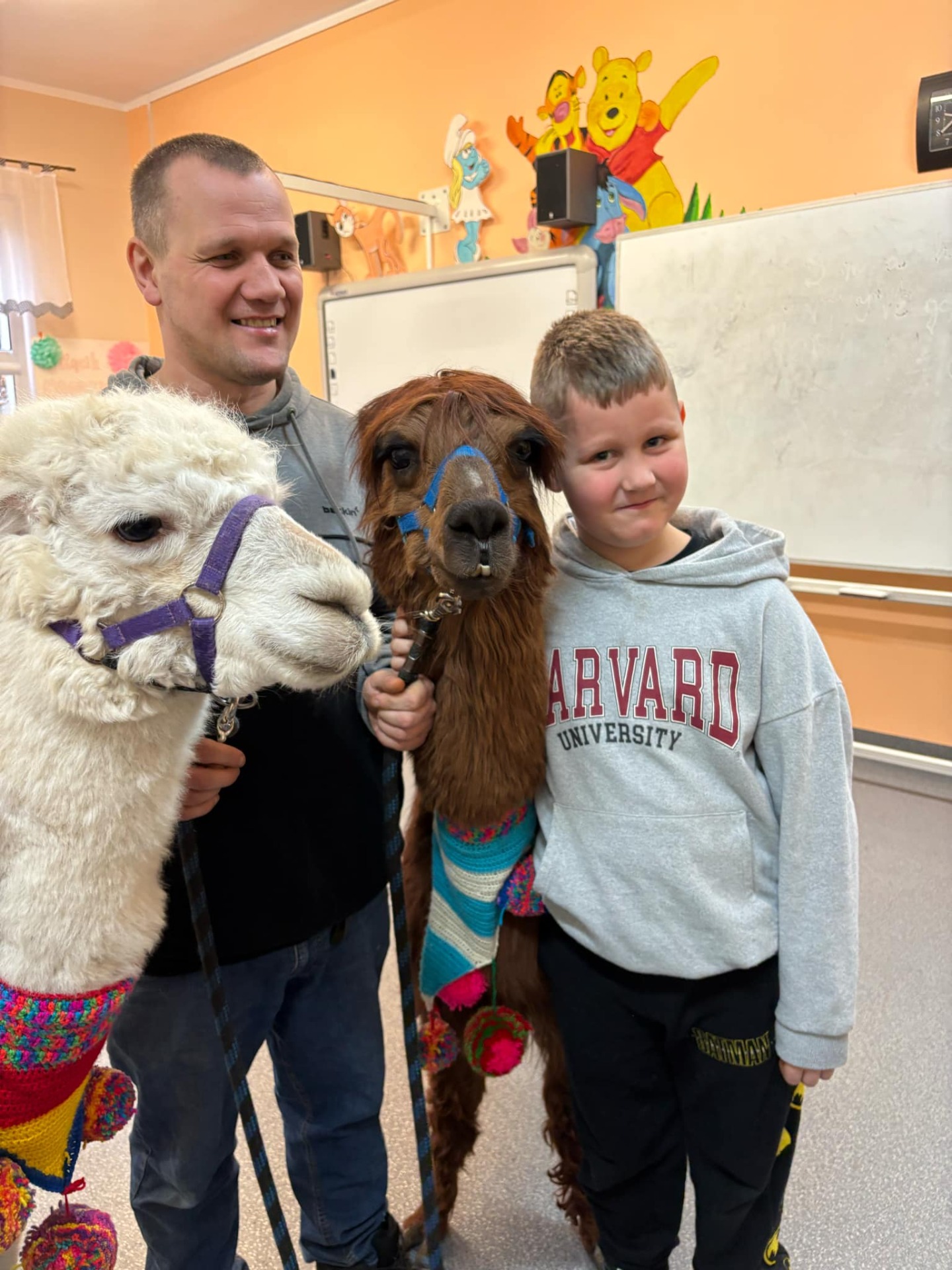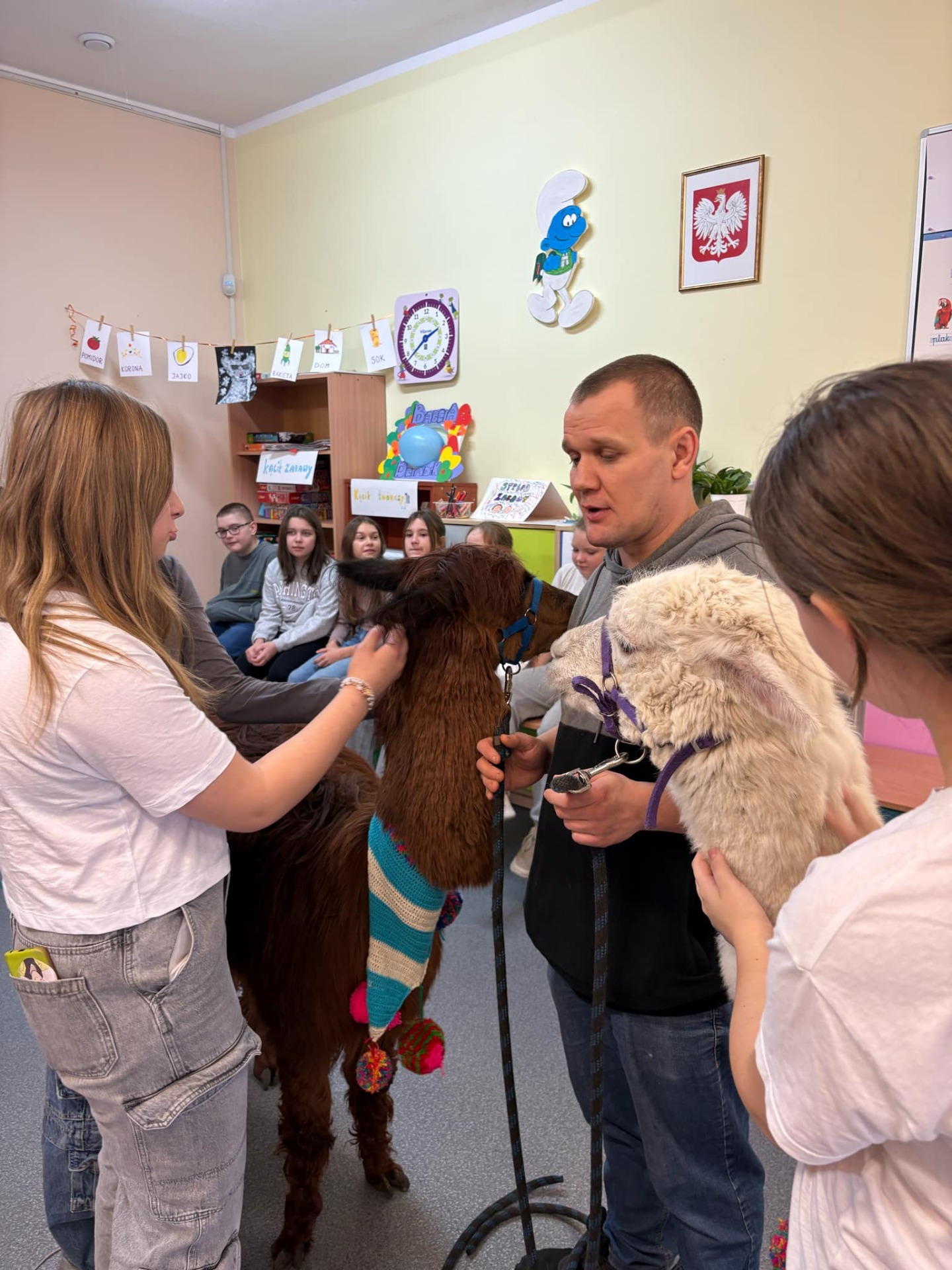 Czy alpaki można spotkać w lesie? Skąd pochodzą? Czy dużo jedzą? Jak długo żyją? Czego się boją? Te i inne pytania mogły zadać dzieci z klas 1-3 oraz z klasy 5 na warsztatach z alpakami. Okazało się, że Kropek i Kamiś to niezwykle przyjazne zwierzęta. Cierpliwie pozwalały się przytulać oraz karmić naszym uczniom. Od właściciela i instruktora Alpaki Cudaki uczniowie dowiedzieli się, że są one wykorzystywane w terapii chorych dzieci. Kontakt z tymi niezwykłymi zwierzętami pozwala przeżywać emocje, jakie trudno wyzwolić poprzez rozmowę. Dotykanie, głaskanie, wyprowadzanie na spacer tych pięknych stworzeń daje poczucie ogromnego relaksu. To było bardzo miłe i pouczające spotkanie!