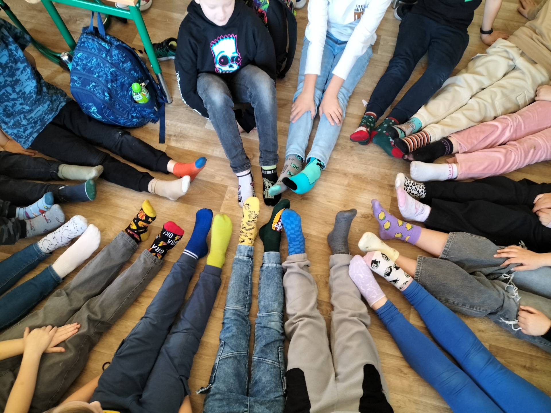 Jako wyraz solidarności wszyscy uczniowie, a także nauczyciele założyli śmieszne, kolorowe skarpetki „nie do pary”. W czasie zajęć dzieci rozmawiały na temat różnorodności, wyjątkowości, integracji oraz wsparcia, jakiego potrzebują ludzie chorzy. Dzieci z klas 1-3 wykonały również zakładki do książek o tej tematyce z hasłami: ,,Szanuję”, ,,Doceniam”.