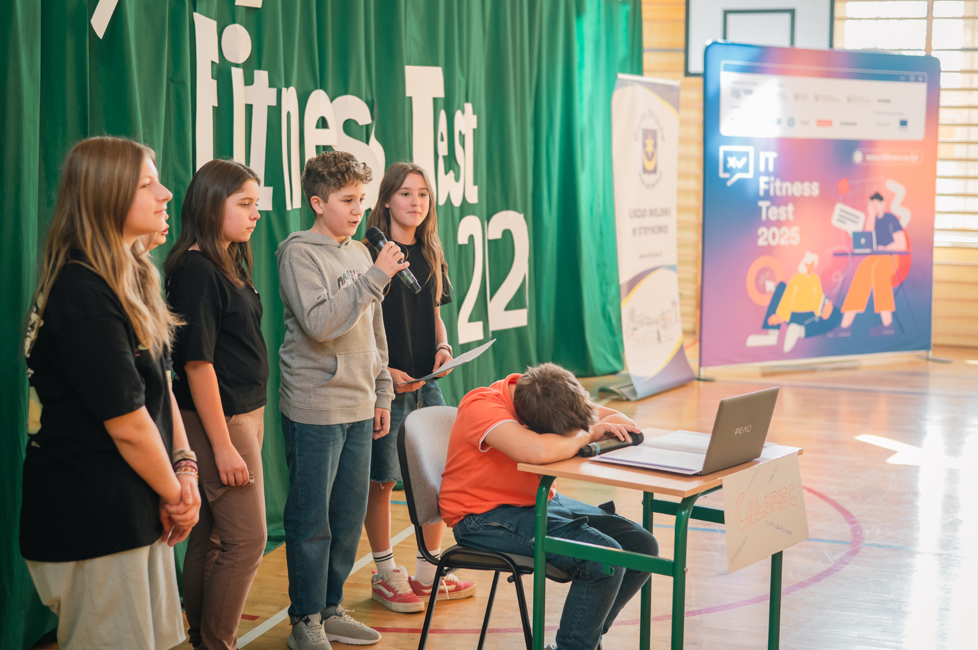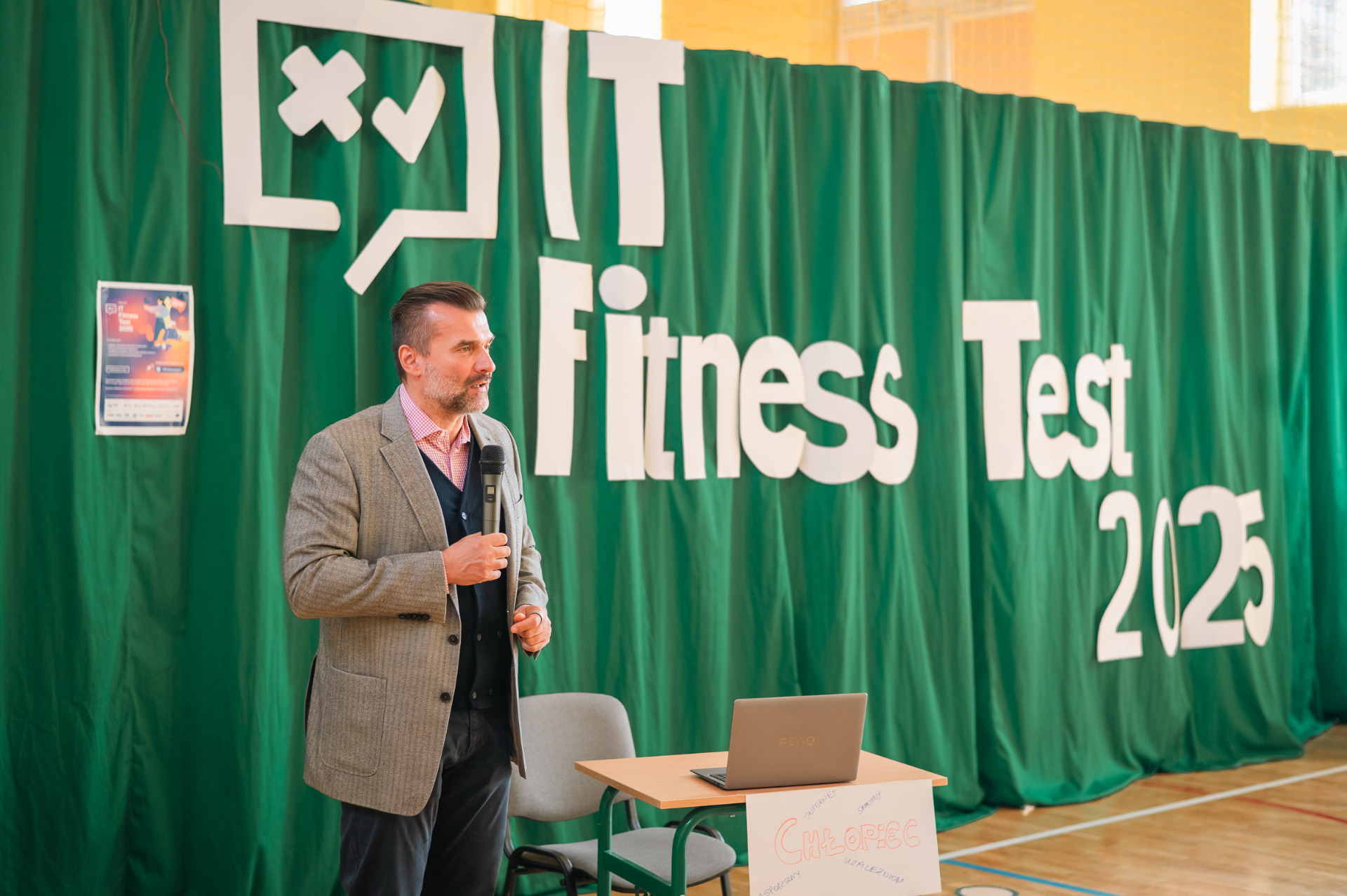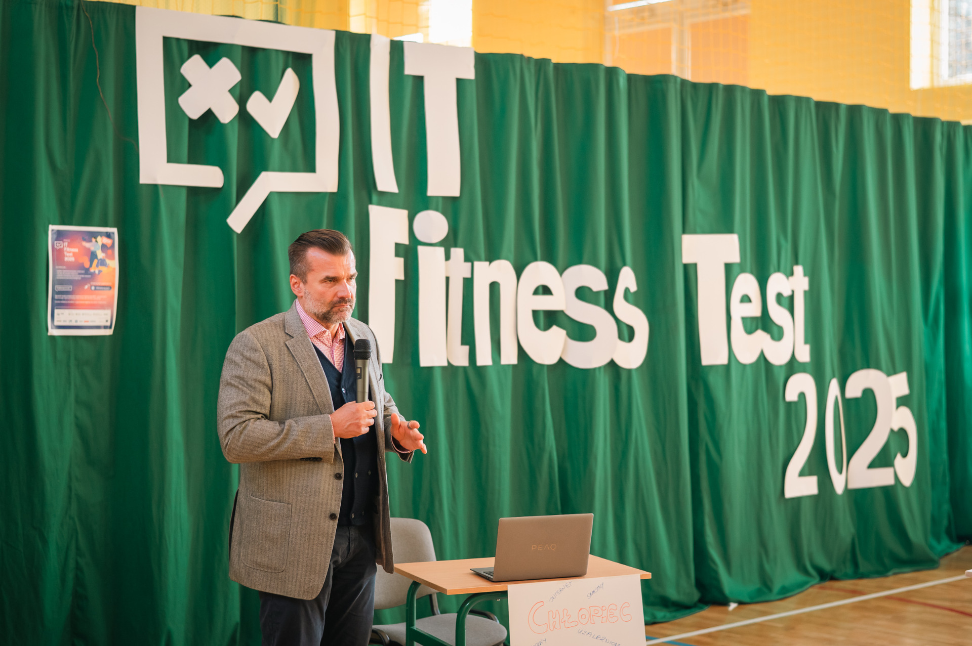 W dniu 14 kwietnia uczniowie naszej szkoły przystąpili do IT Fitness Test 2025, który miał na celu sprawdzenie ich umiejętności z zakresu technologii informacyjnych. Inauguracja wydarzenia miała miejsce w sali gimnastycznej, gdzie zgromadzili się zaproszeni goście, nauczyciele oraz uczniowie.