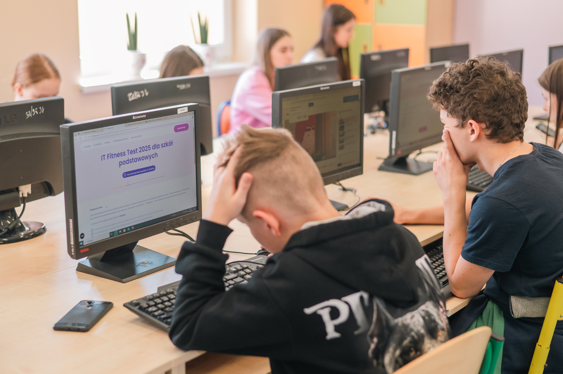 Po części wstępnej uczniowie, pod opieką nauczycieli, udali się do pracowni informatycznej, w której rozpoczęli rozwiązywanie testu.