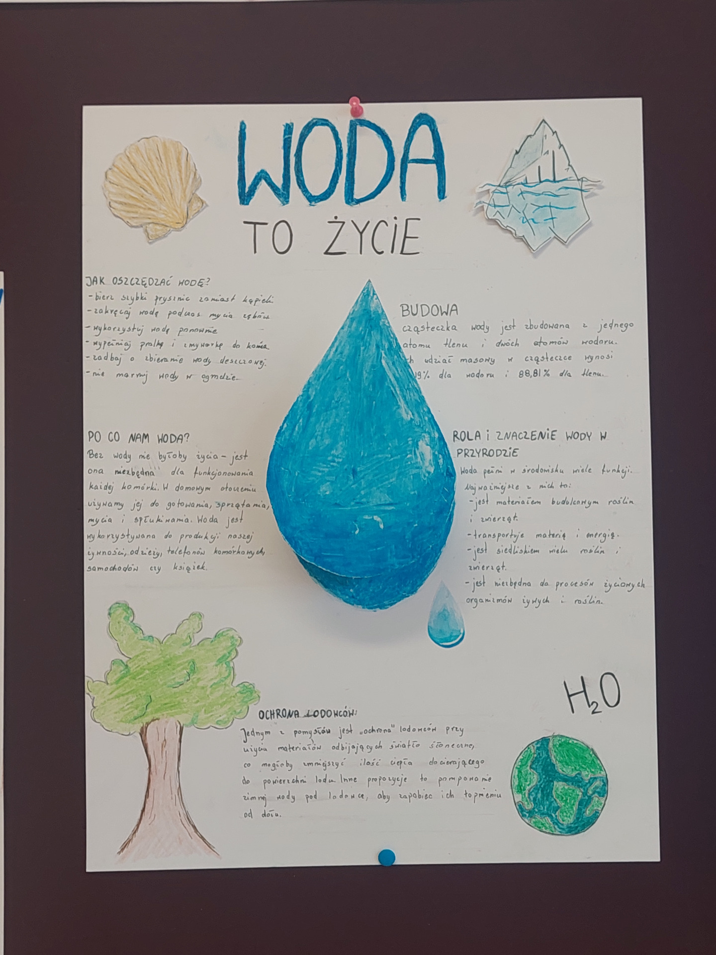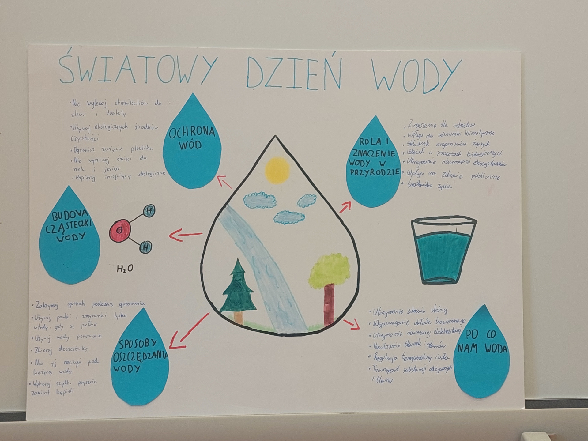 Każdego roku 22 marca ochodzony jest Światowy Dzień Wody, ustanowiony w 1992 roku przez Zgromadzenie Ogólne ONZ. Jest to okazja, by zwrócić uwagę młodzieży na kluczową rolę wody w naszym życiu codziennym i funkcjonowaniu całej planety. Przypominamy również o globalnym problemie jej niedoboru, co powoduje konsekwencje zdrowotne i społeczne. Tegoroczna akcja prowadzona była pod hasłem "Ochrona lodowców". Tradycyjnie świętowaliśmy Dzień Wody razem z Polską Akcją Humanitarną, realizując ścieżkę "Wirtualna Woda". Założenia programowe były realizowane podczas zajęć chemii. Wykorzystaliśmy animacje, podkasty, quizy oraz plakaty - "Nie tylko suche fakty". Po solidnej dawce wiedzy o potrzebie oszczędzania wody, a także ochronie lodowców uczniowie przedstawili na plakatach swoje przemyślenia i refleksje. Prace zostały zaprezentowane na terenie szkoły.