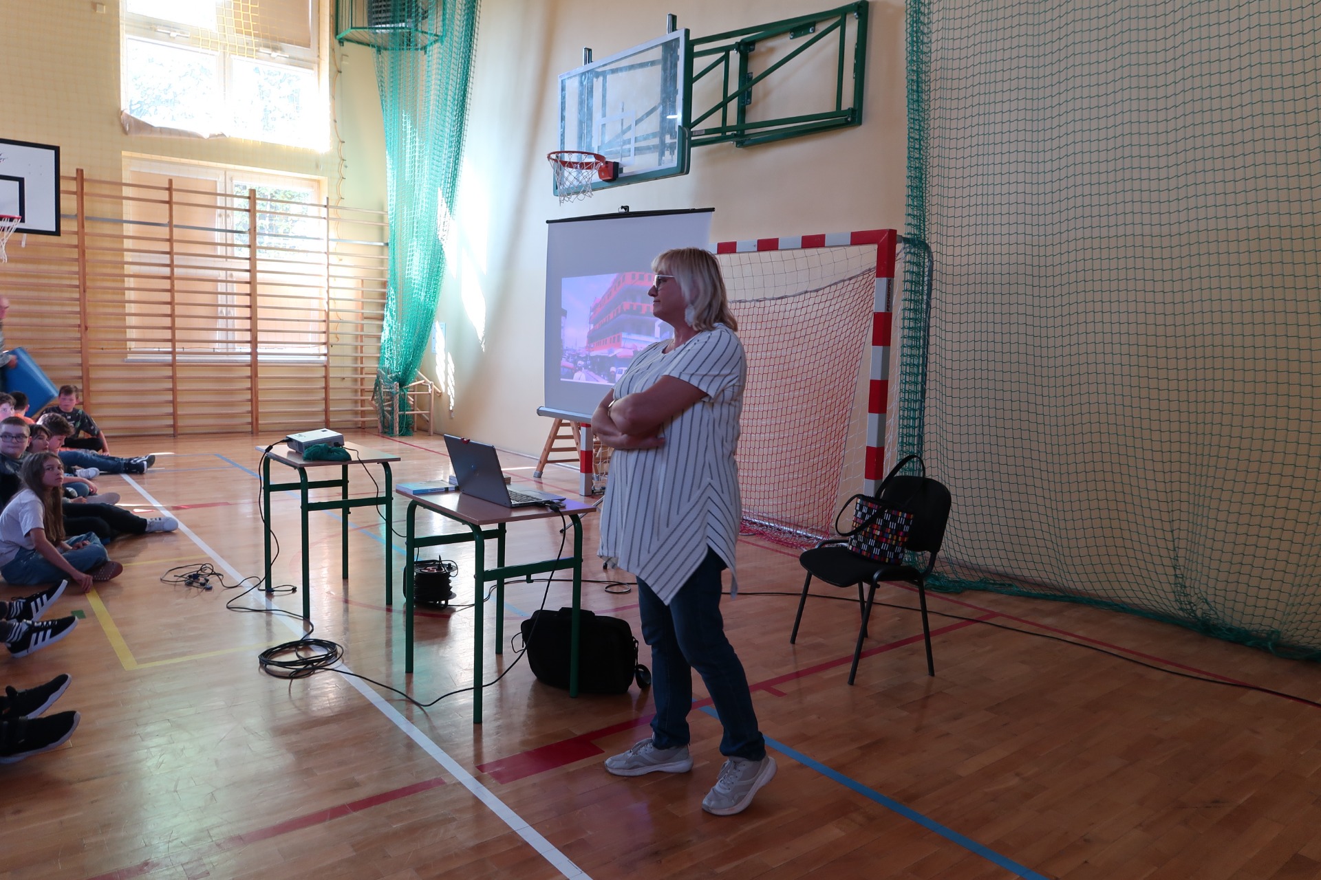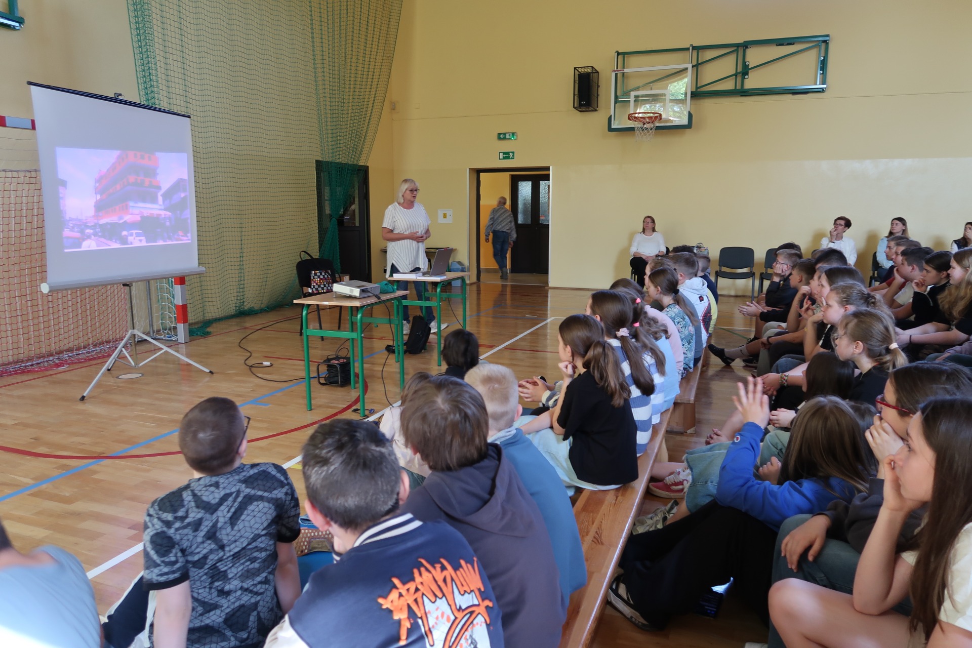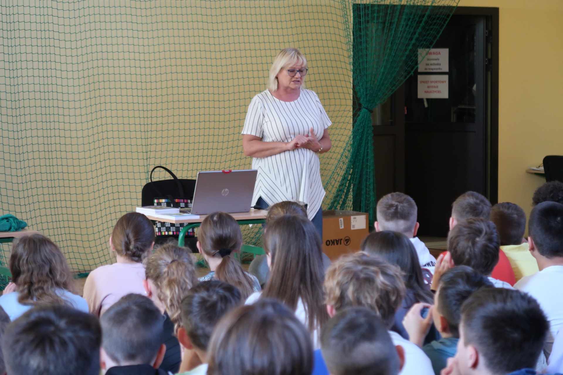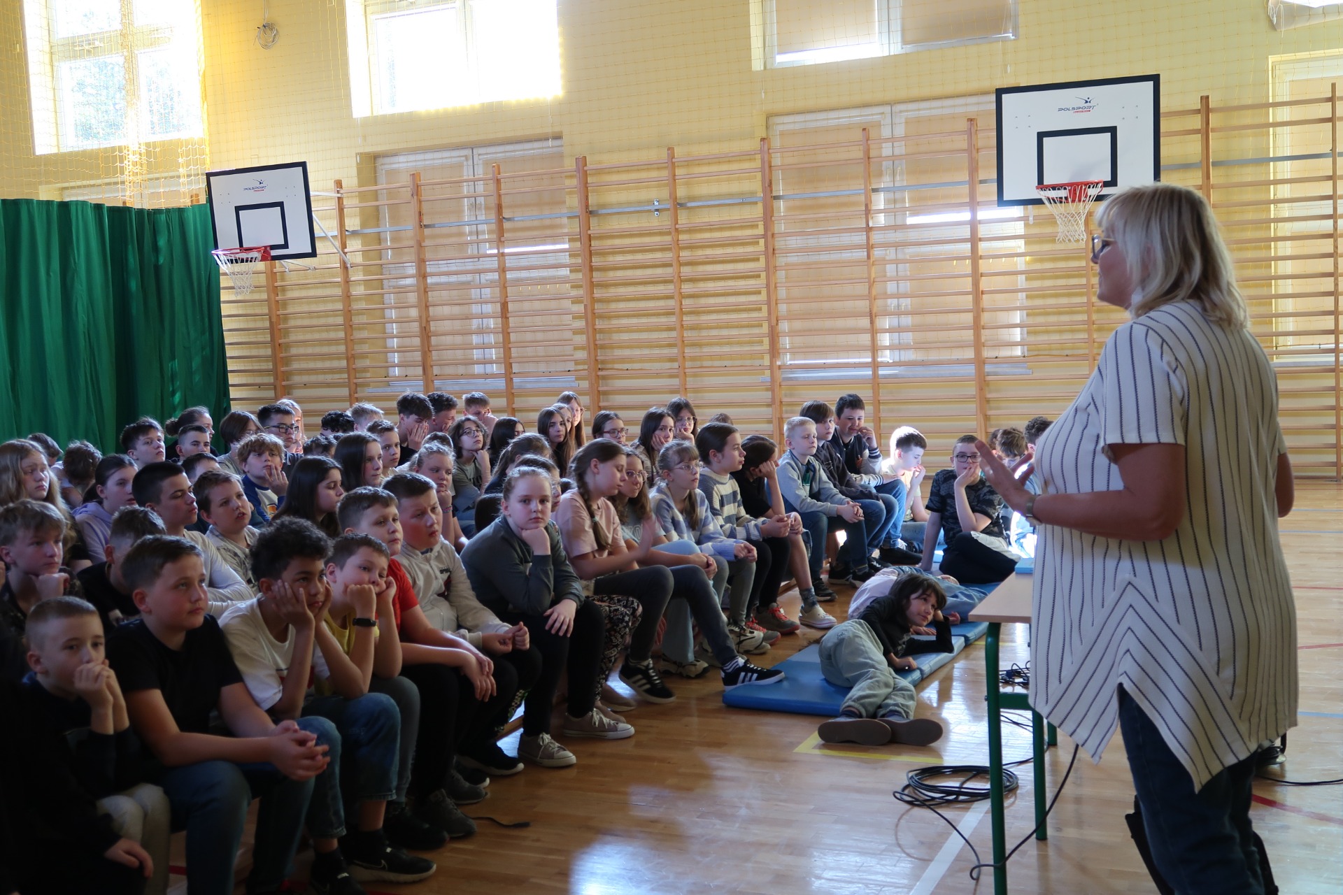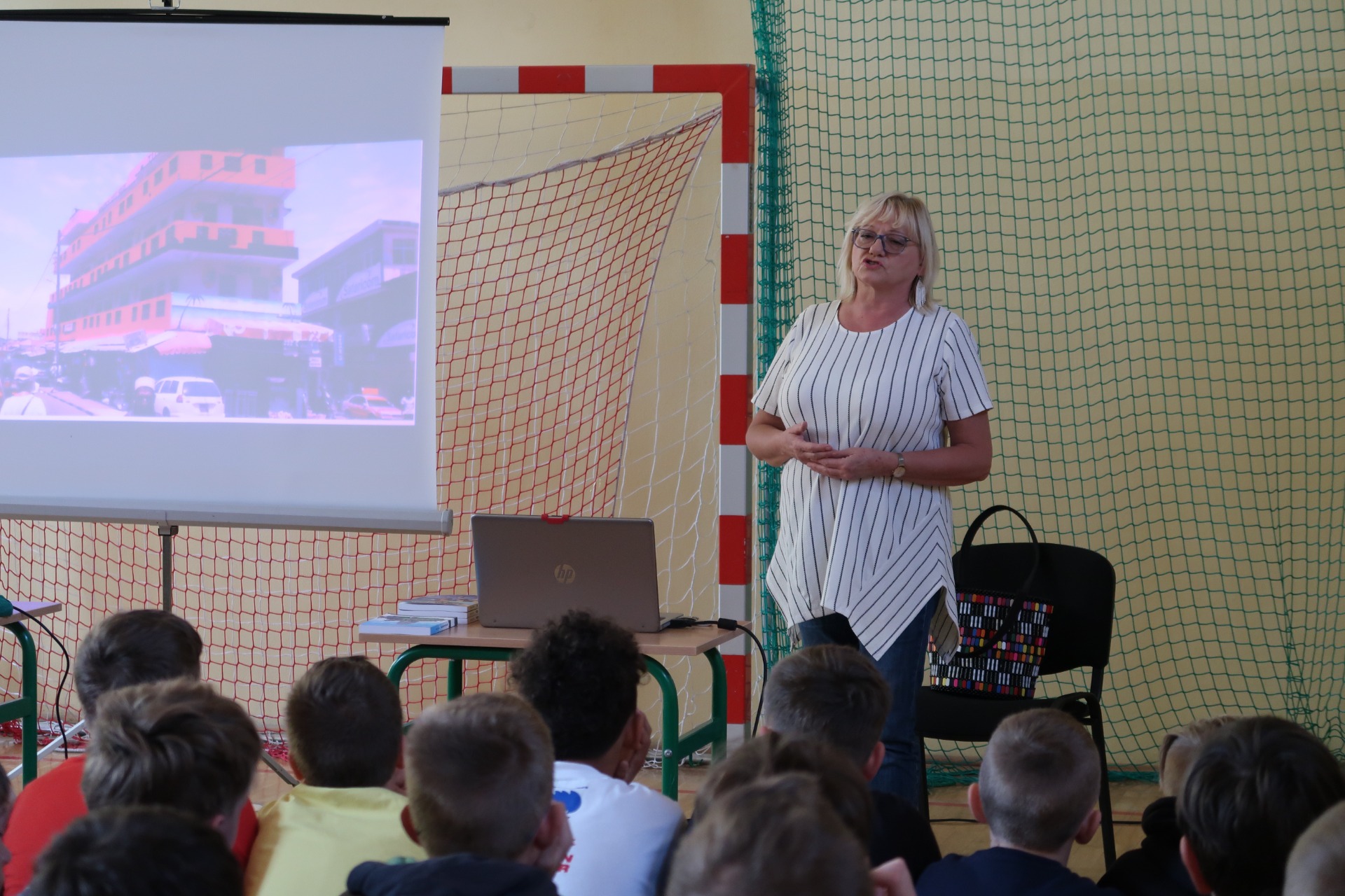 Uczniowie klas IV-VIII wzięli udział w spotkaniu z Panią Mariolą Szydlik, która opowiadała uczniom o swoim życiu w Kenii oraz o książkach, które powstały na bazie doświadczeń zdobytych w Afryce. Pisarka podzieliła się ciekawostkami dotyczącymi pobytu na Czarnym Lądzie, zwyczajach oraz sytuacji kenijskich dzieci.