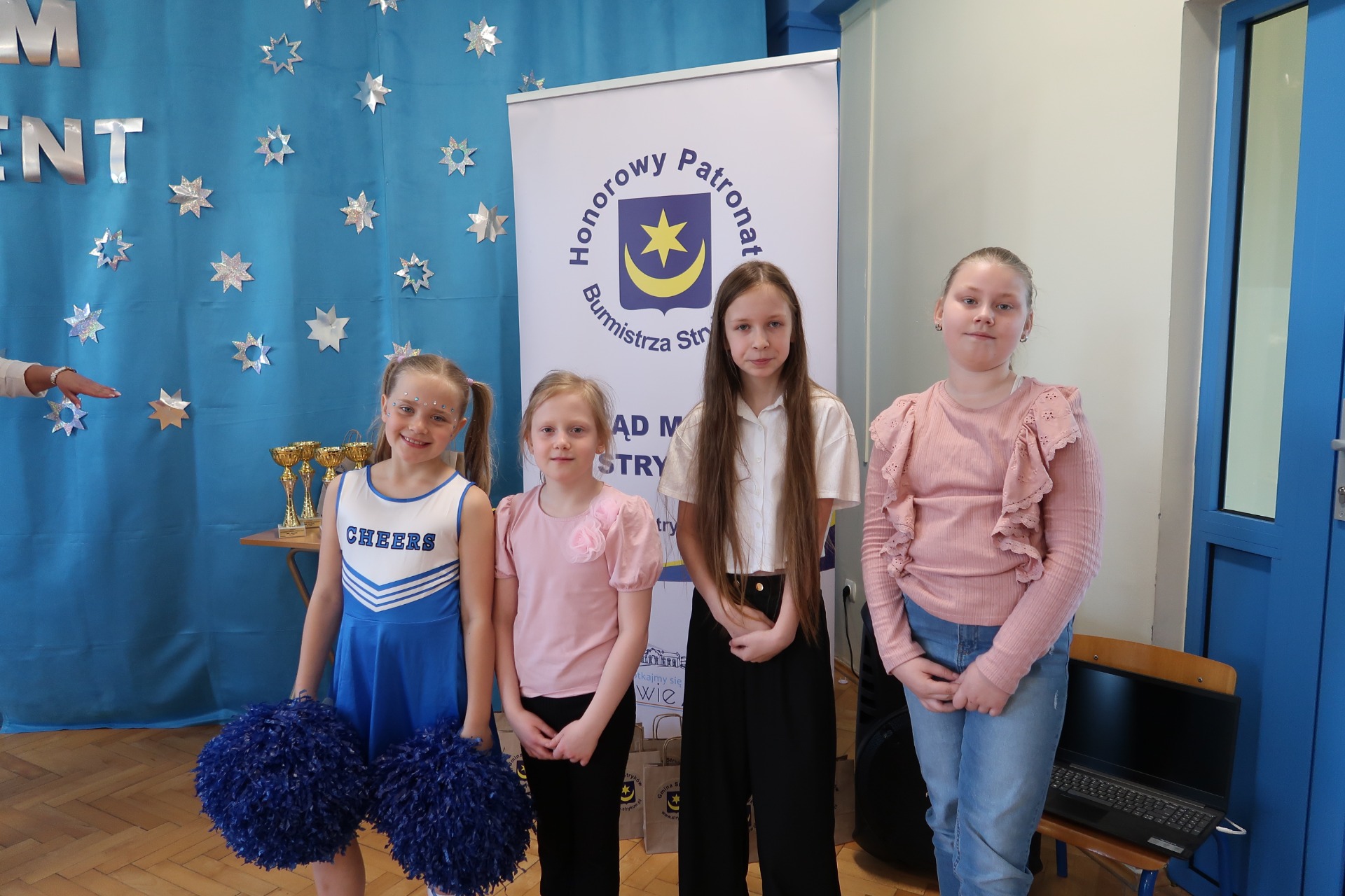 21 maja w Szkole Podstawowej Nr 2 im. Noblistów Polskich w Strykowie odbył się Gminny Konkurs Artystyczny „Mam Talent’’. Uczestnicy zaprezentowali swoje umiejętności w czterech kategoriach: rysunek, śpiew, gra na instrumencie oraz taniec. W tym roku w konkursie naszą szkołę reprezentowały: Lidia Kacprzak z kl. Ia, Roksana Kaźmierczak z kl. IIIb, Dorota Widerkiewicz z kl. IIb i Weronika Zasada z kl. IIIa.