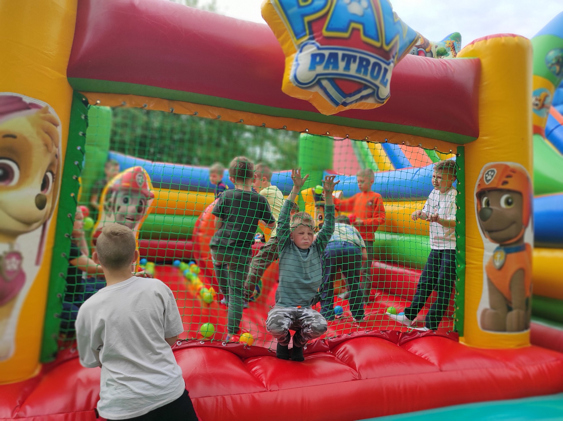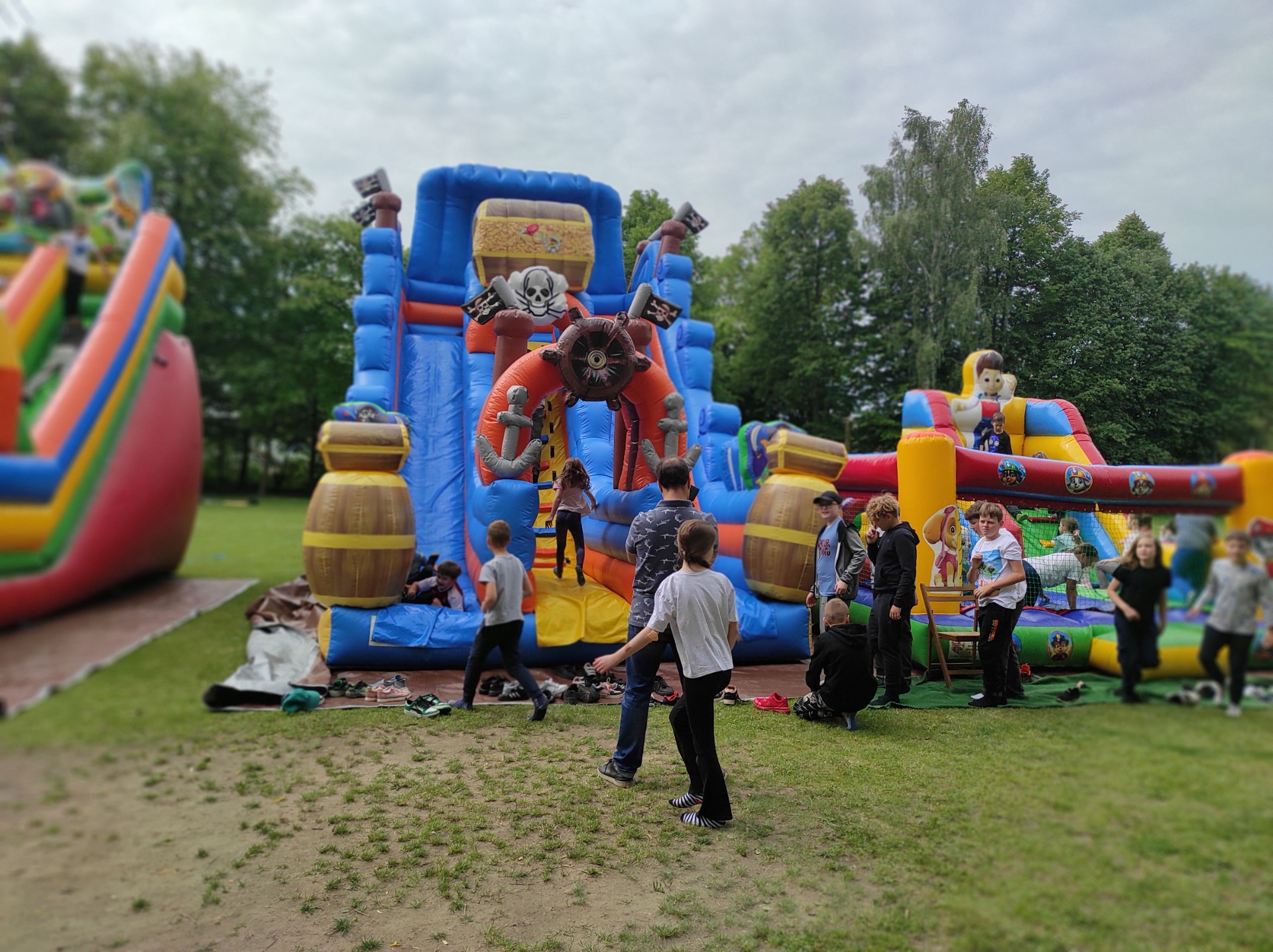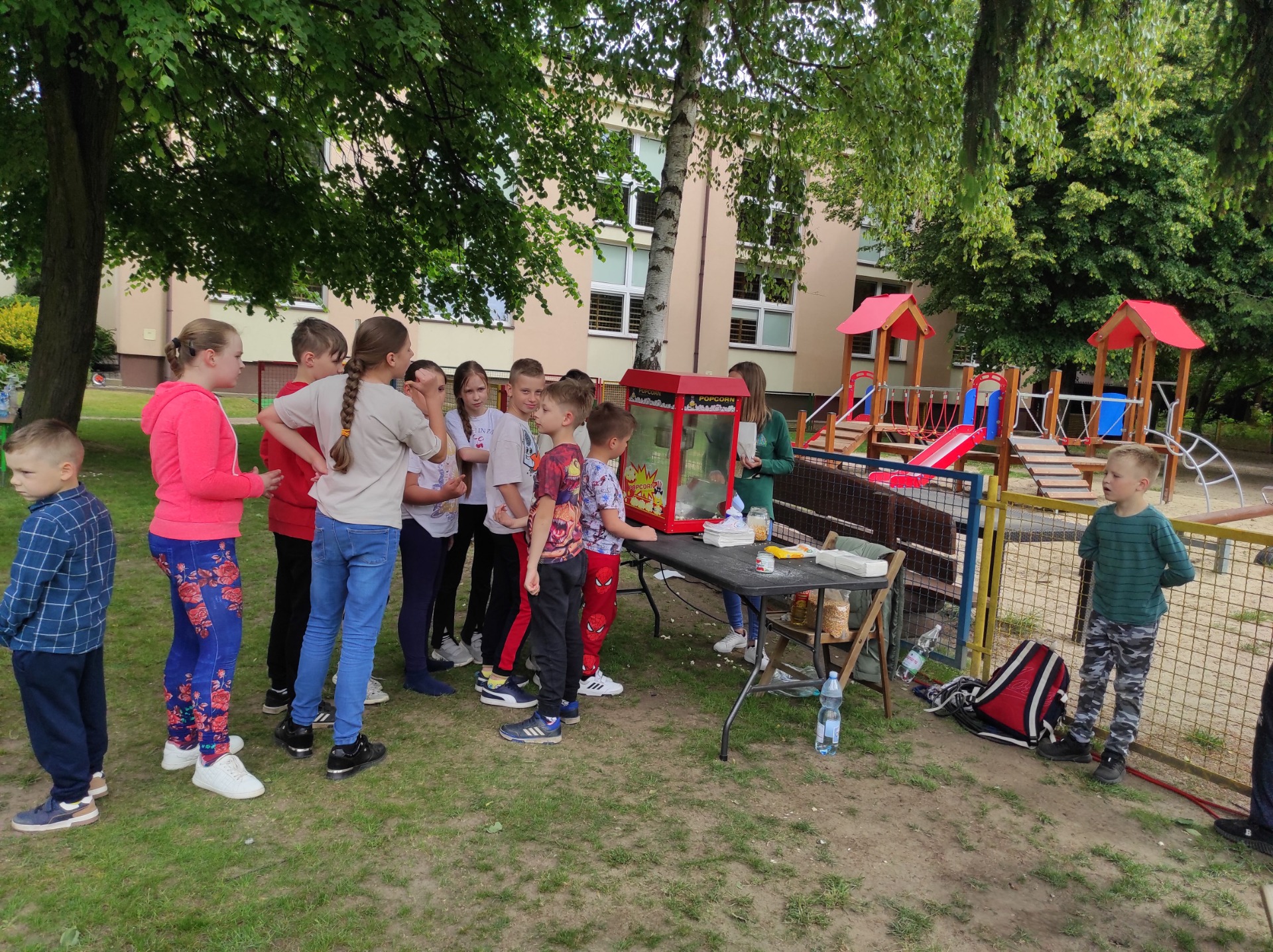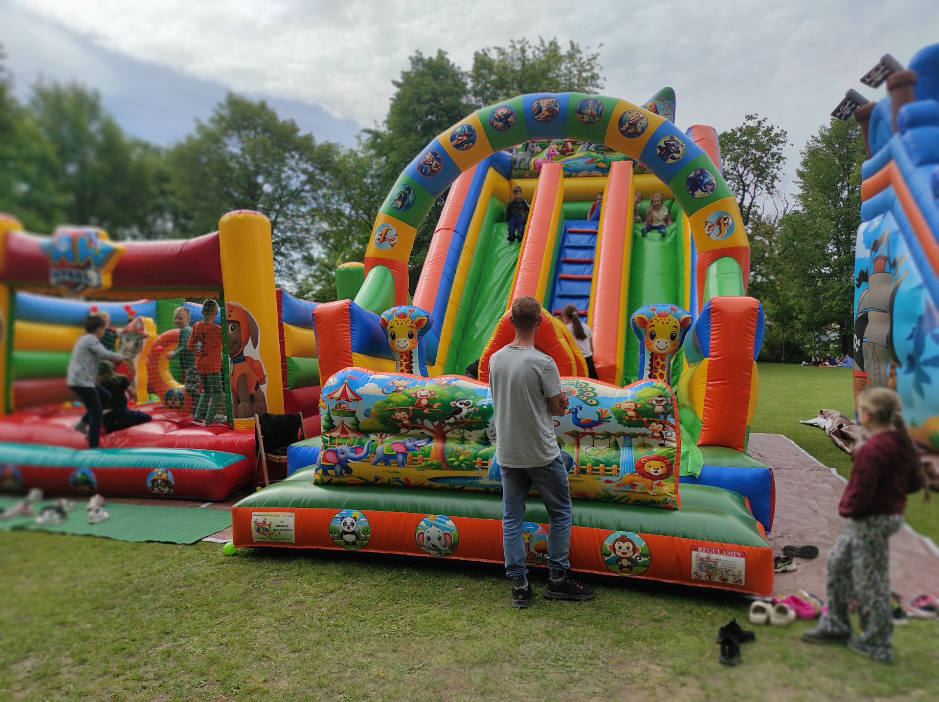 Wśród najpopularniejszych atrakcji znalazło się zjeżdżanie na dmuchańcach, które cieszyły się ogromnym zainteresowaniem wśród dzieci w każdym wieku. Radość i śmiech słychać było na całym szkolnym boisku, gdzie uczniowie z entuzjazmem pokonywali kolejne przeszkody na dmuchanych torach. Ponadto odbywały się różnorodne gry i zabawy sportowe. Na zmęczonych uczniów czekała też budka z pop corn’em oraz słodycze i owoce, o które zadbali rodzice.