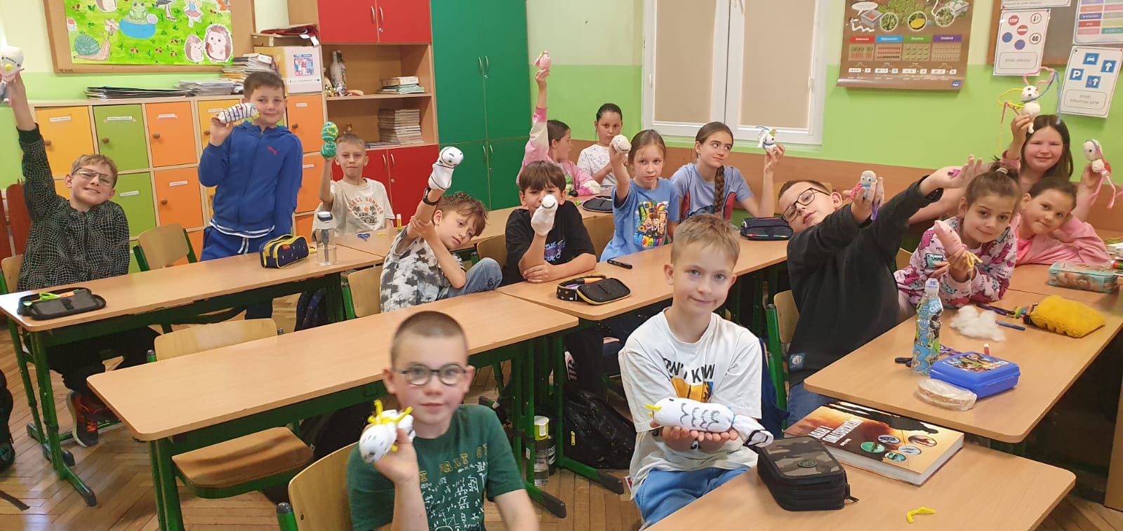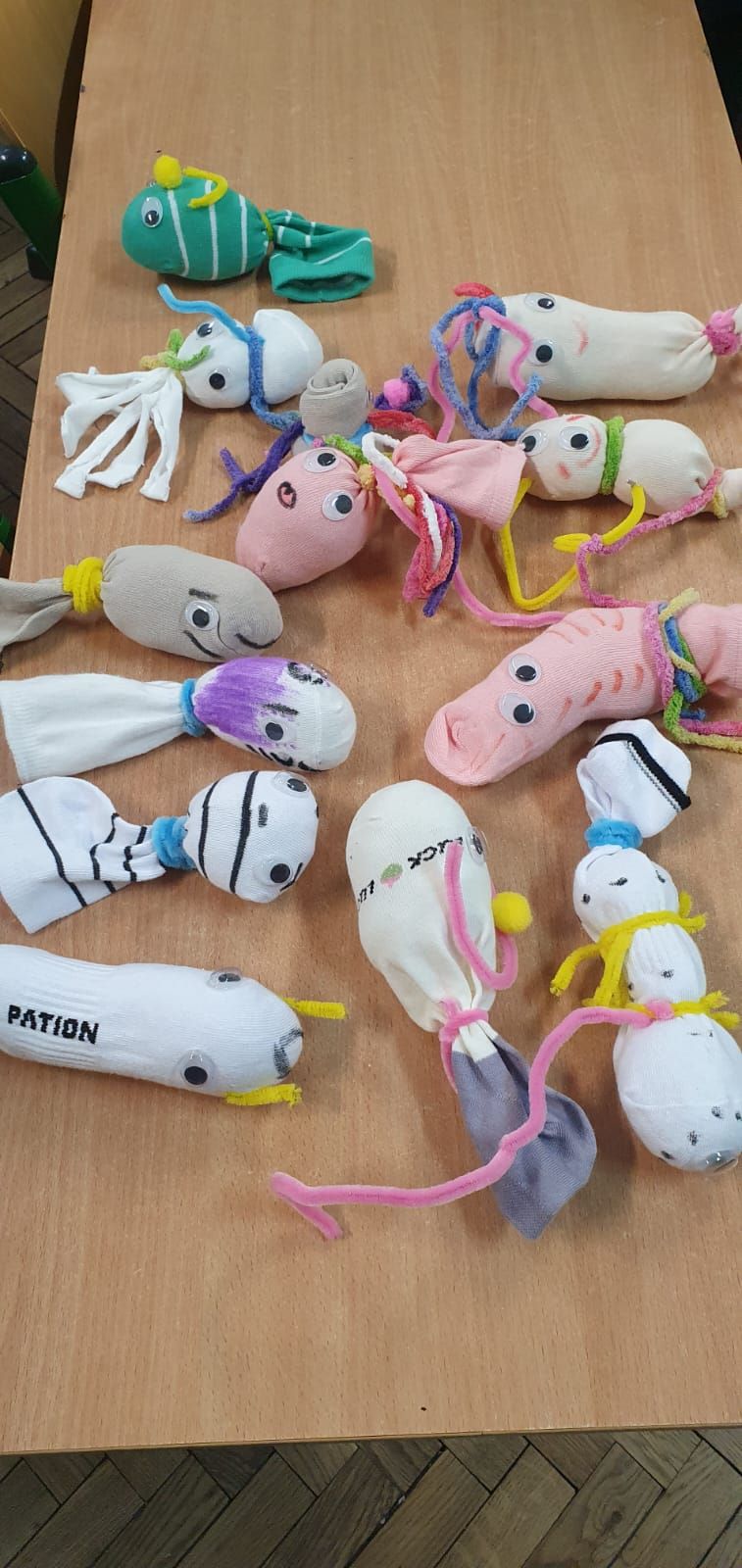 Na zakończenie zajęć dzieci wykonywały ze skarpetek i materiałów plastycznych swoją bakterię.