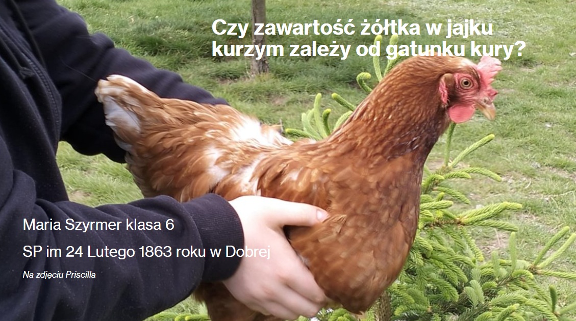 Maria została laureatką I miejsca za pracę pt. „Czy zawartość żółtka w jajku kurzym zależy od gatunku kury?”. Jej eksperyment wyróżniał się nie tylko pomysłowością, ale również rzetelnością badań i wysokim poziomem matematycznych analiz.