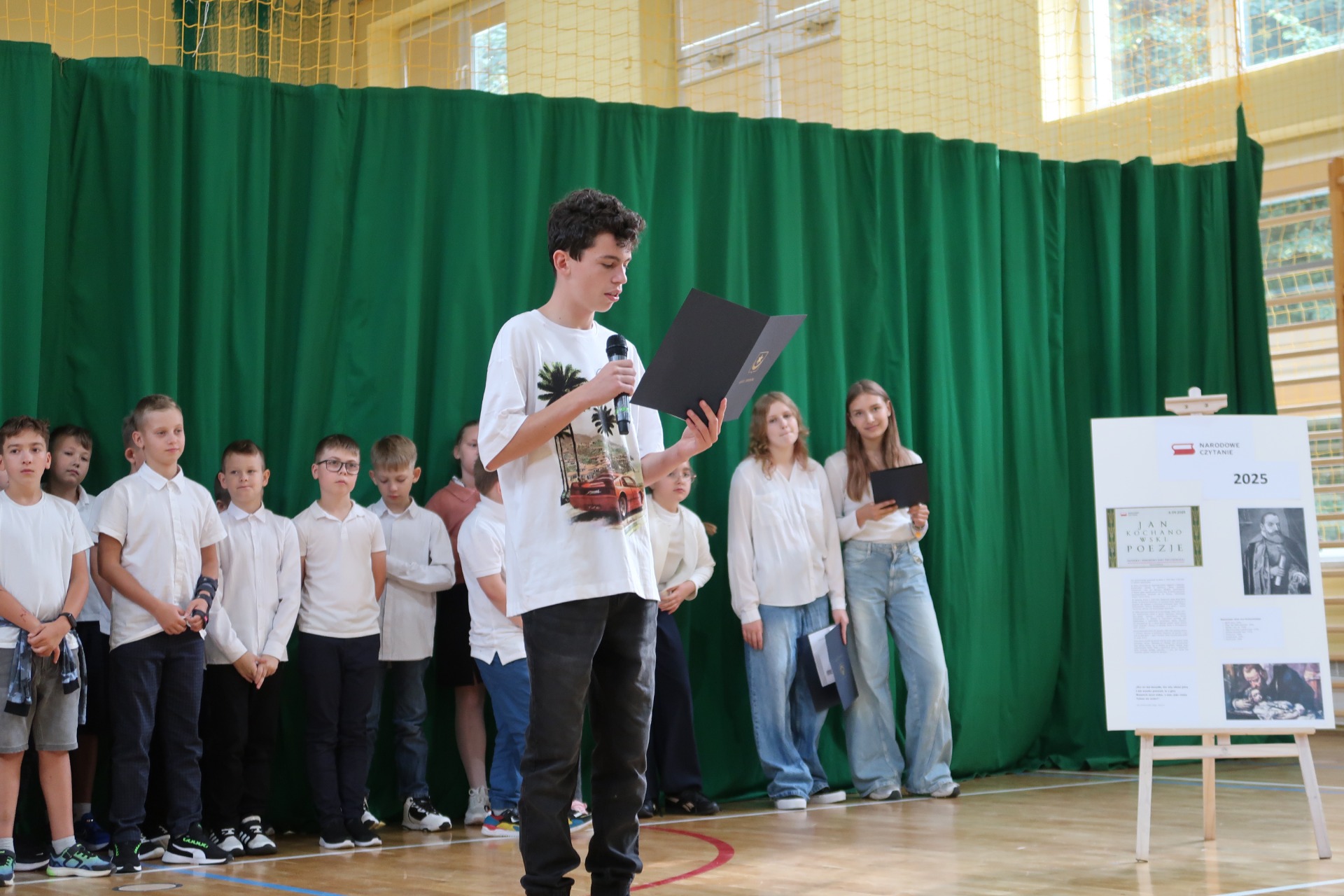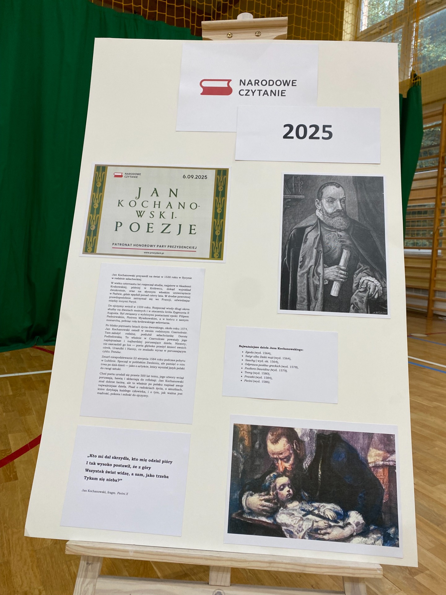 8 września 2025 r. nasza szkoła dołączyła do ogólnopolskiej akcji Narodowe Czytanie. Bohaterem tegorocznej edycji został Jan Kochanowski – jeden z najsłynniejszych polskich poetów renesansowych, wybitny humanista, wirtuoz słowa i twórca nowoczesnego języka literackiego.