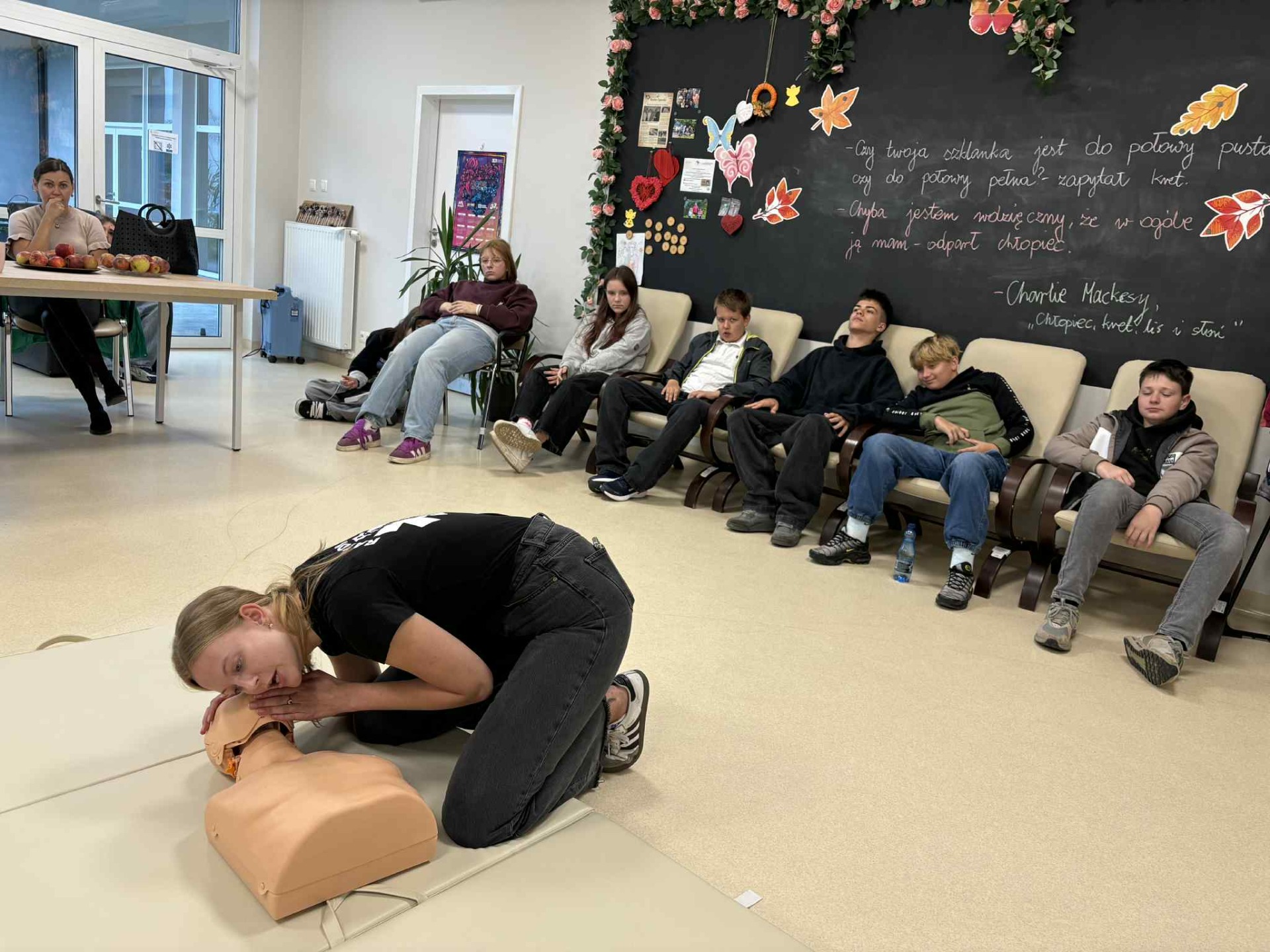 Podczas spotkania uczniowie uczyli się m.in. jak prawidłowo wezwać pomoc, sprawdzić oddech poszkodowanego oraz jak wykonać resuscytację krążeniowo-oddechową (RKO). Mieli także okazję ćwiczyć swoje umiejętności na fantomach pod okiem doświadczonych instruktorów.