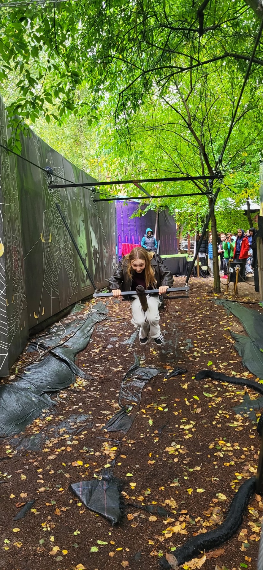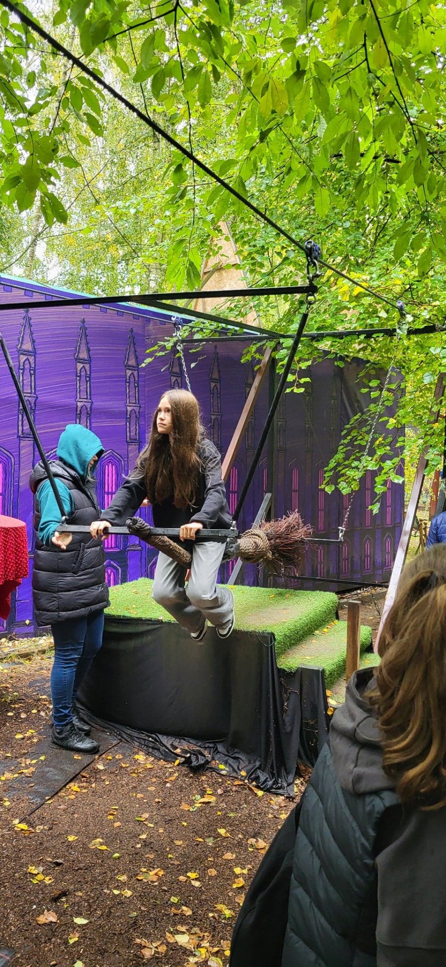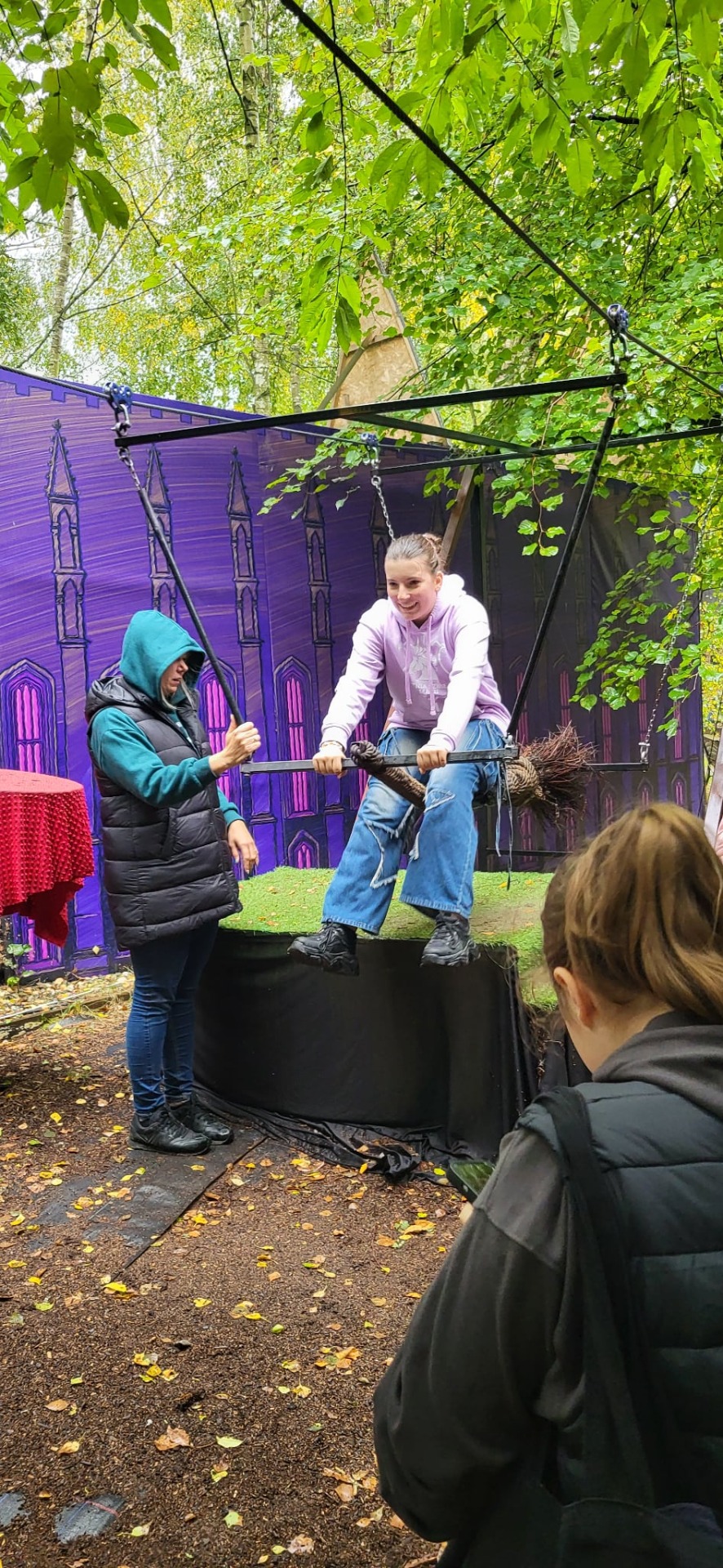 Ponadto klasa zwiedzała teren grodu, korzystając z przestrzeni na świeżym powietrzu. Mieliśmy momenty relaksu, wspólne ognisko z pieczeniem pianek oraz coś, co zachwyciło wszystkich — latanie na miotle w stylu magicznym, przypominającym fantastyczne przygody.