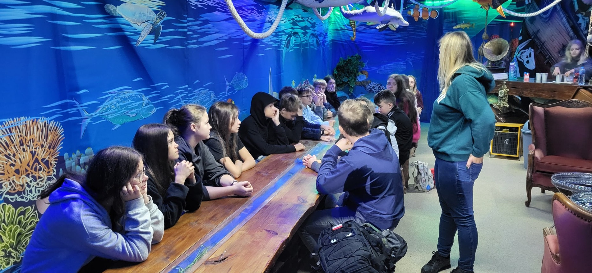 W Malinowym Grodzie uczniowie wzięli udział w warsztacie o wartościach, podczas którego każdy mógł zastanowić się nad swoimi mocnymi stronami i wyposażyć je w symboliczny „słoik supermocy”. To inspirujące zadanie pomogło młodzieży dostrzec swoje talenty i motywacje. Wszyscy uczestniczyli również w zabawie typu escape room — zagadki i zadania logiczne integrowały grupę i rozwijały umiejętność współpracy.