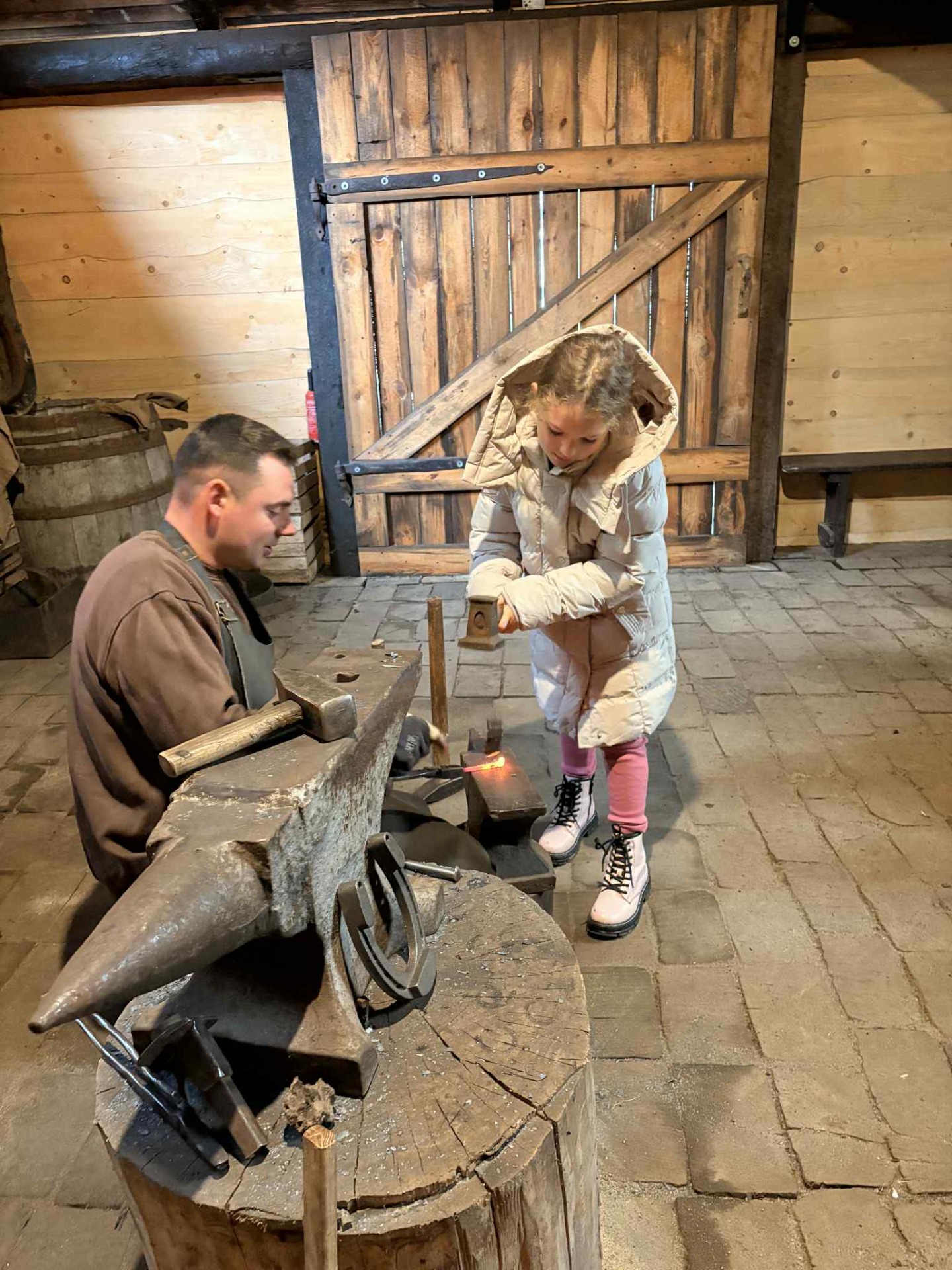 Na początku odbyło się spotkanie z kowalem, który opowiedział o swojej pracy, pokazał narzędzia oraz sposób wykonywania podków. Dzieci miały niepowtarzalną okazję samodzielnie – oczywiście pod czujnym okiem fachowca – wykonać własną, miniaturową podkowę. Radość i duma z efektów pracy były ogromne!