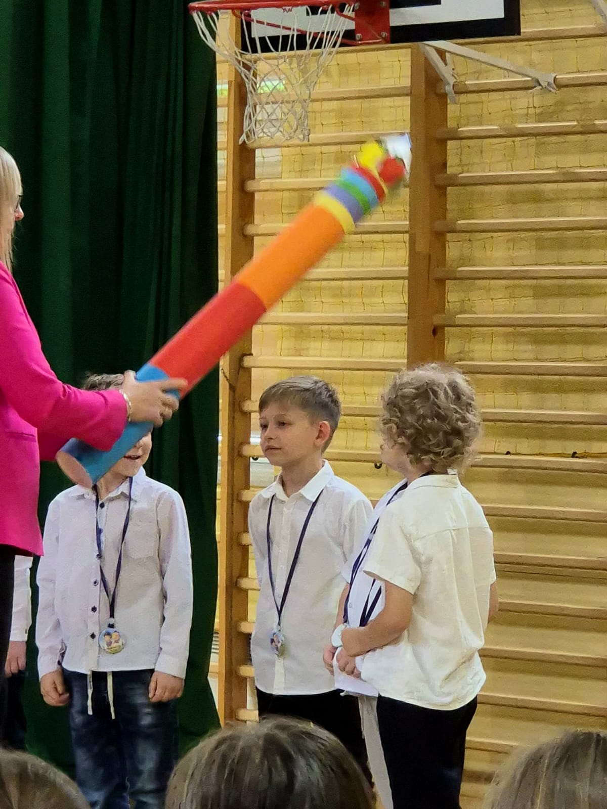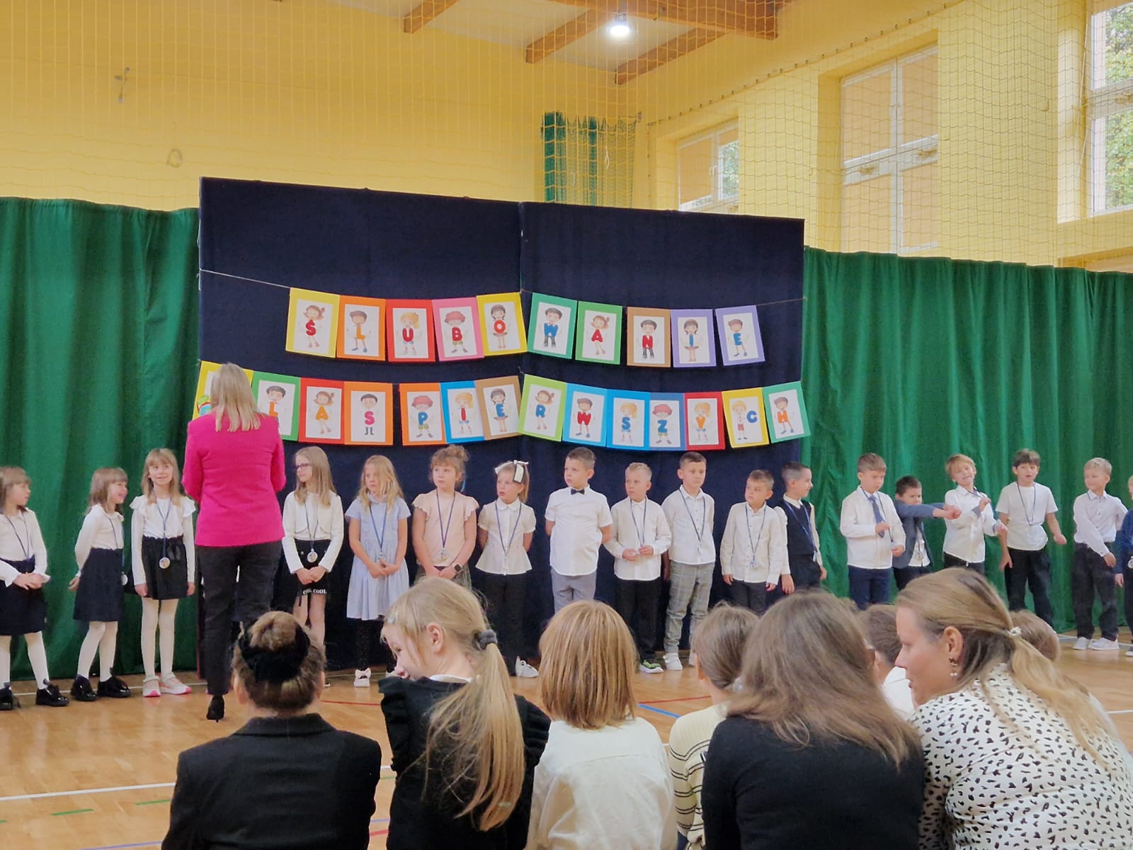 Środa, 22 października, była w oddziale przedszkolnym bardzo uroczystym dniem. Pięknie ubrane przedszkolaki uczestniczyły w pasowaniu. Wśród naszych gości oprócz rodziców, byli także seniorzy ze Stowarzyszenia „Wspólna Przyszłość - Polska, Europa, Świat” z Brzezin. Pani Dyrektor przywitała wszystkich przybyłych, a następnie przedszkolaki zaprezentowały swoje umiejętności. Recytowały wiersze, prezentowały tańce, śpiewały piosenki oraz wykazywały się wiedzą. Niespodzianką była piosenka przygotowana do zaśpiewania przez rodziców przedszkolaków.