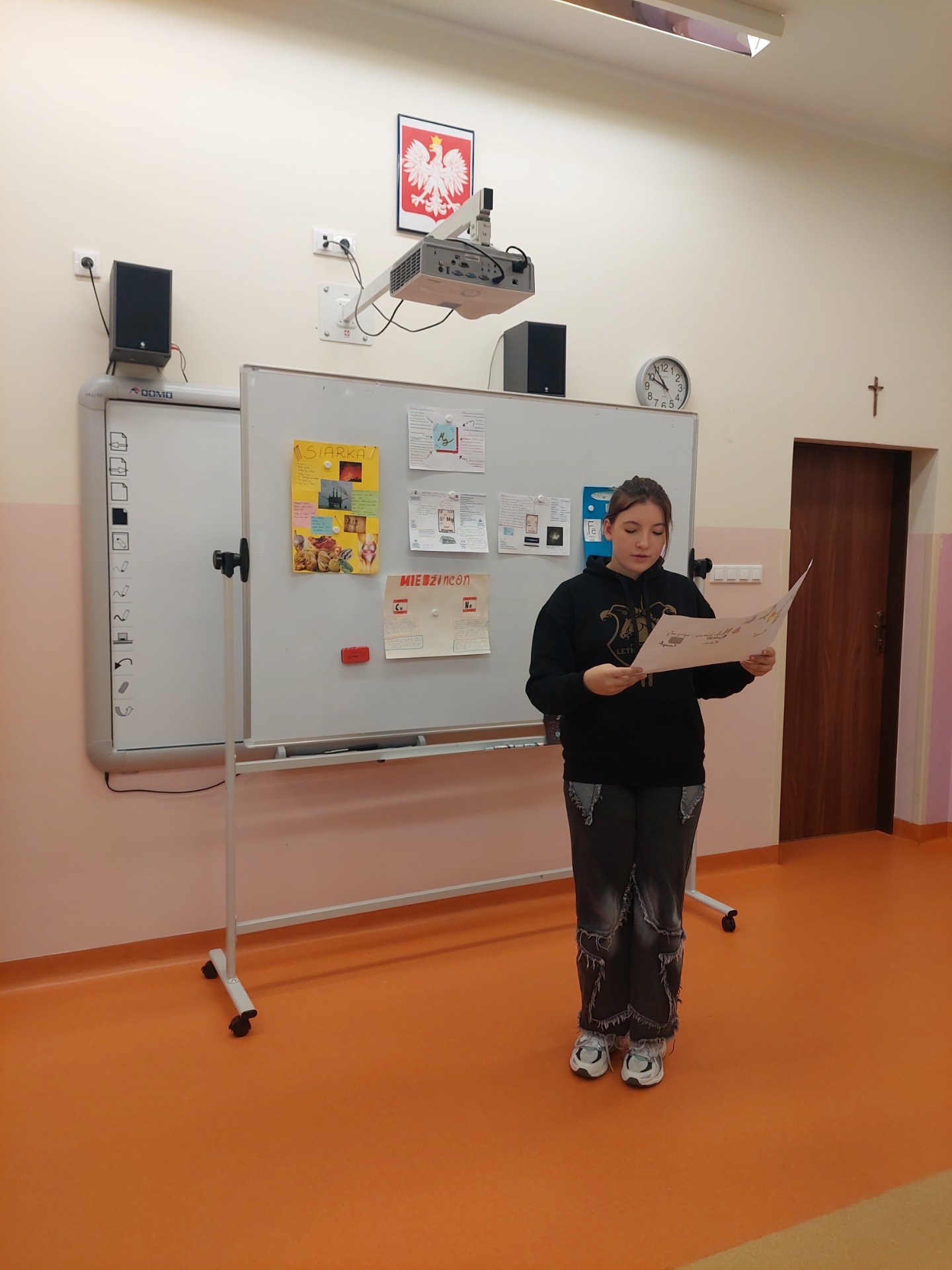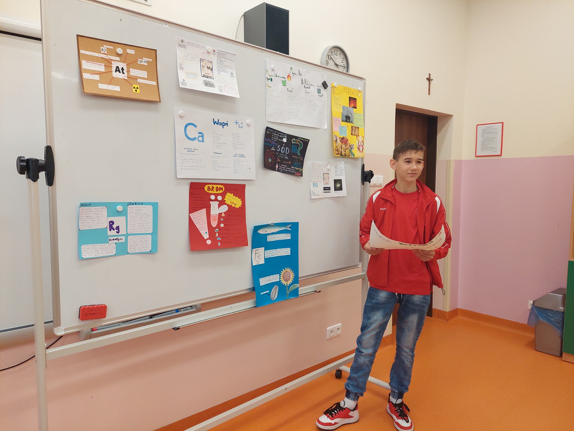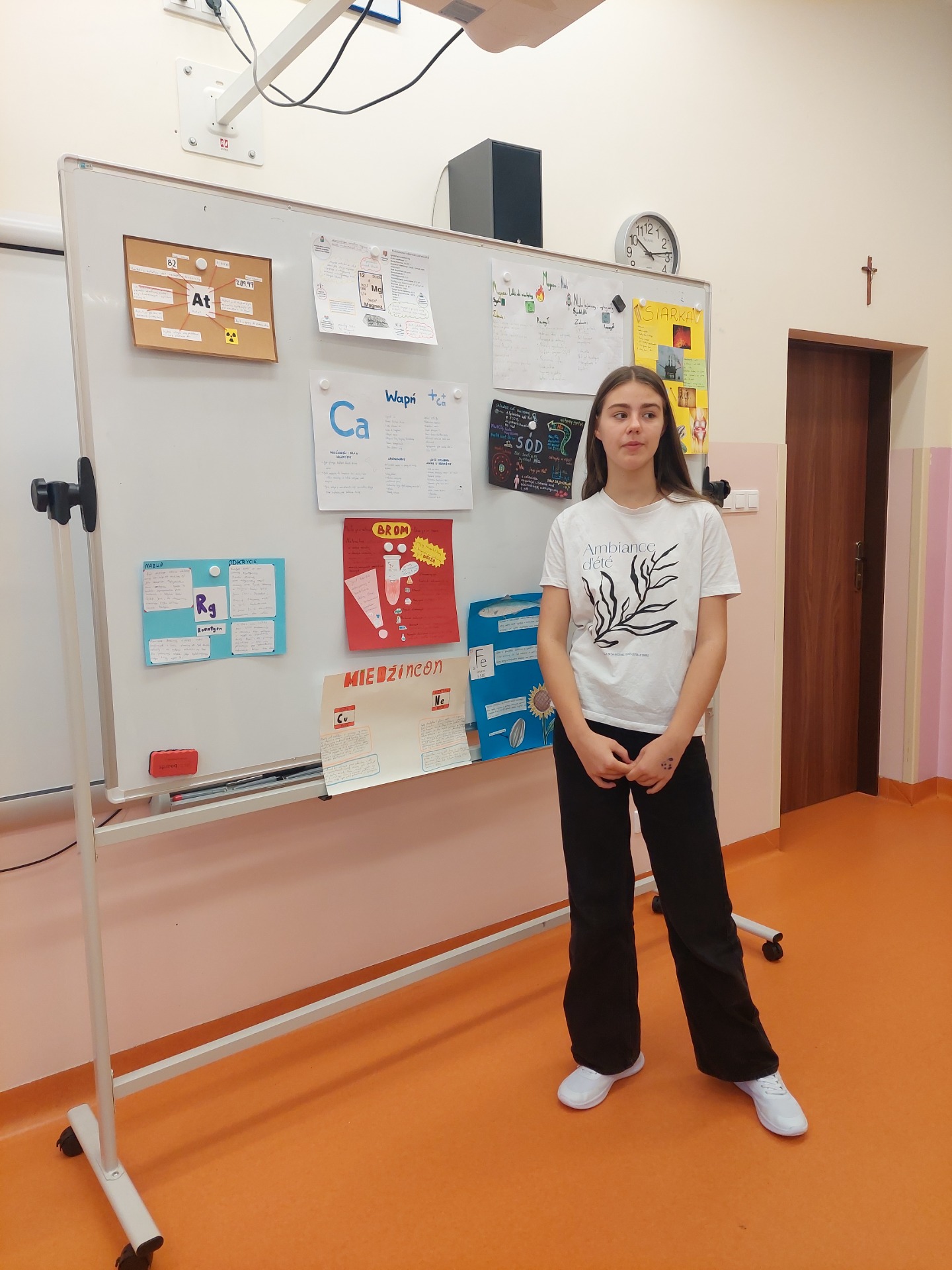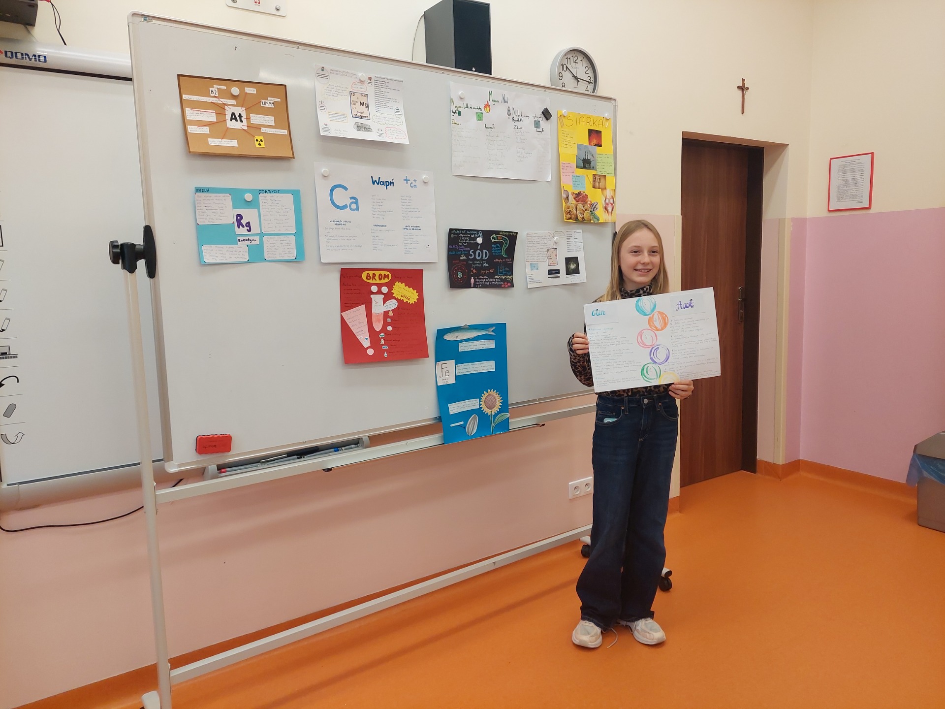 „Pierwiastki w nas i wokół nas" - pod takim hasłem uczniowie klasy VII realizowali projekt z chemii. Jego głównym celem było wzbogacenie wiedzy na temat pierwiastków chemicznych, zrozumienia ich roli w organizmach żywych i środowisku, a także wzmacnianie umiejętności planowania własnej pracy, współpracy w grupie oraz zbierania i analizy informacji. Uczniowie wykonywali plakaty, które zostały zaprezentowane na wystawie.