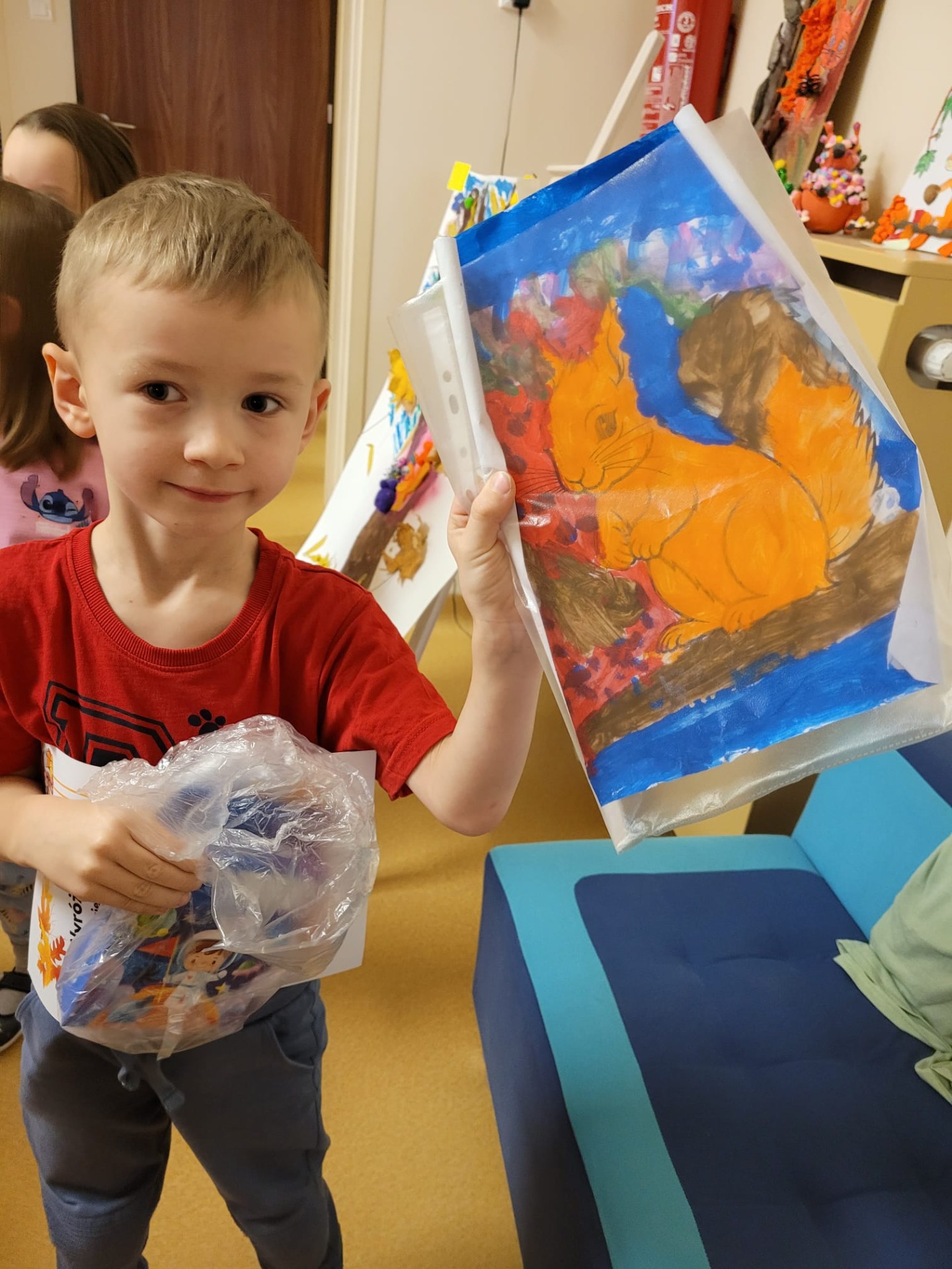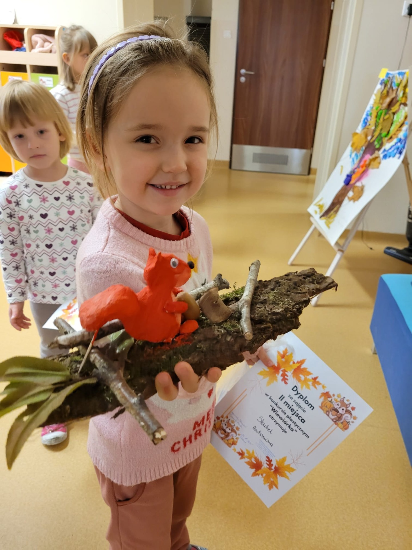 W naszym przedszkolu odbył się konkurs plastyczny pod hasłem „Wiewiórka”. Dzieci przygotowały piękne prace przestrzenne, w których pojawiły się wesołe wiewiórki skaczące po drzewach, zbierające orzechy i bawiące się w jesiennych liściach. Kreatywność i pomysłowość przedszkolaków zachwyciły jury.
