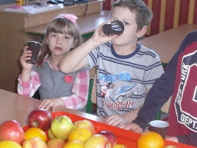 Jesień to czas, gdy zbieramy plony z sadów i ogrodów. Uczniowie klasy II b w miesiącu październiku poznawali jesienne warzywa, owoce i kwiaty. Podsumowaniem zdobytych wiadomości stała się „lekcja zdrowia”, podczas której wspólnie z wychowawcą przygotowywali soki owocowe. Hitem okazał się sok jabłkowy oczywiście bez żadnych konserwantów i cukru – samo zdrowie i witaminy.