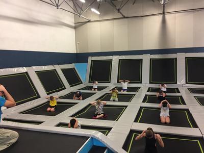 Lekcja wychowania fizycznego na trampolinach