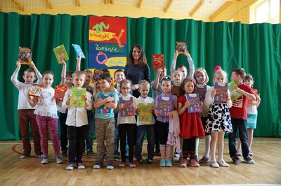 Uczniowie szkoły w Dobrej czytają w różnych językach...