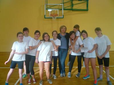 Pierwsze miejsce drużyny dziewcząt ze Szkoły Podstawowej...
